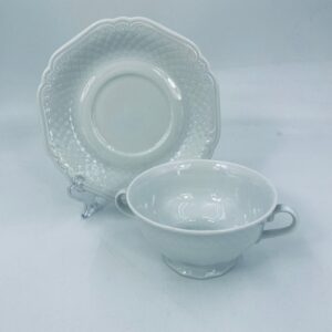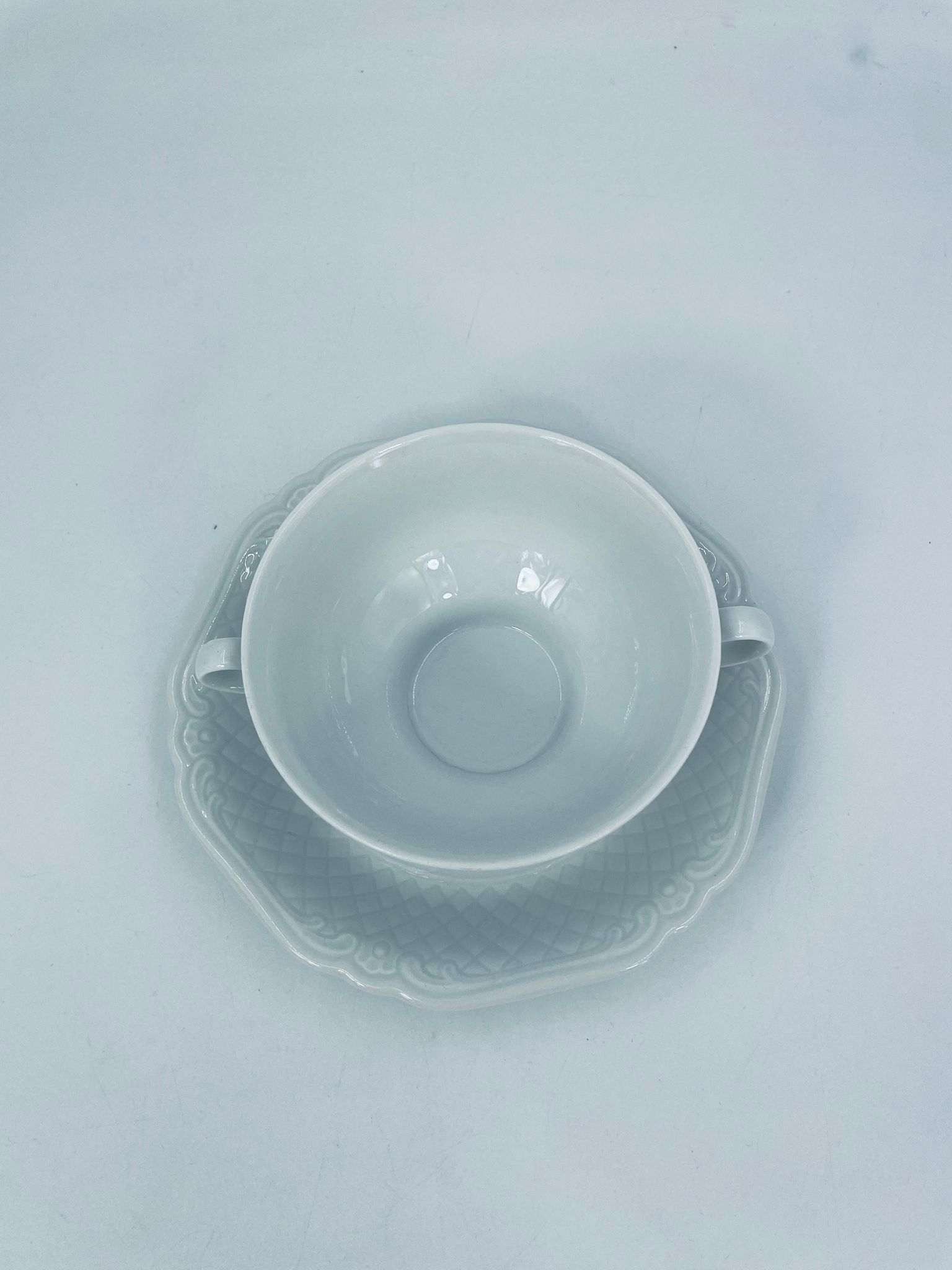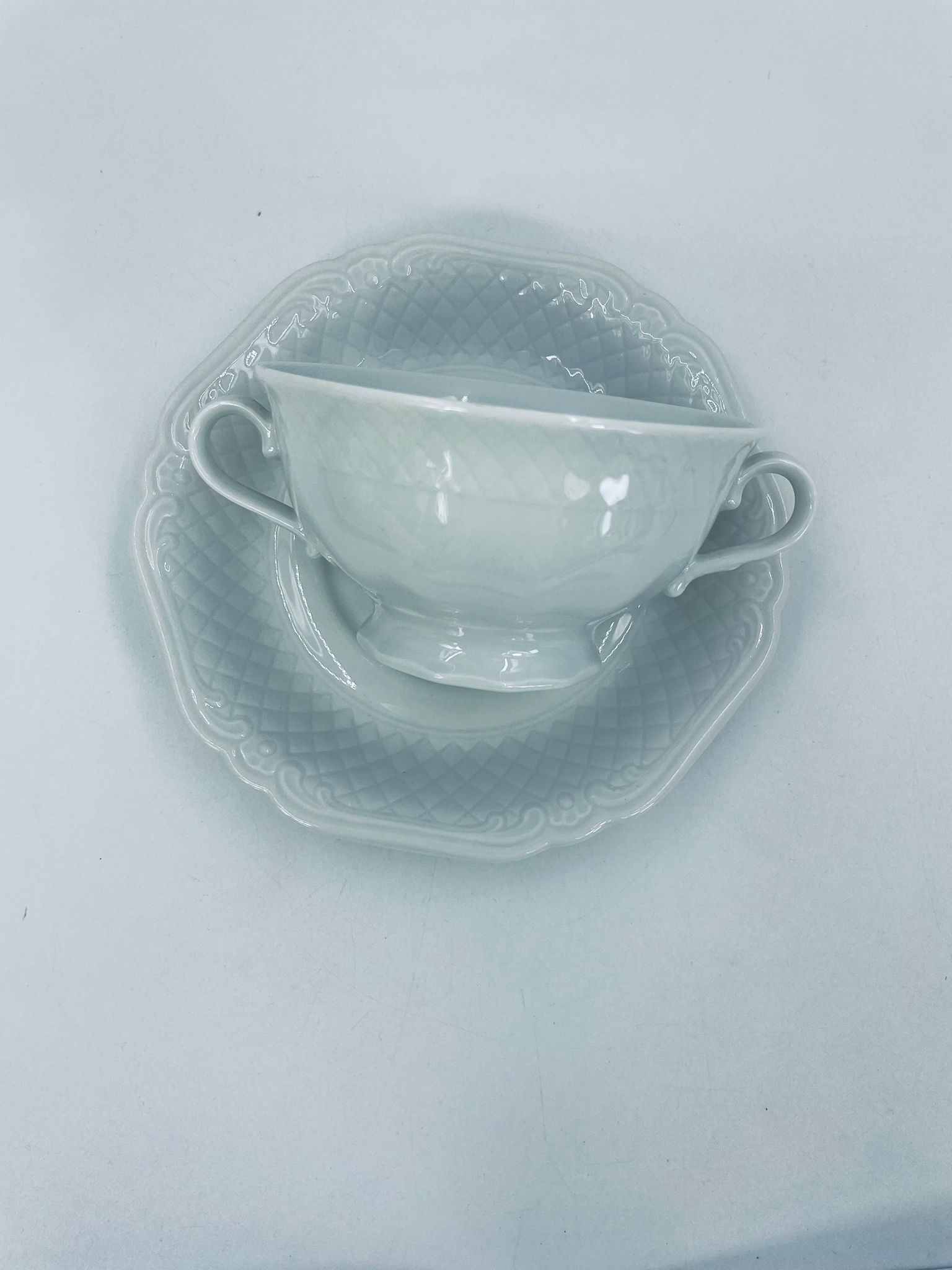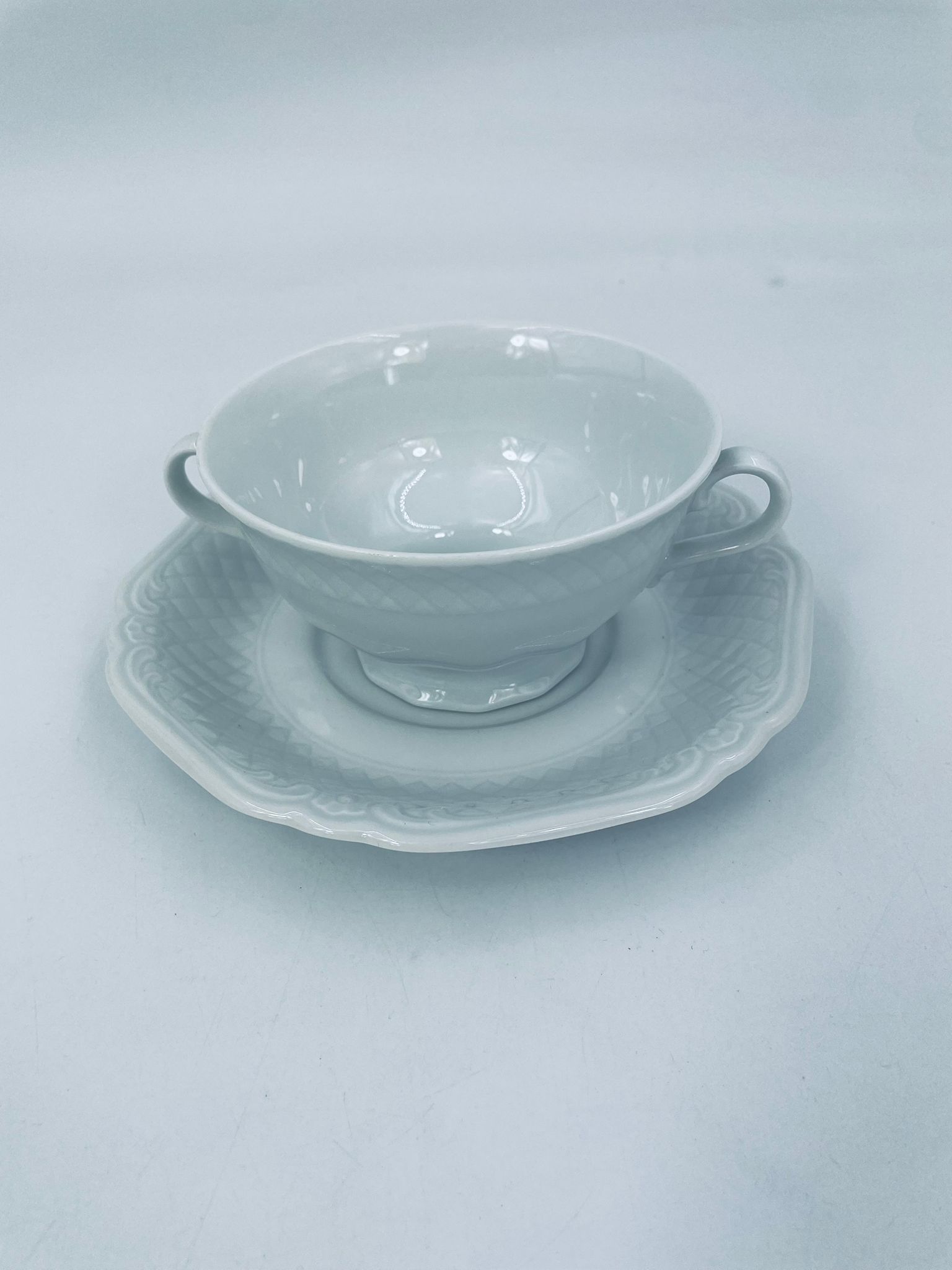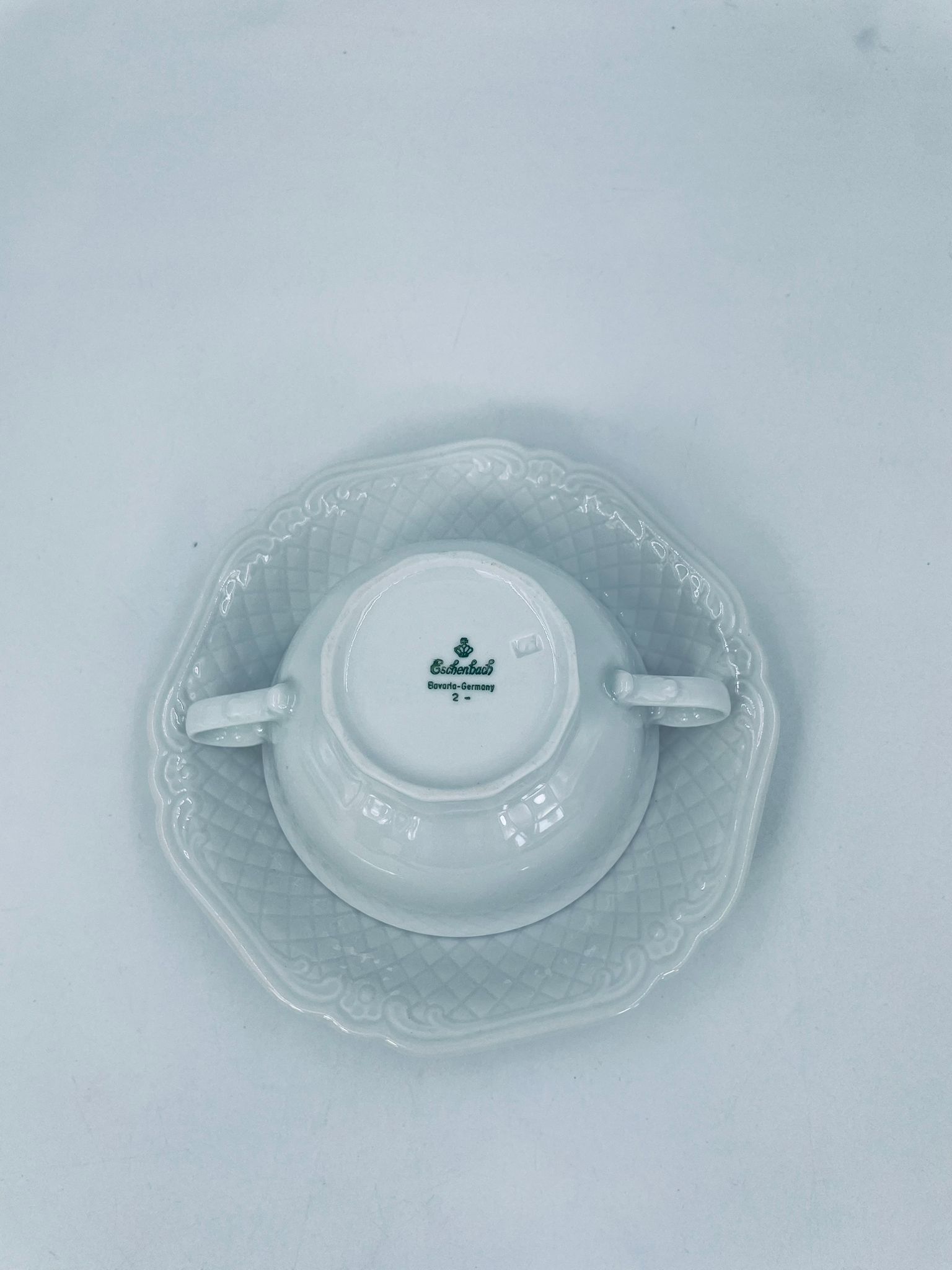 Bouillon made by Eschenbach, an elegant vessel made of high-quality white porcelain with a characteristic subtle pattern. Ideal for serving broths and other soups.