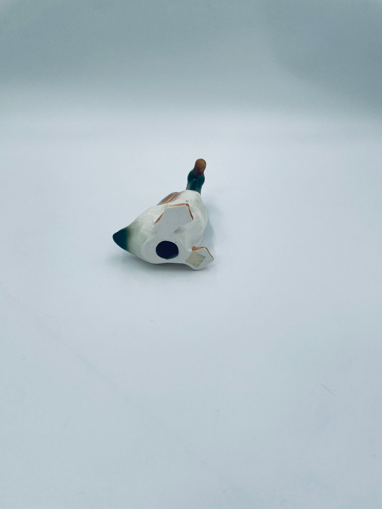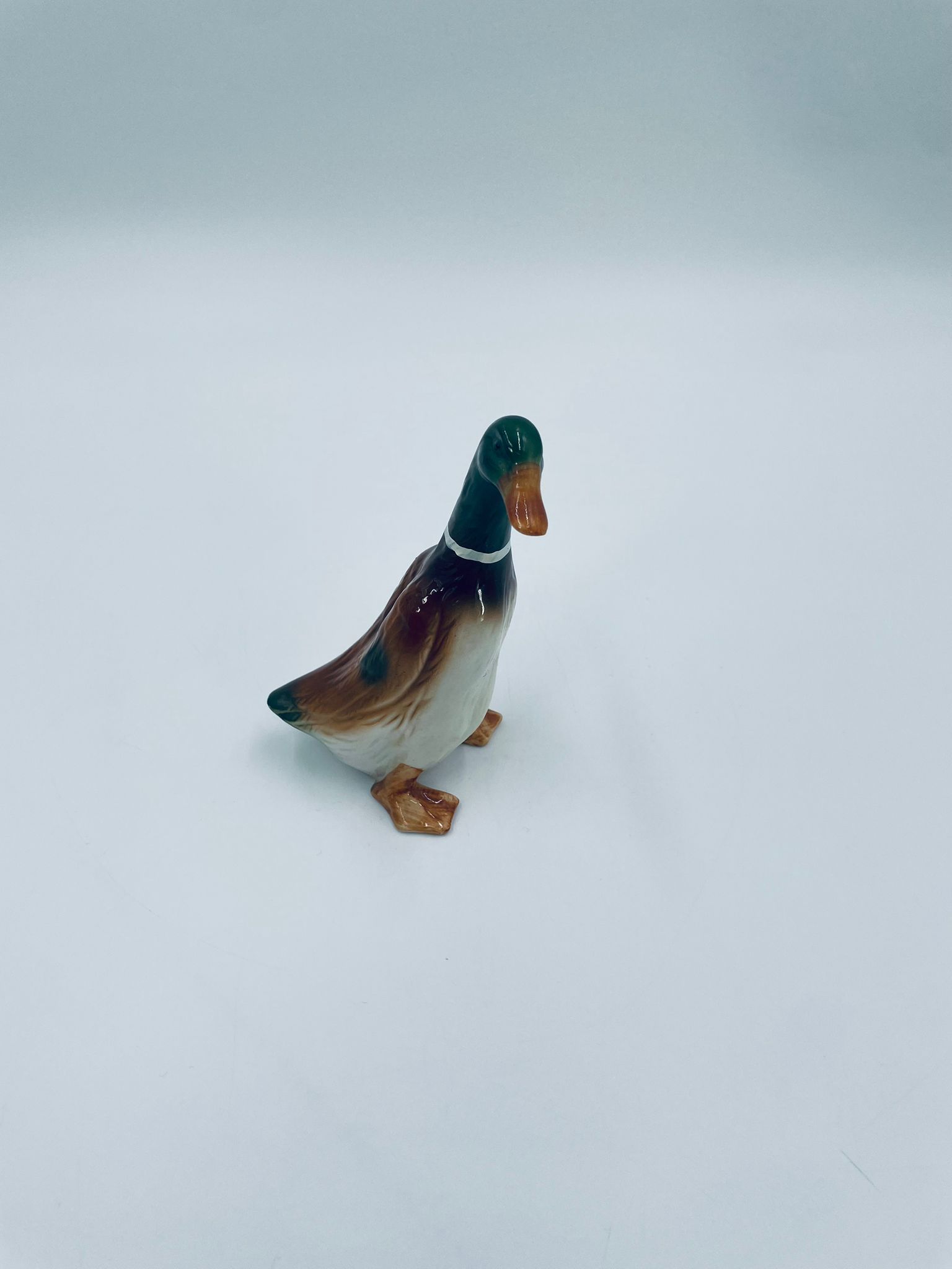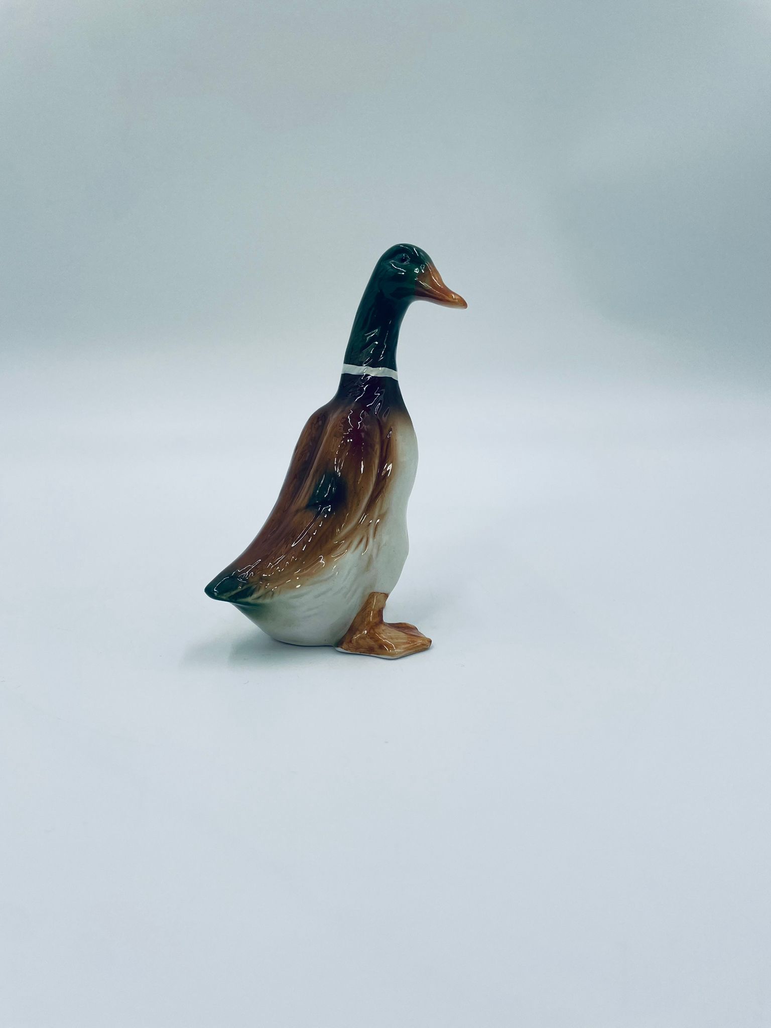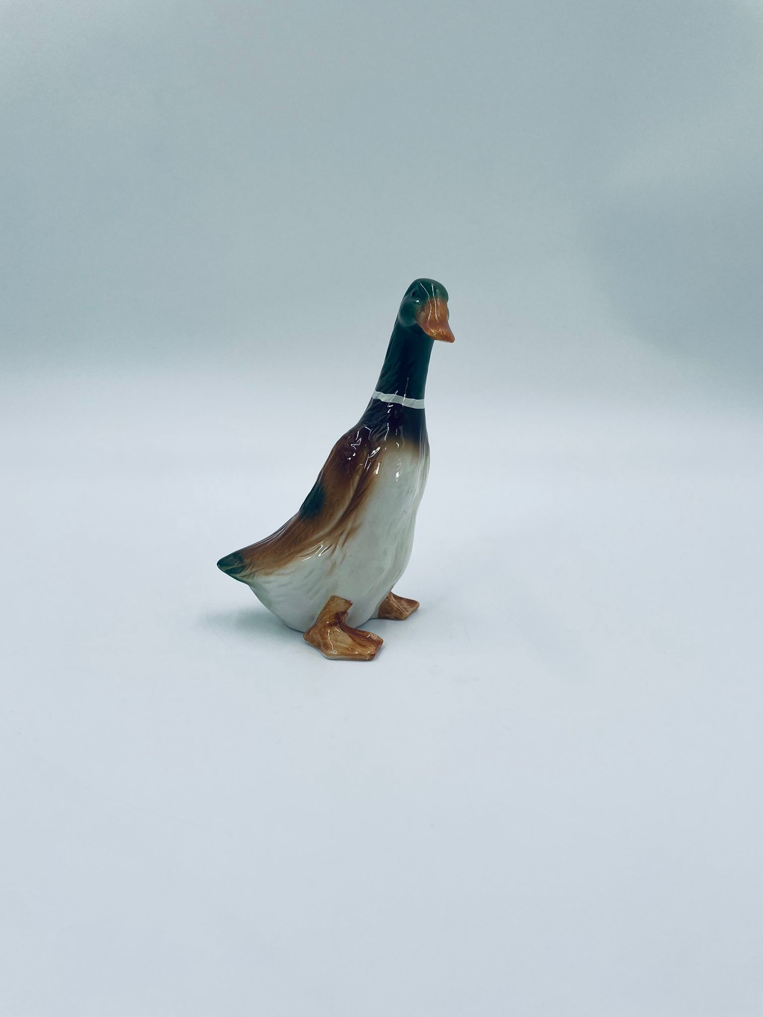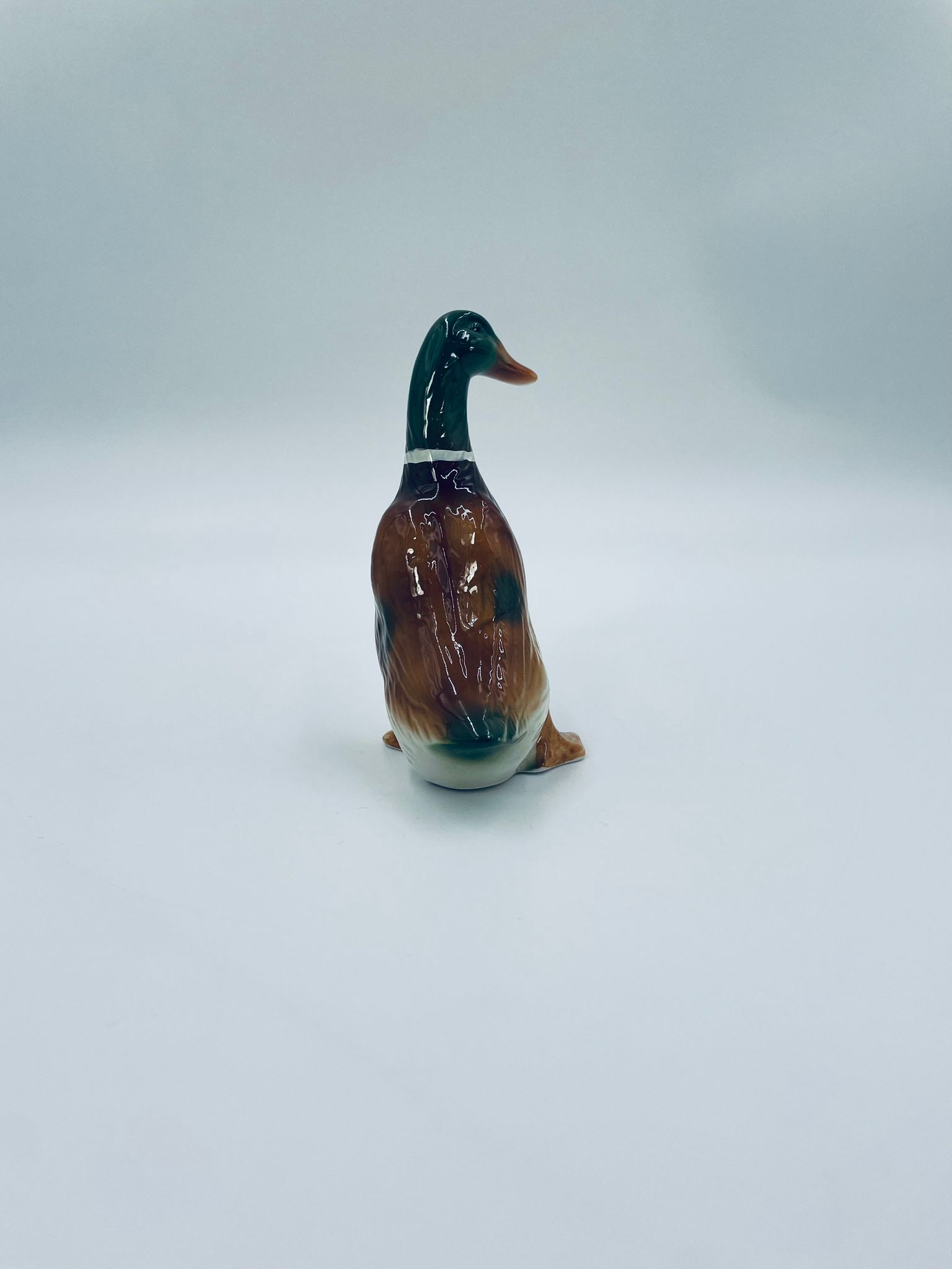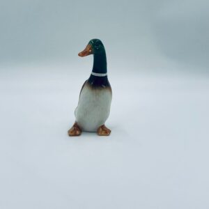 Figurka kolekcjonerska w stylu Vintage, wykonana z wysokiej jakości porcelany. Figurka przedstawia sama kaczki (kaczora) z charakterystyczną, opalizującą, zieloną głową i białym kołnierzem oraz brązowo-białym upierzeniem i brązowymi łapkami.