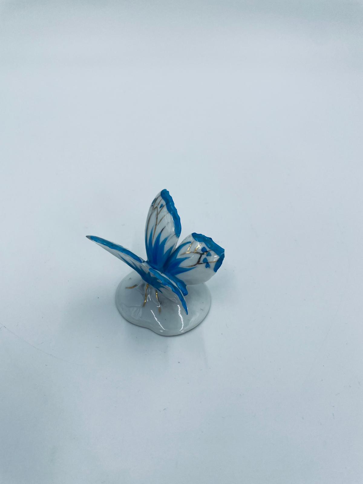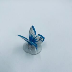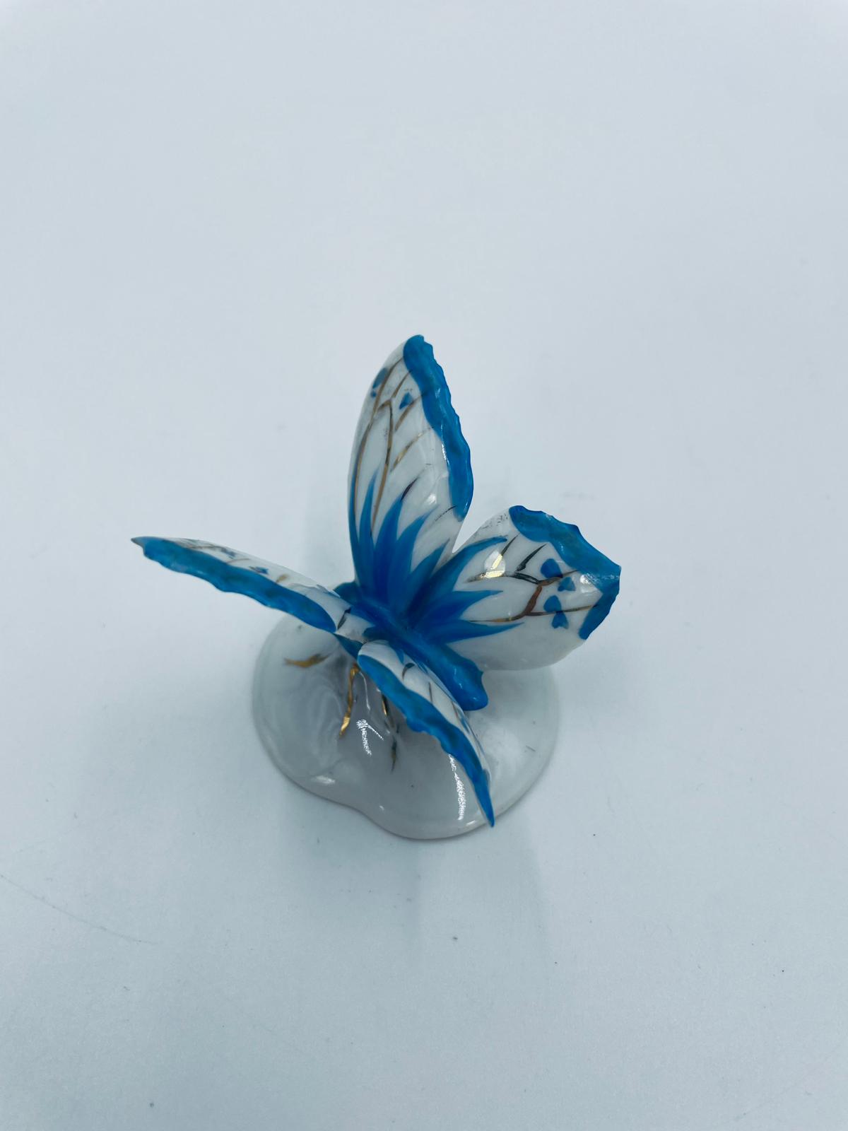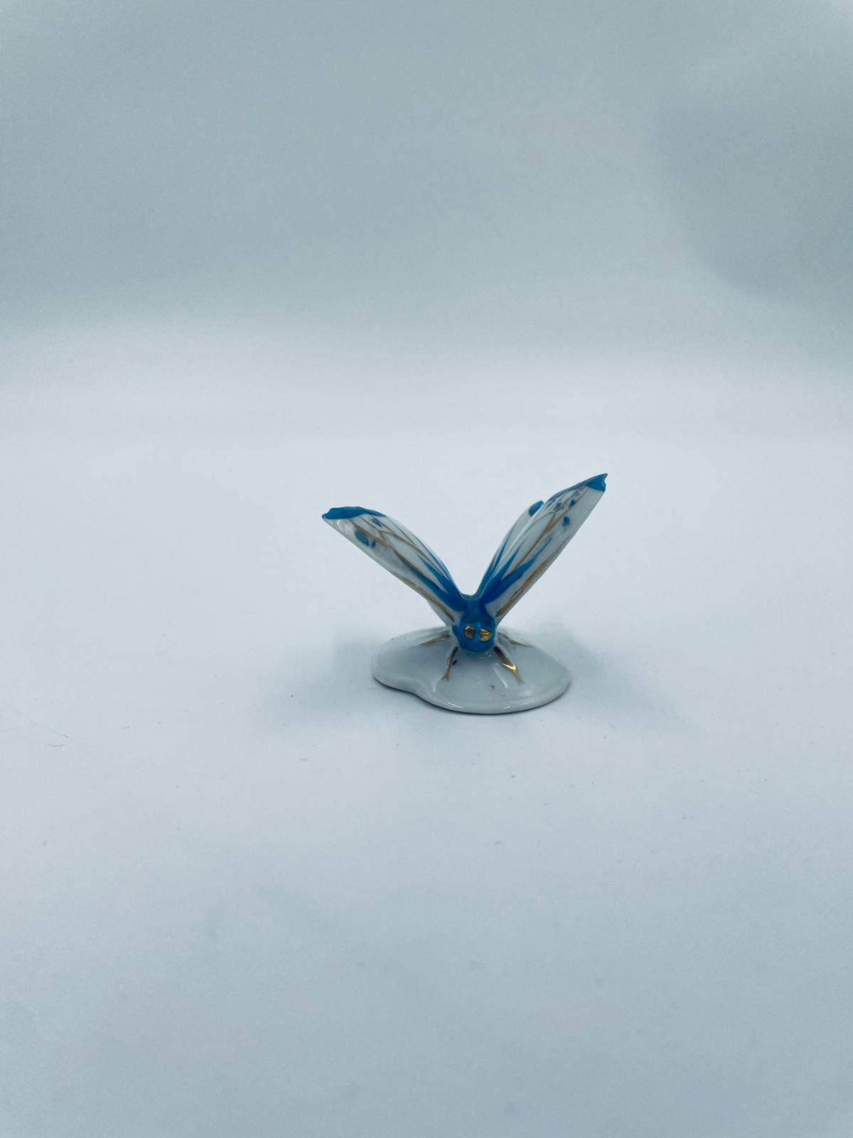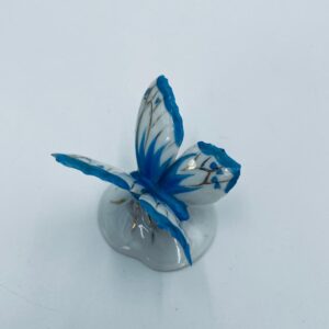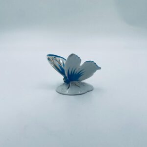 Figurka kolekcjonerska wytwórni Pfeffer Porzellan z lat 1934-1942., wykonana z wysokiej jakości białej porcelany. Figurka w kształcie małego motylka, stojącego na małej, okrągłej podstawie. Skrzydła motylka ręcznie malowane w kolorze niebieskim ze złotymi akcentami. Posiada mały uszczerbek na skrzydełku.
