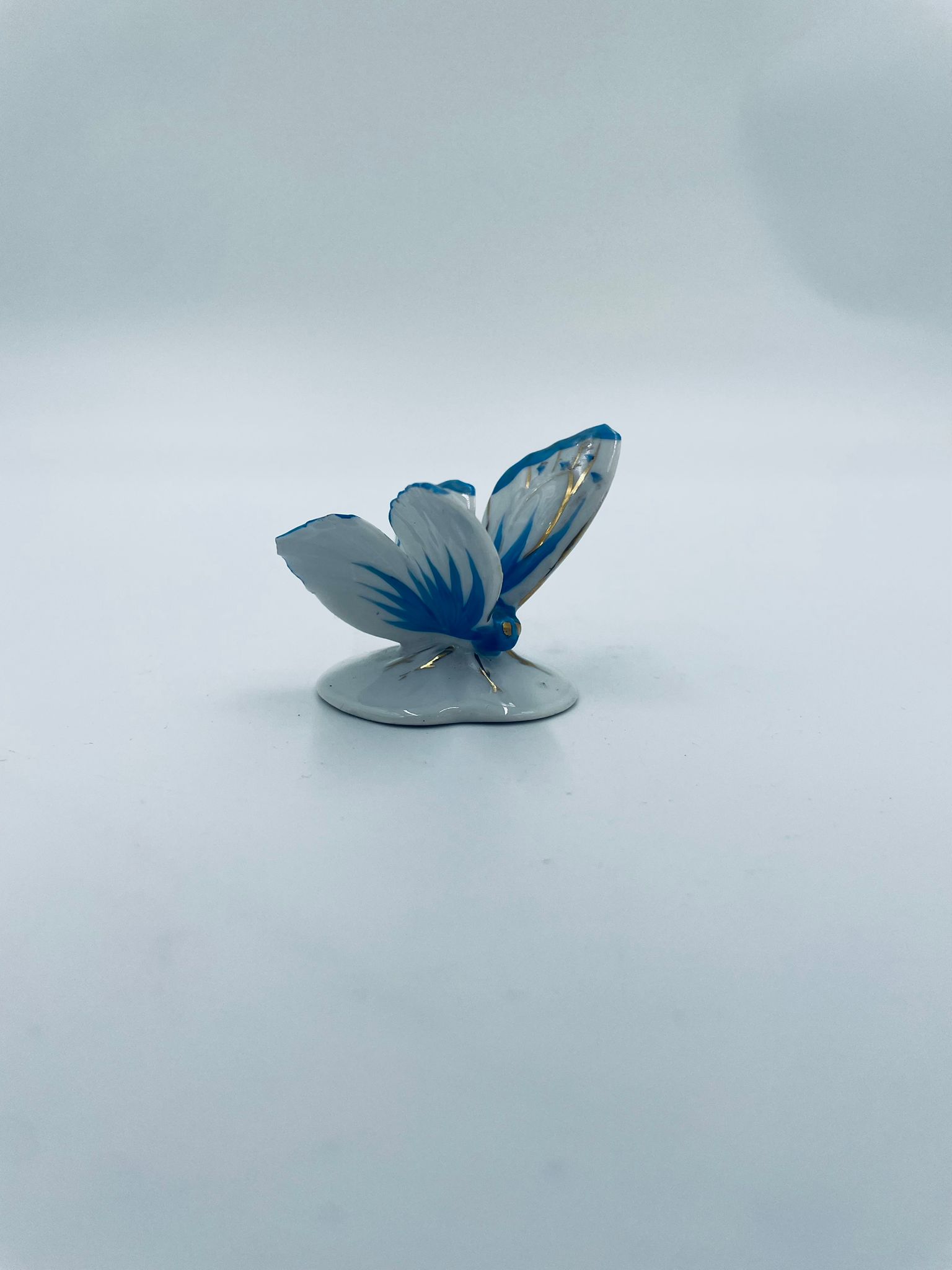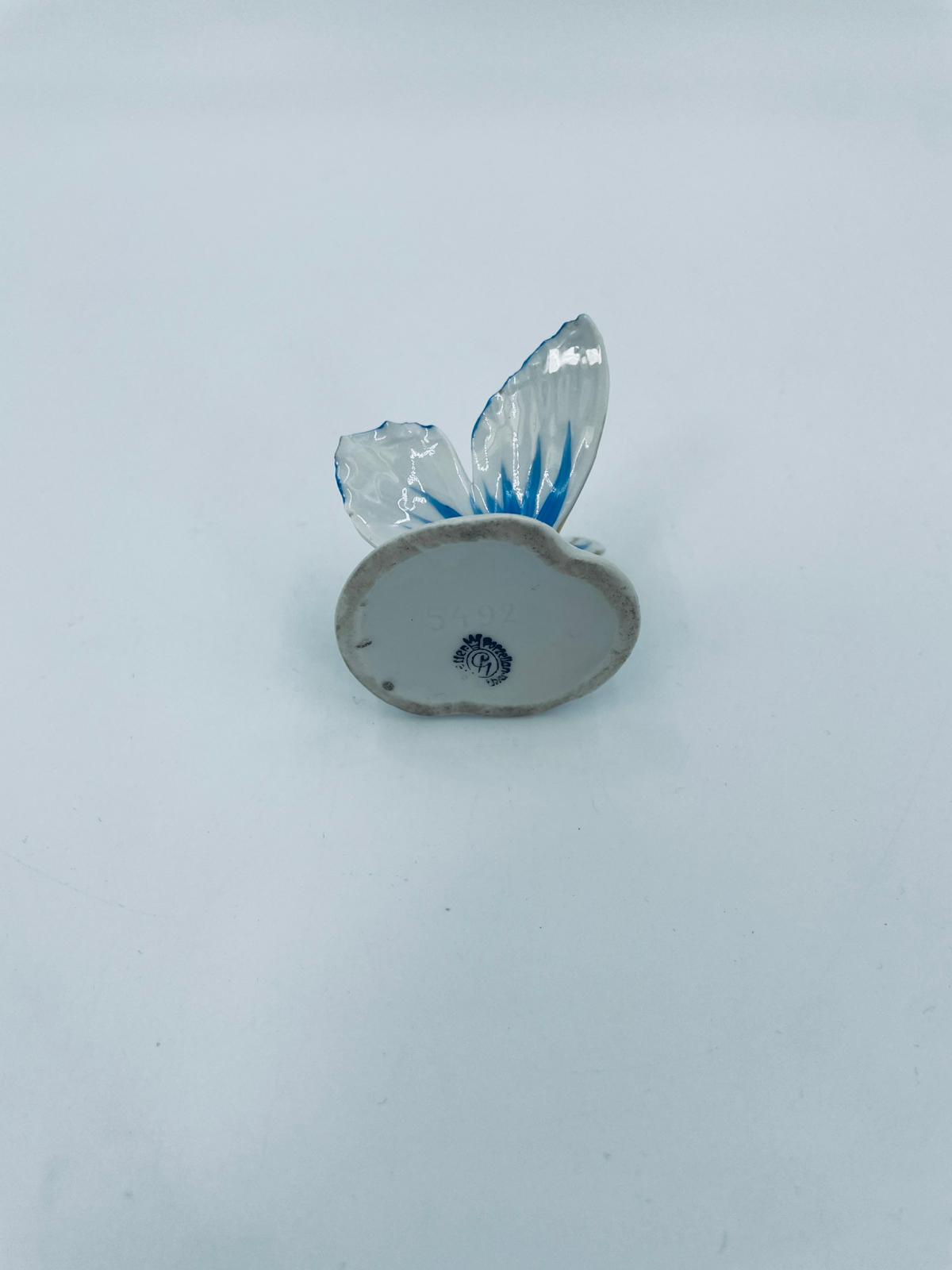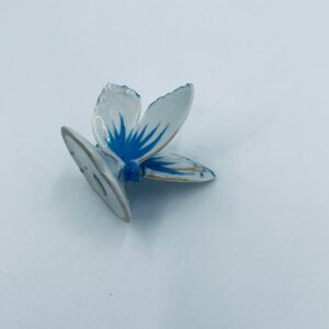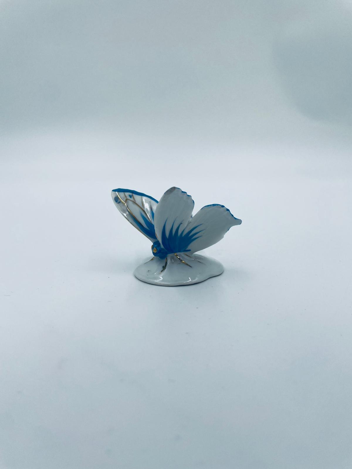 Figurka kolekcjonerska wytwórni Pfeffer Porzellan z lat 1934-1942., wykonana z wysokiej jakości białej porcelany. Figurka w kształcie małego motylka, stojącego na małej, okrągłej podstawie. Skrzydła motylka ręcznie malowane w kolorze niebieskim ze złotymi akcentami. Posiada mały uszczerbek na skrzydełku.