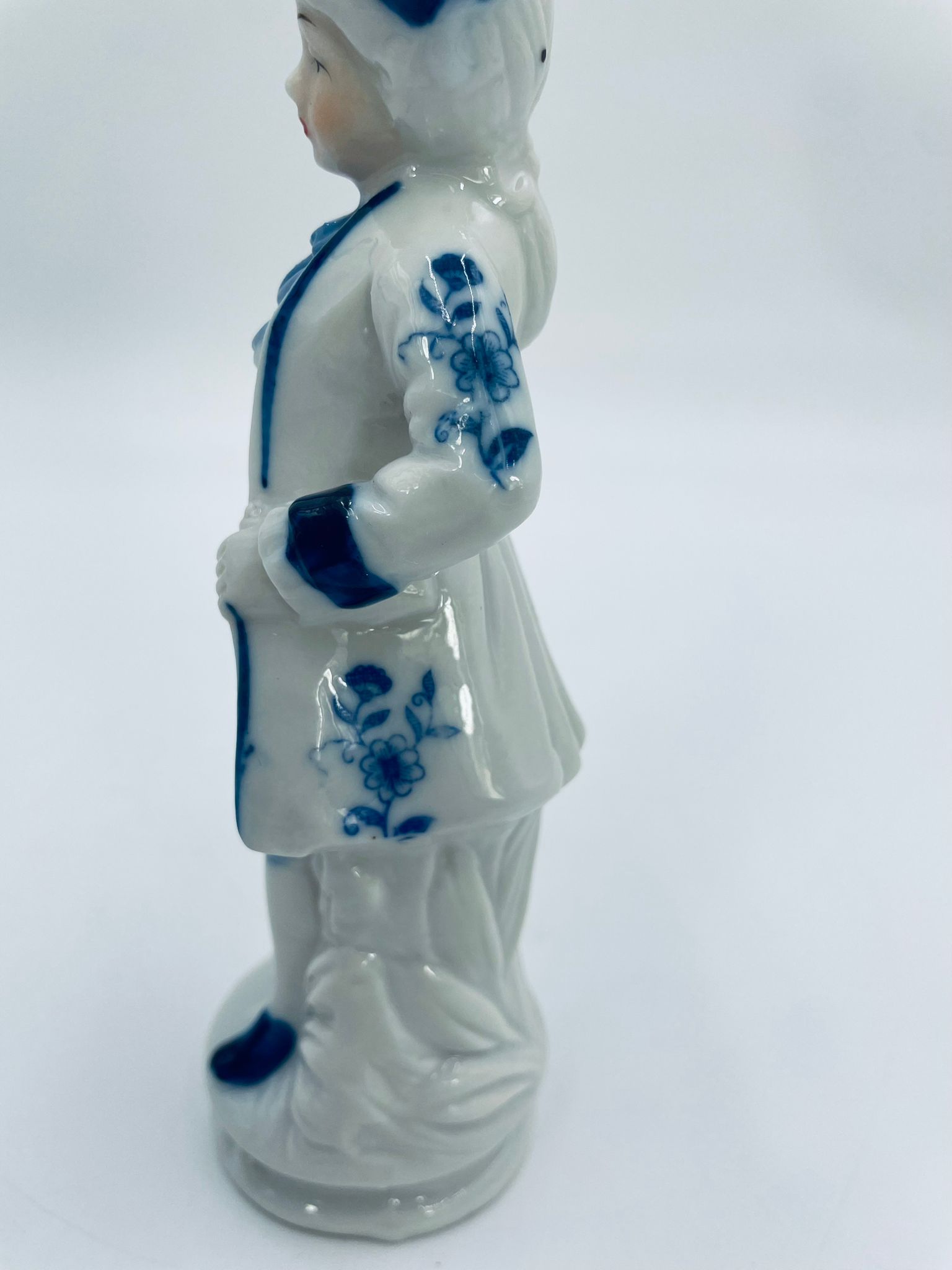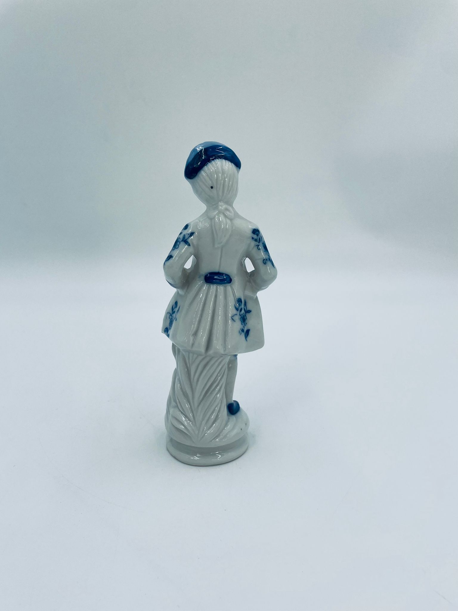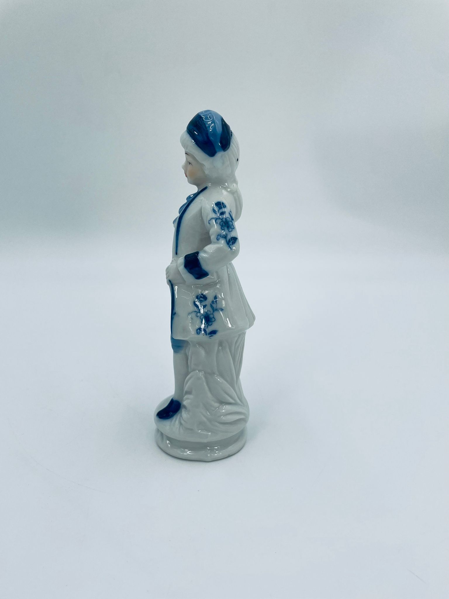 Figurka kolekcjonerska w stylu Vintage, wykonana z wysokiej jakości białej porcelany. Figurka przedstawia postać ubrana w tradycyjny strój z ręcznie malowanymi wzorami kwiatowymi.