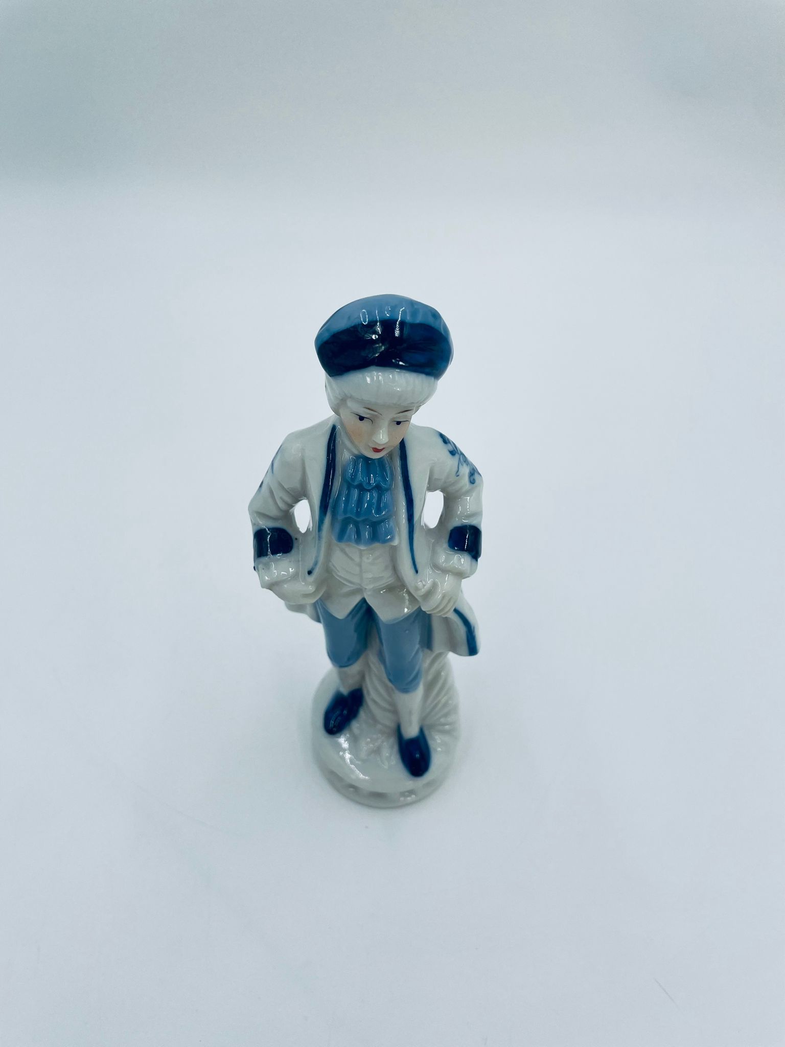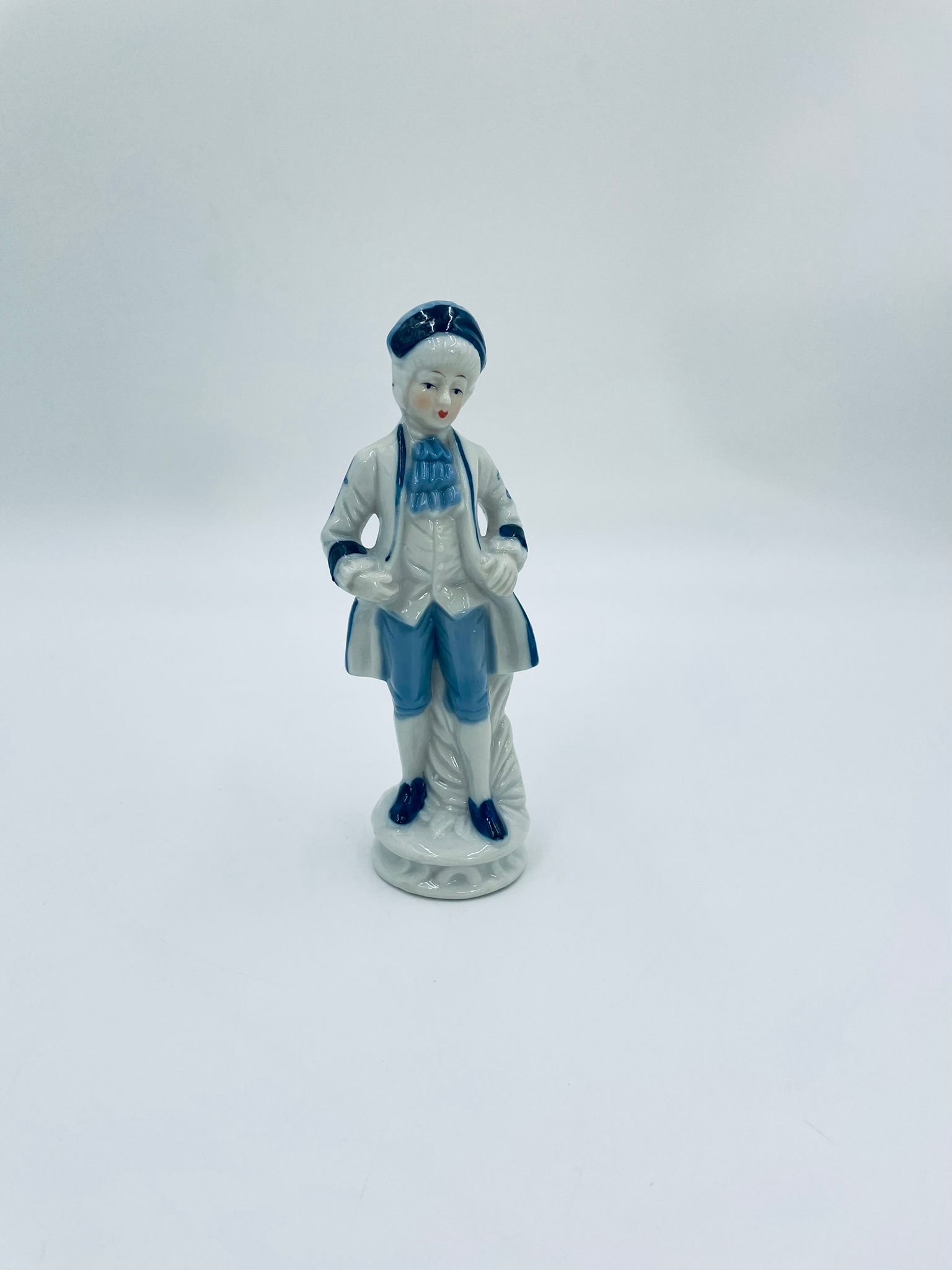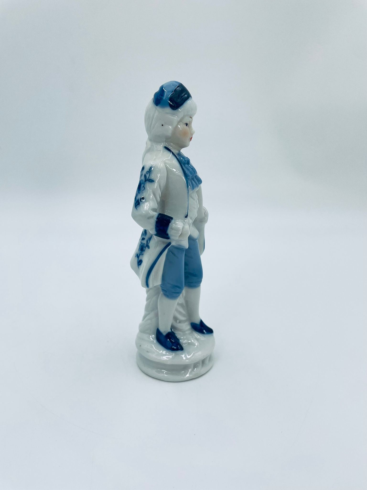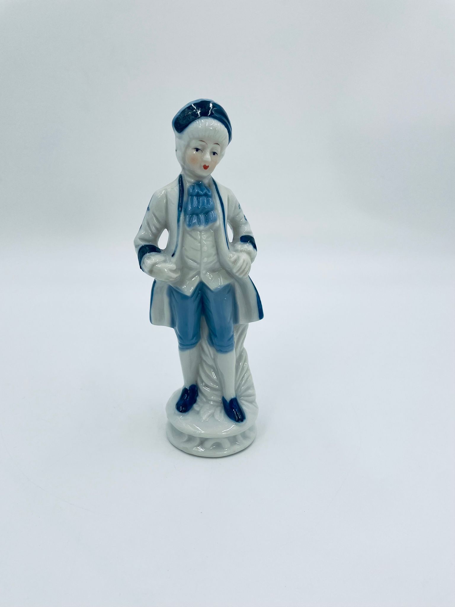 Figurka kolekcjonerska w stylu Vintage, wykonana z wysokiej jakości białej porcelany. Figurka przedstawia postać ubrana w tradycyjny strój z ręcznie malowanymi wzorami kwiatowymi.