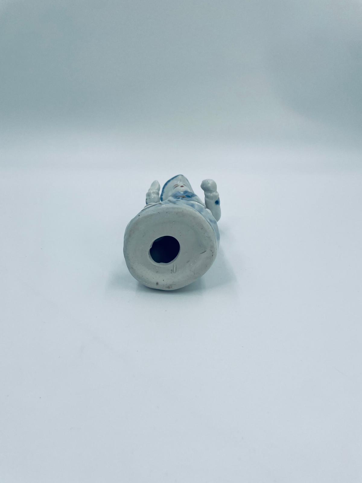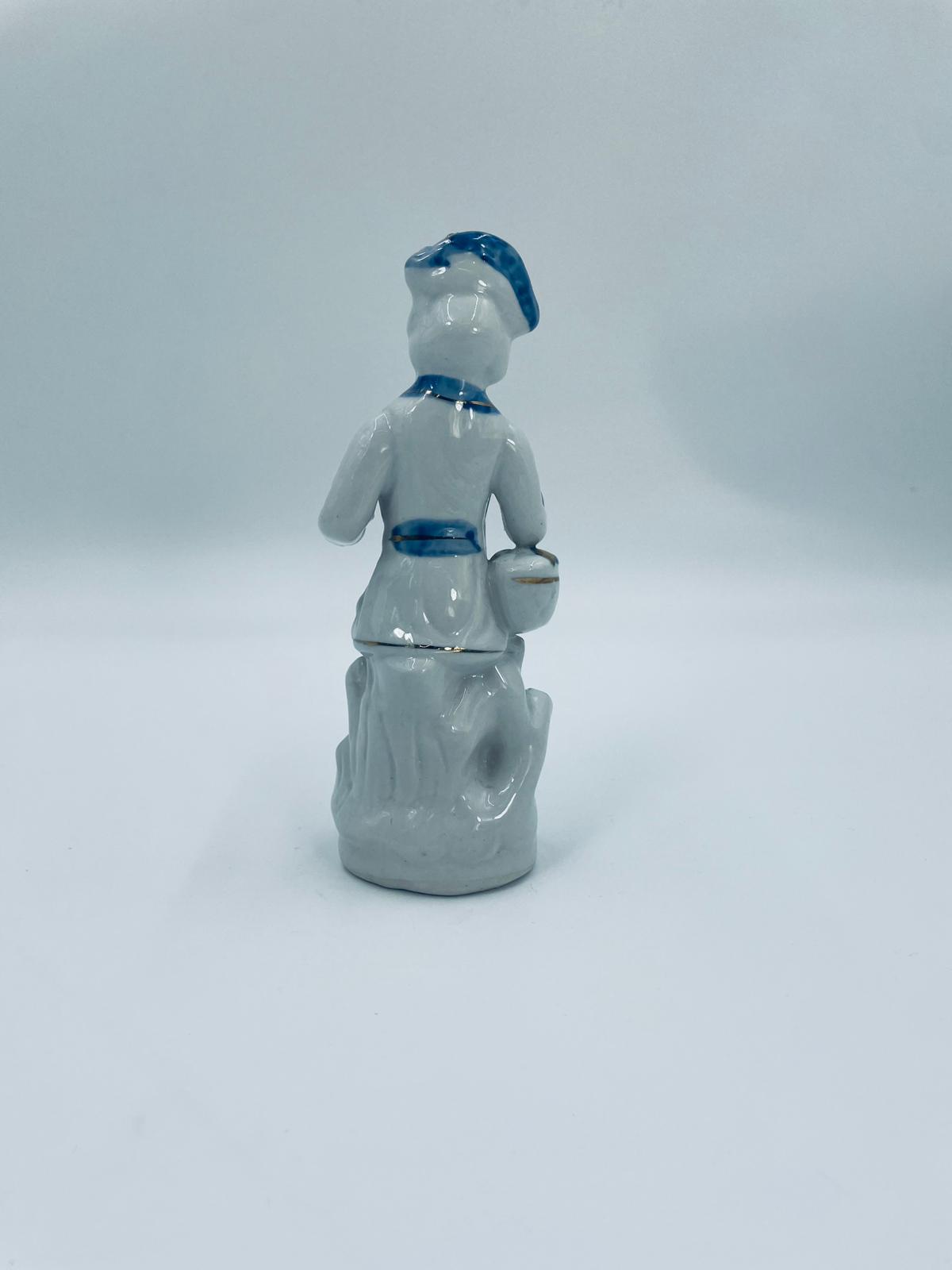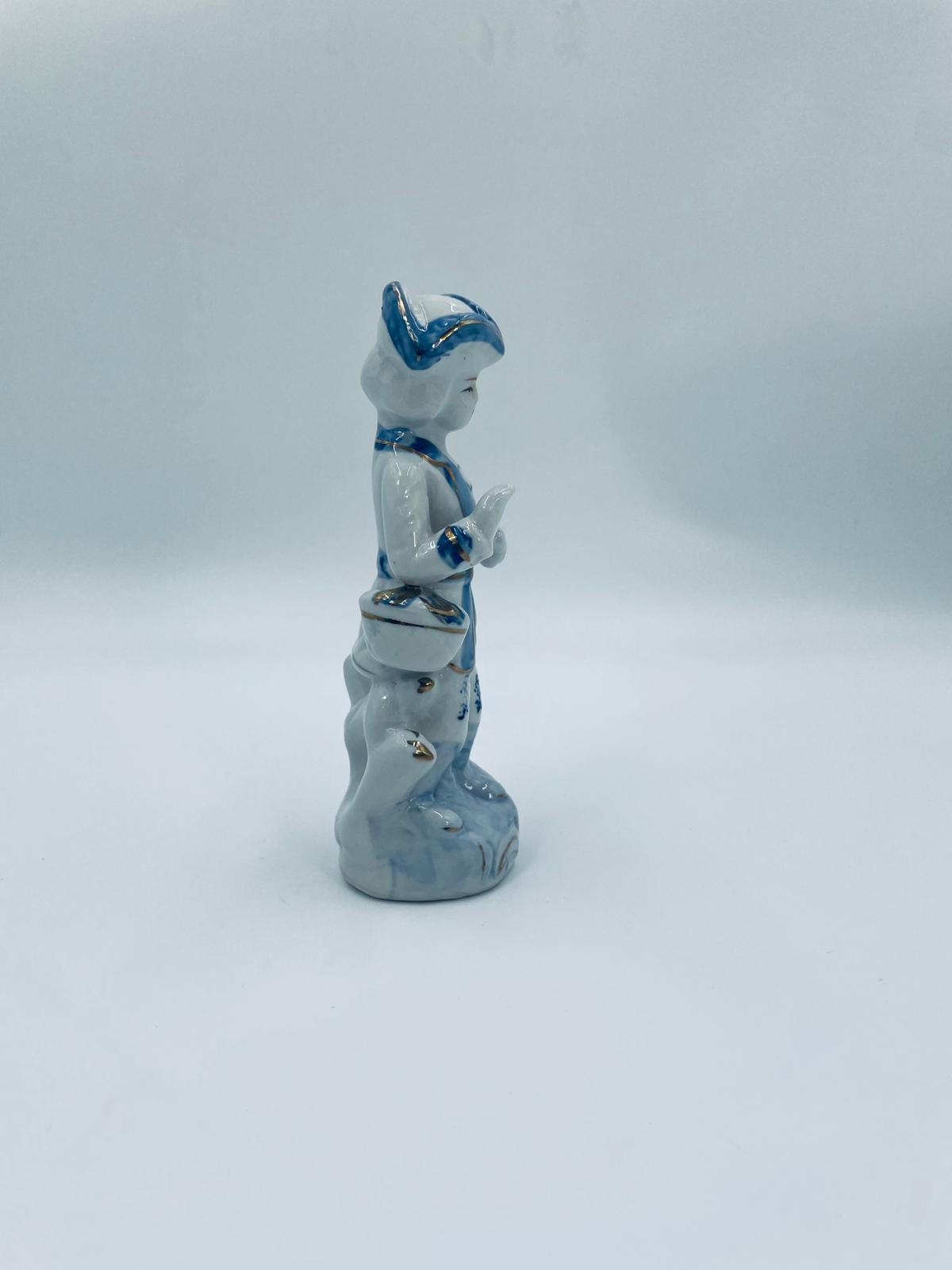 Figurka kolekcjonerska w stylu Vintage, wykonana z wysokiej jakości białej porcelany. Figurka przedstawia postać ubrana w tradycyjny strój z ręcznie malowanymi wzorami kwiatowymi oraz złotymi akcentami. Posiada przetarcie.