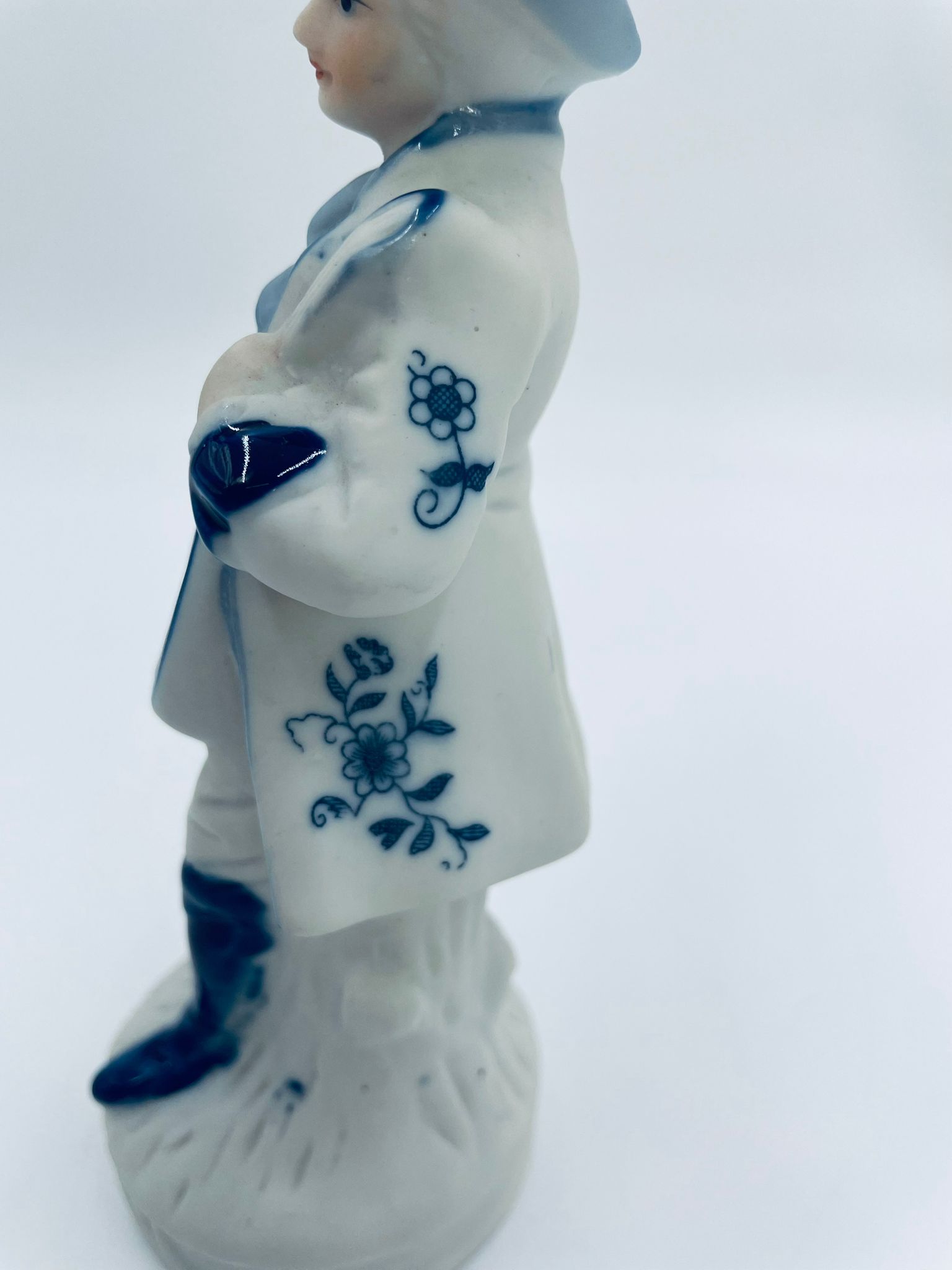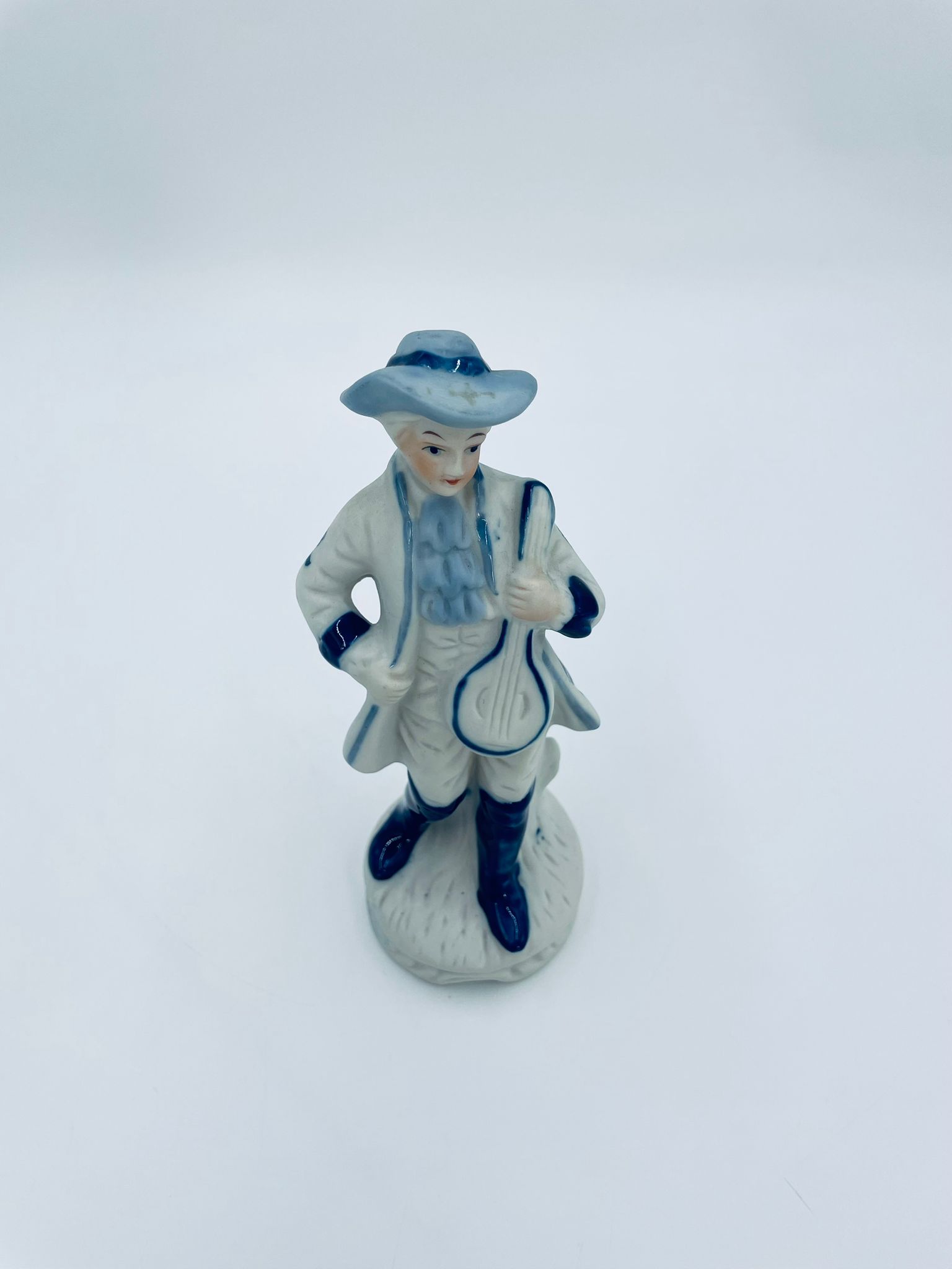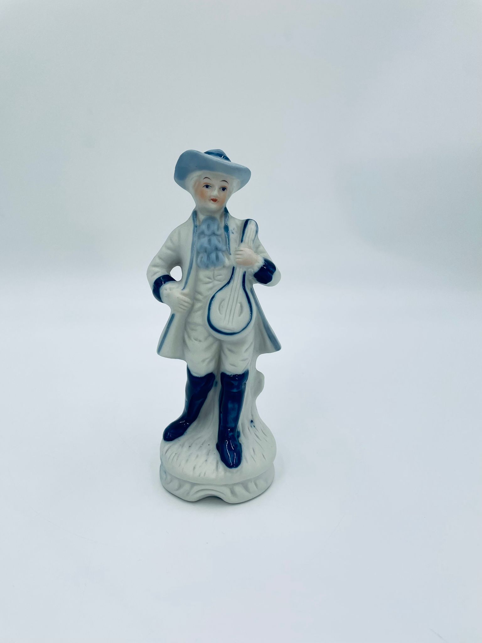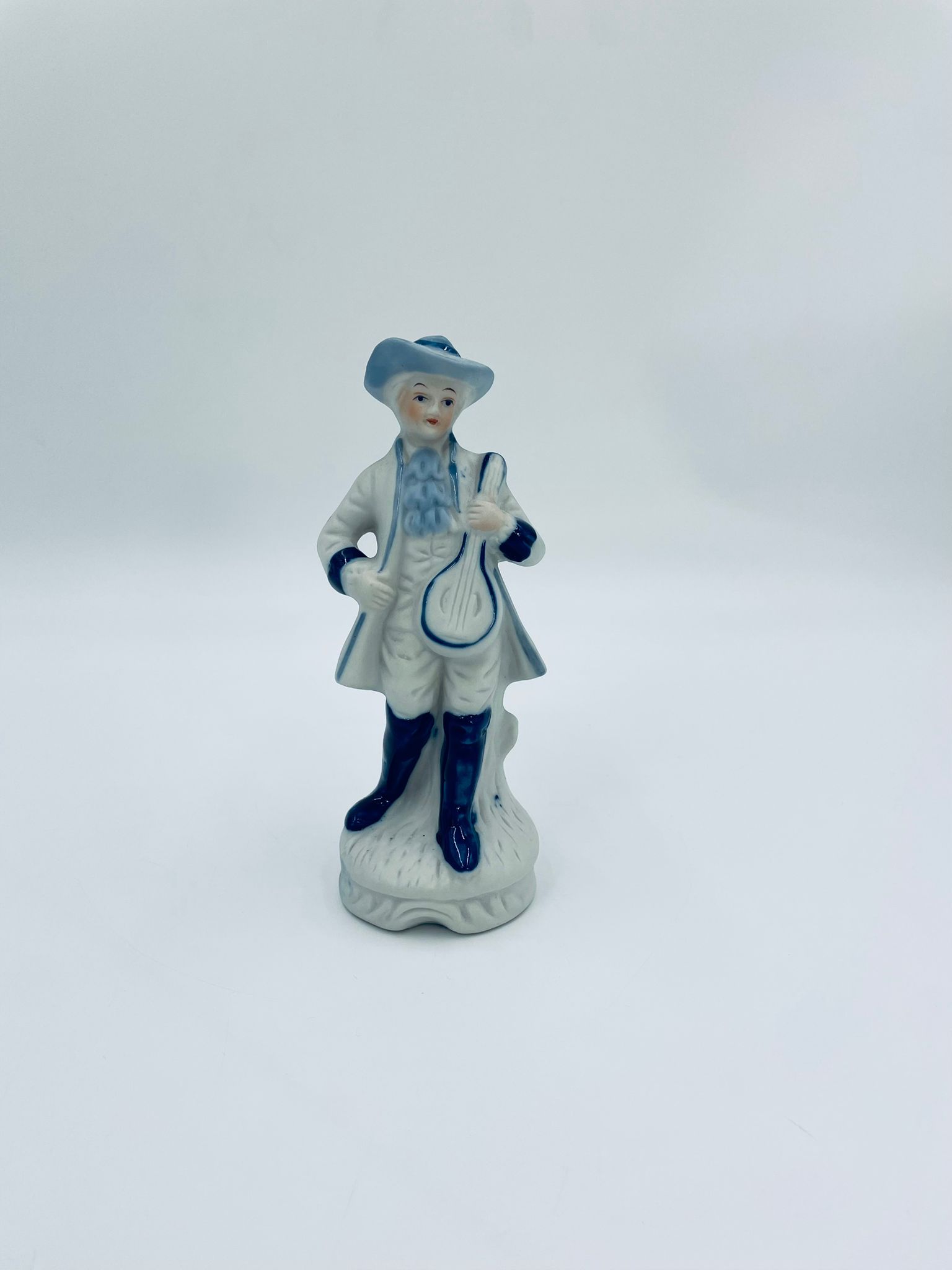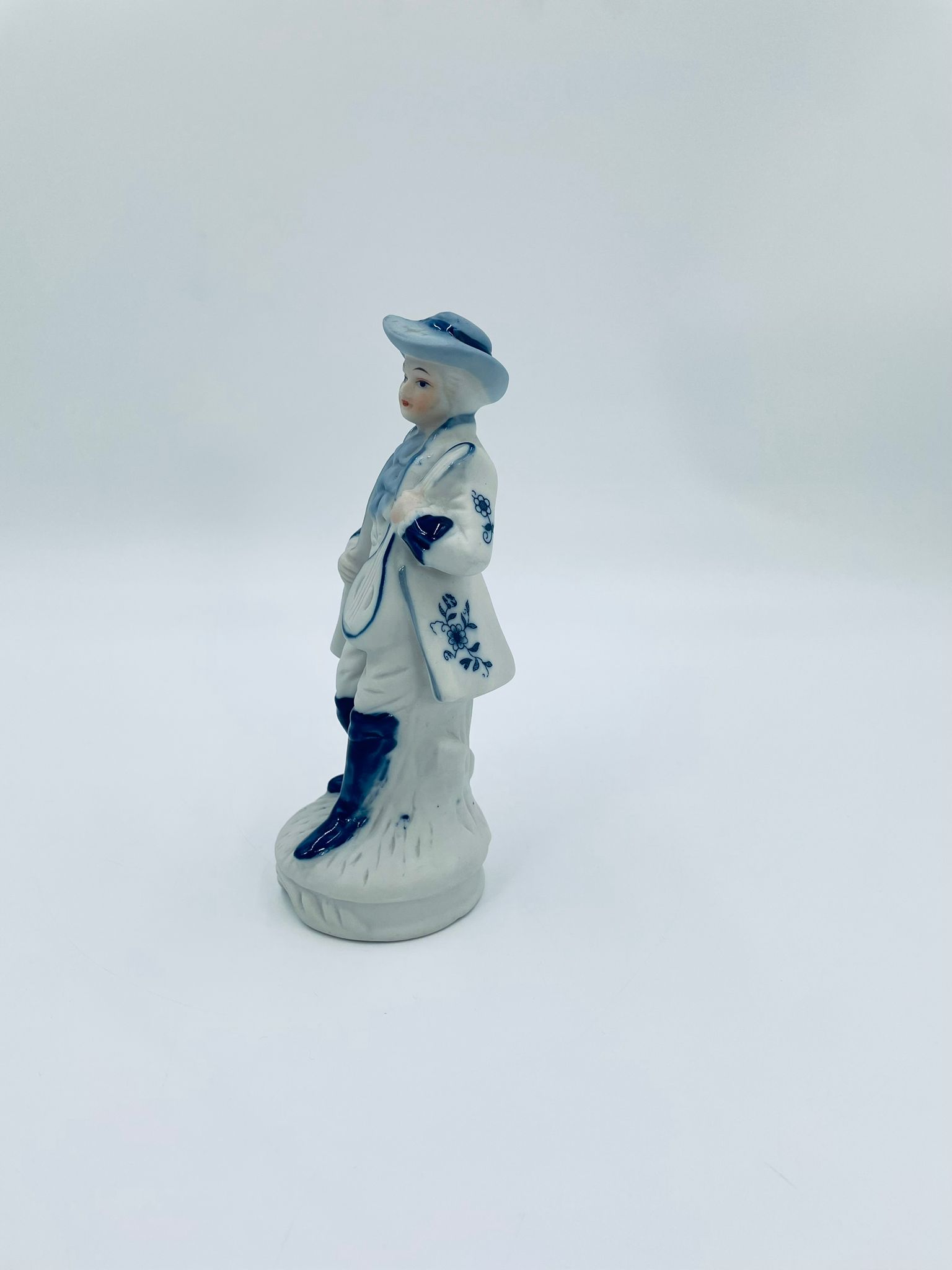 Figurka kolekcjonerska w stylu Vintage, wykonana z wysokiej jakości białej porcelany, częściowo szkliwionej . Figurka przedstawia postać z mandoliną ubrana w tradycyjny strój z ręcznie malowanymi wzorami kwiatowymi.