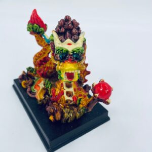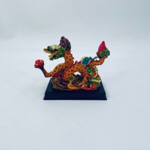 Figurka kolekcjonerska przestawia Chińskiego smoka, trzymającego czerwoną perłę, osadzonego na brązowej podstawie. Smok jest wielokolorowy, ma misternie wyrzeźbione Łuski i grzywę. Smok w kulturze chińskiej jest symbolem siły, władzy, szczęścia i powodzenia. Perła, którą trzyma, często symbolizuje mądrość, bogactwo lub energię duchową.