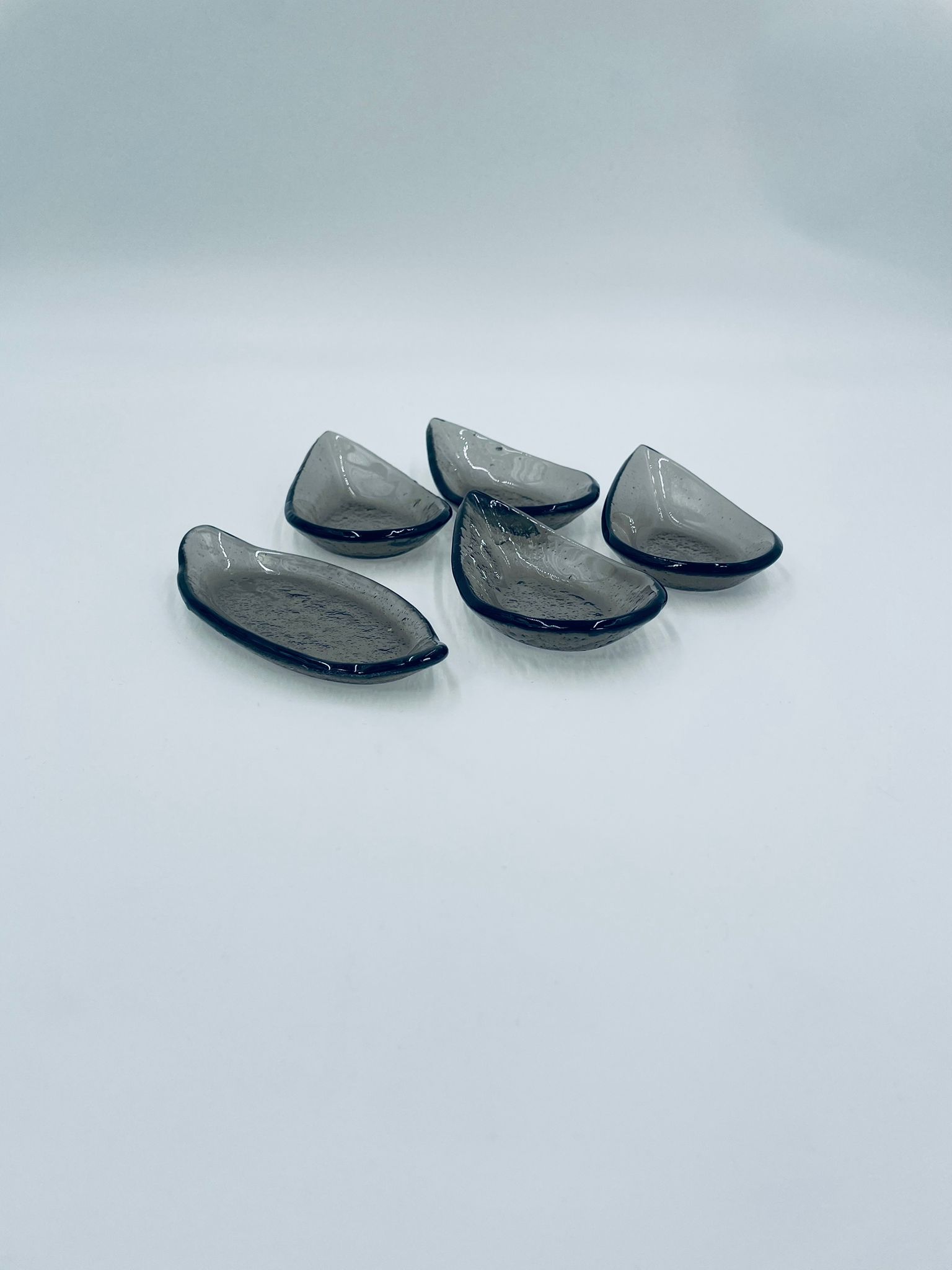 Set of finger food dishes , by Fine Dine from the Vetro collection, made of high quality glass. Bowls in dark colour, in the shape of a dot. Ideal for serving small snacks.