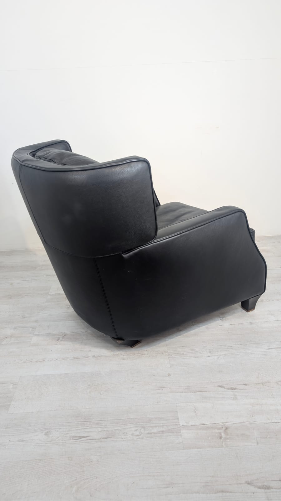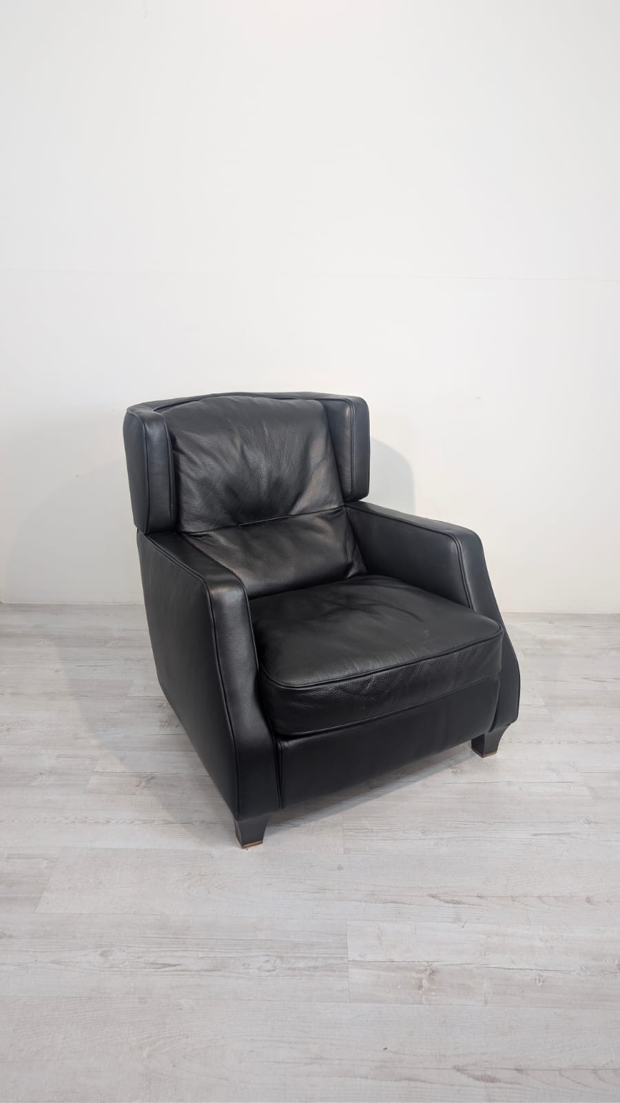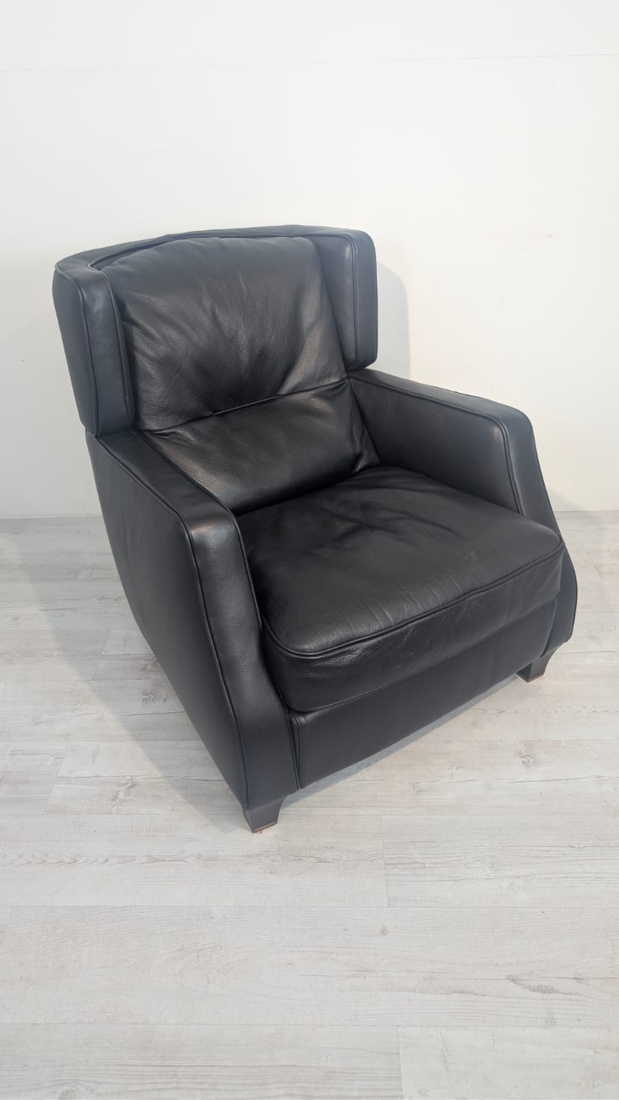 Wygodny fotel Amadeus marki Natuzzi Italia. Meble te charakteryzują się wysoką jakością wykonania i trwałością ze skóy naturalnej czarnej. Fotel jest stabilny i odporny na uszkodzenia mechaniczne. Polecam go jako praktyczne i stylowe uzupełnienie aranżacji wnętrza.
