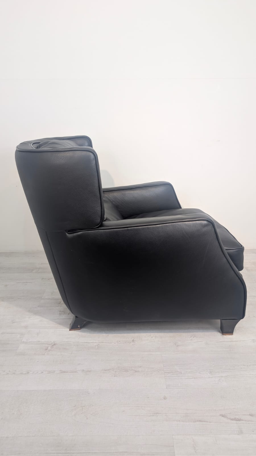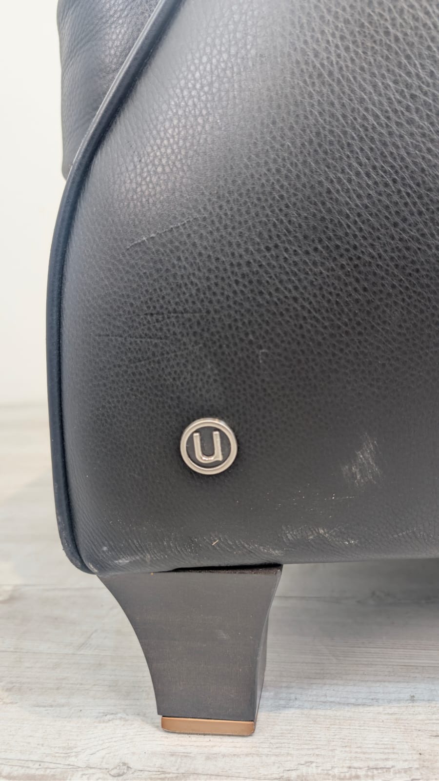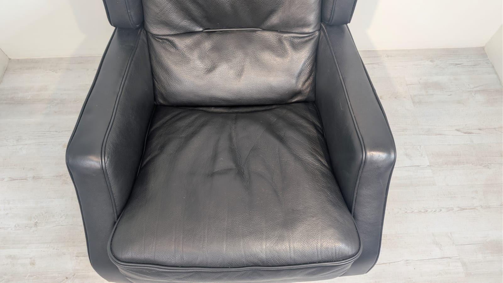 Wygodny fotel Amadeus marki Natuzzi Italia. Meble te charakteryzują się wysoką jakością wykonania i trwałością ze skóy naturalnej czarnej. Fotel jest stabilny i odporny na uszkodzenia mechaniczne. Polecam go jako praktyczne i stylowe uzupełnienie aranżacji wnętrza.