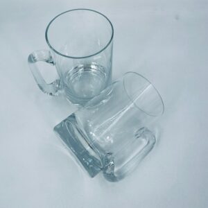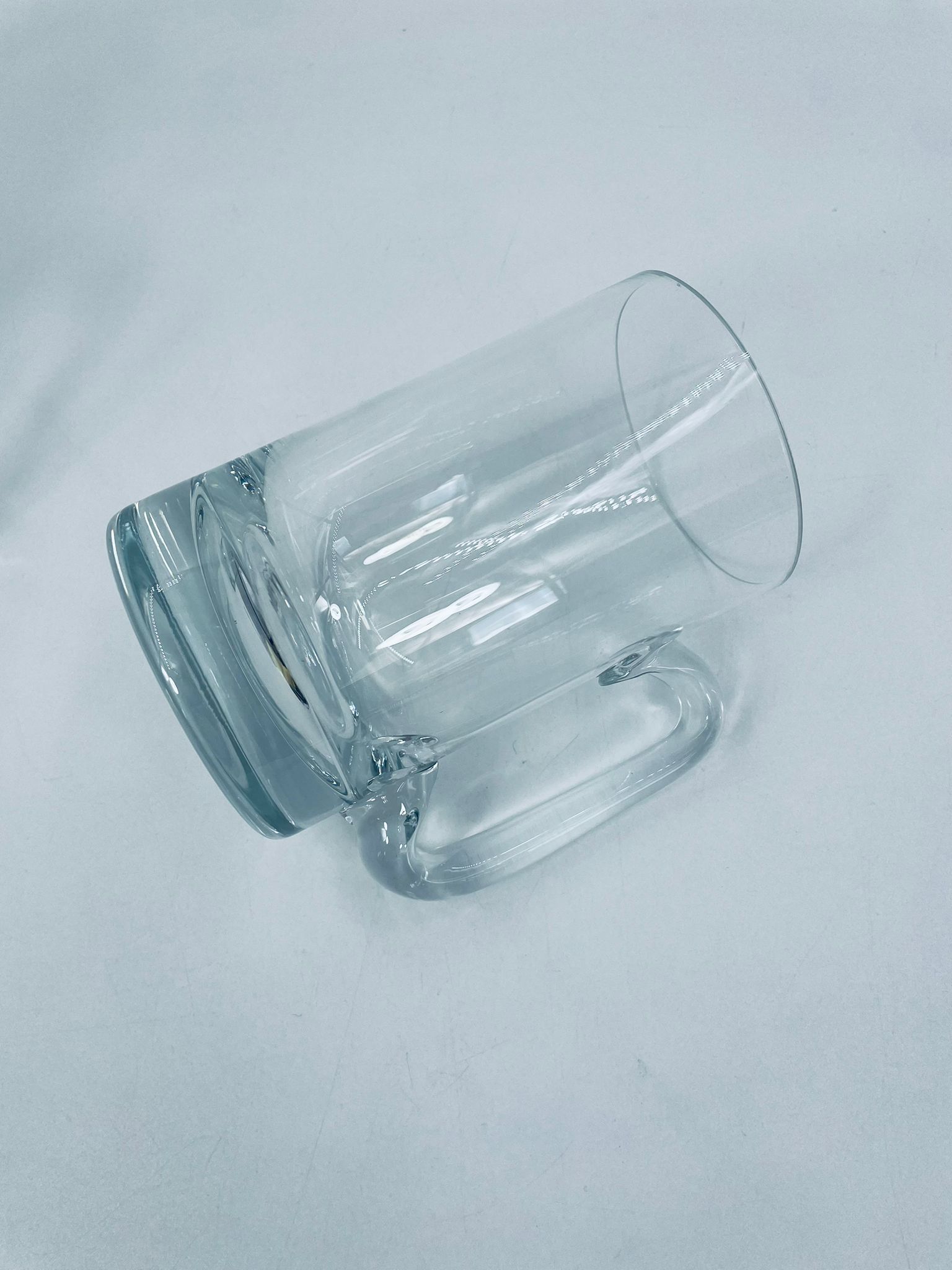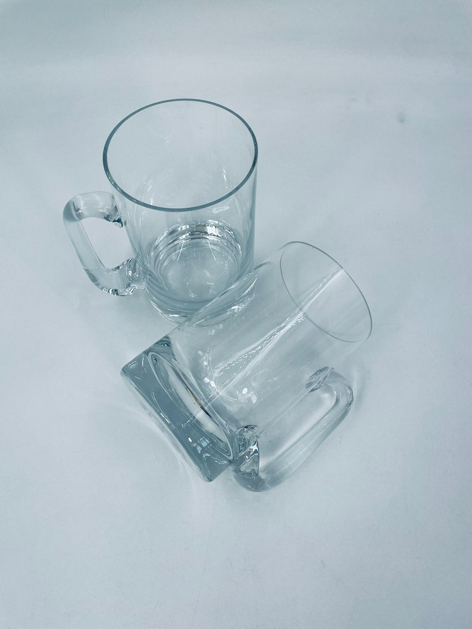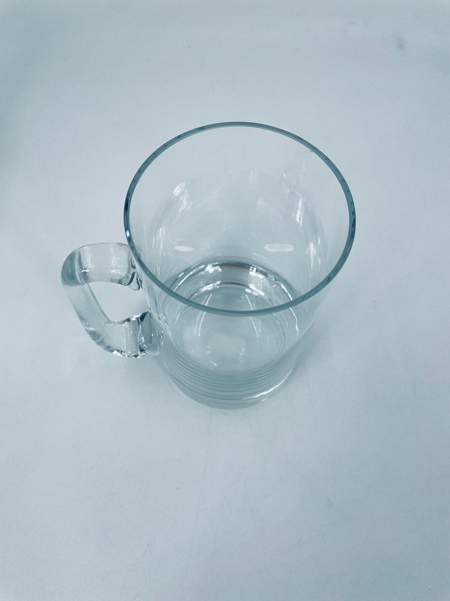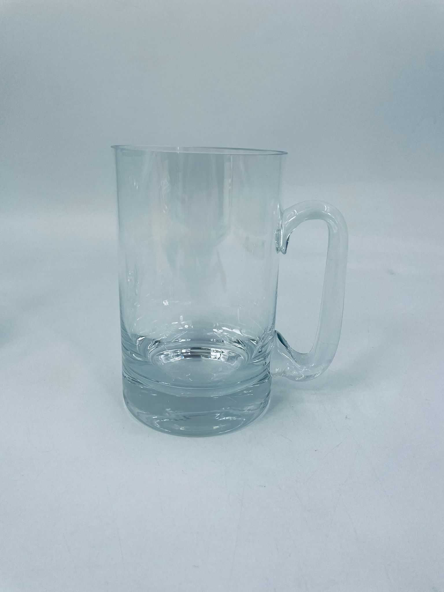 Clear glass beer mug, classic cylindrical shape. The tankard has thicker glass at the base.