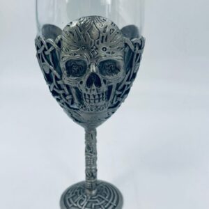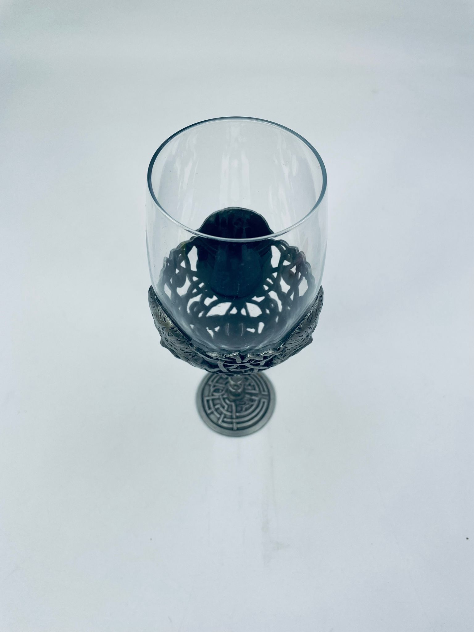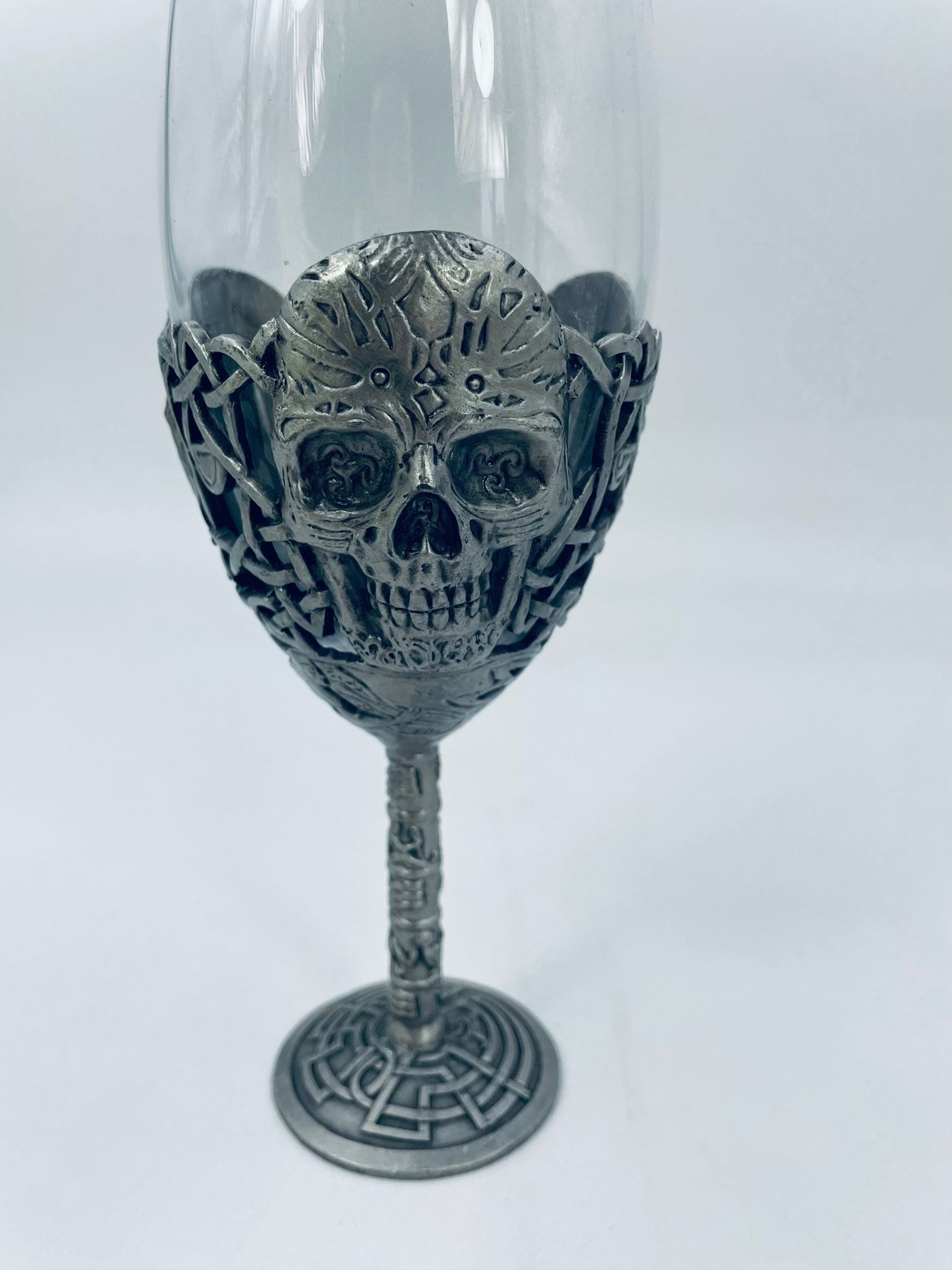 Myths Legends Veronese glass wine cup. The motif of the chalice is skulls, spider webs made of pewter.