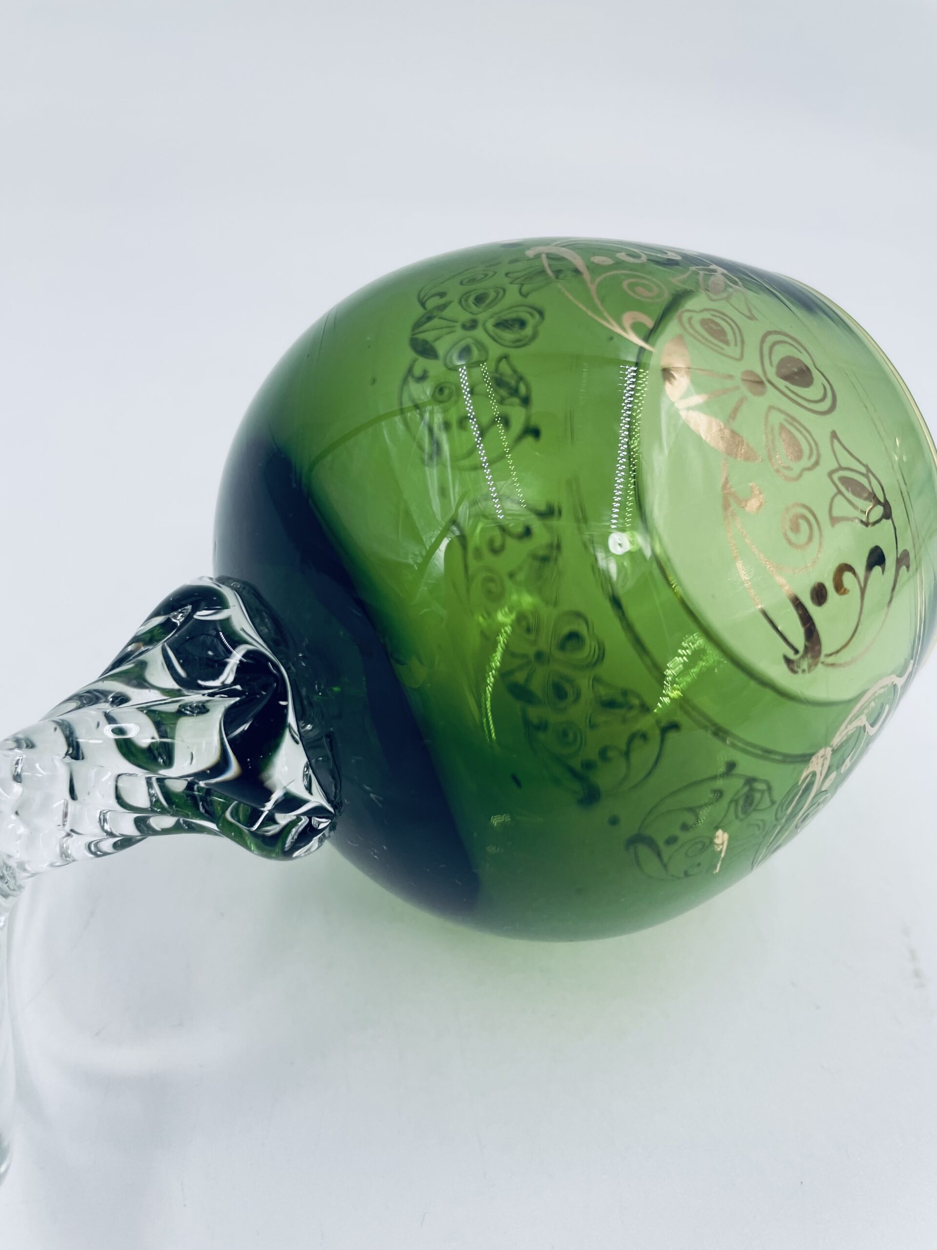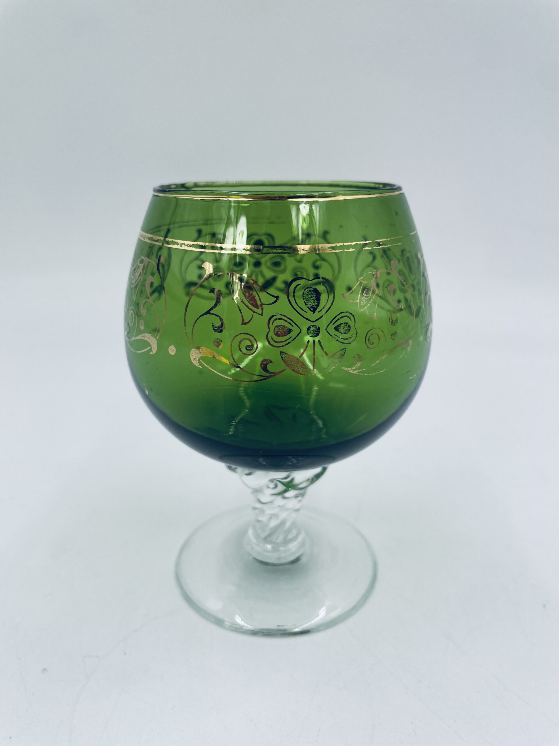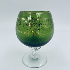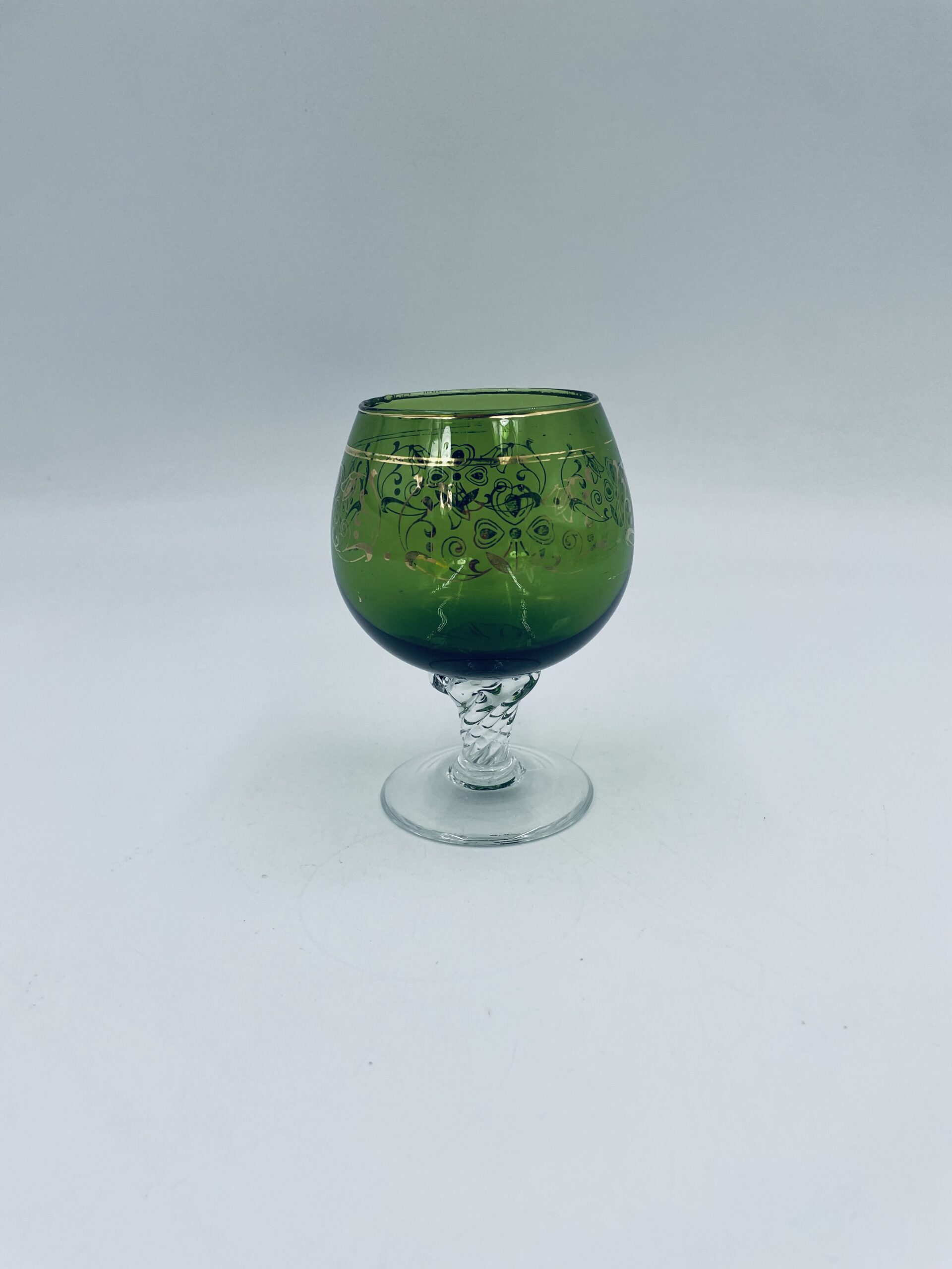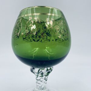 It has a delicate gilt decor on the cup and on the base and a twisted leg.