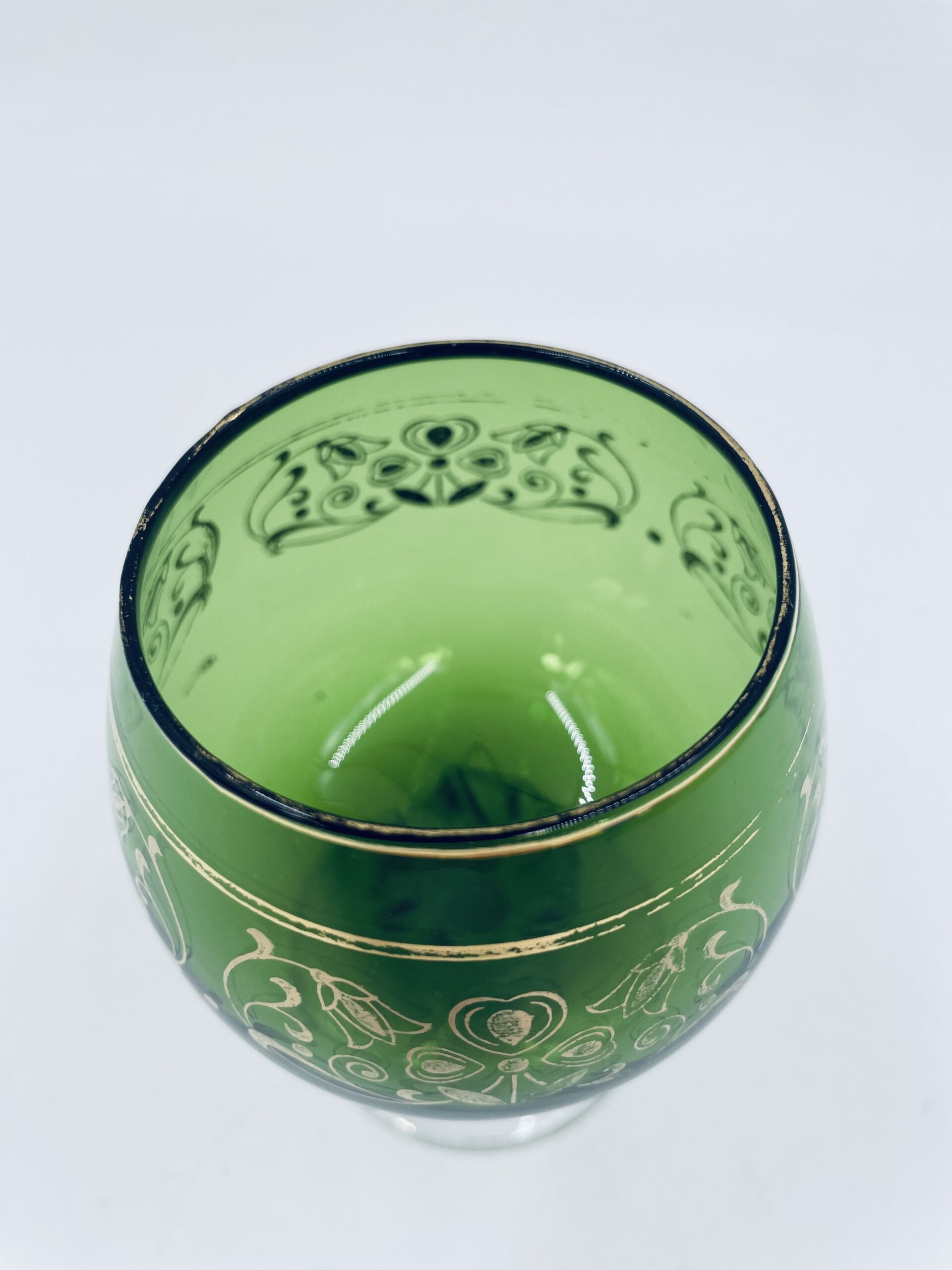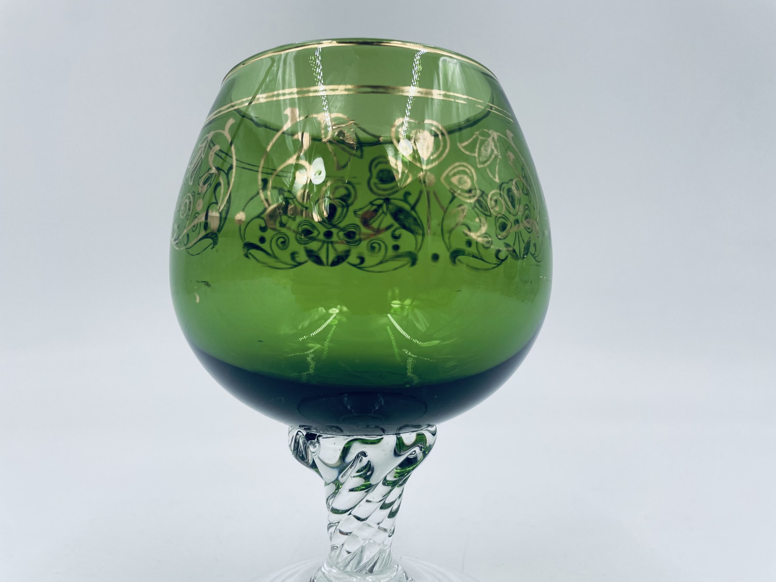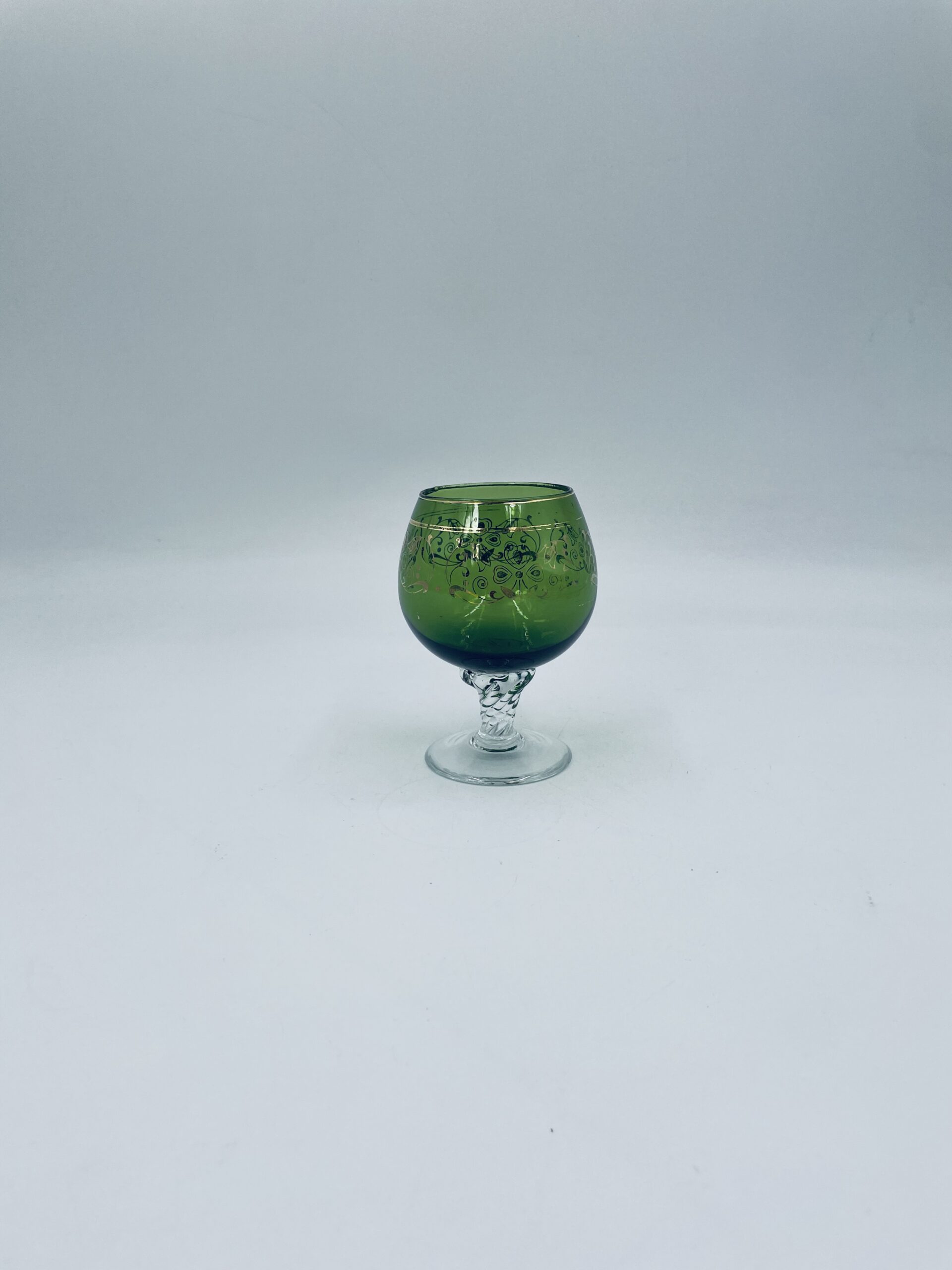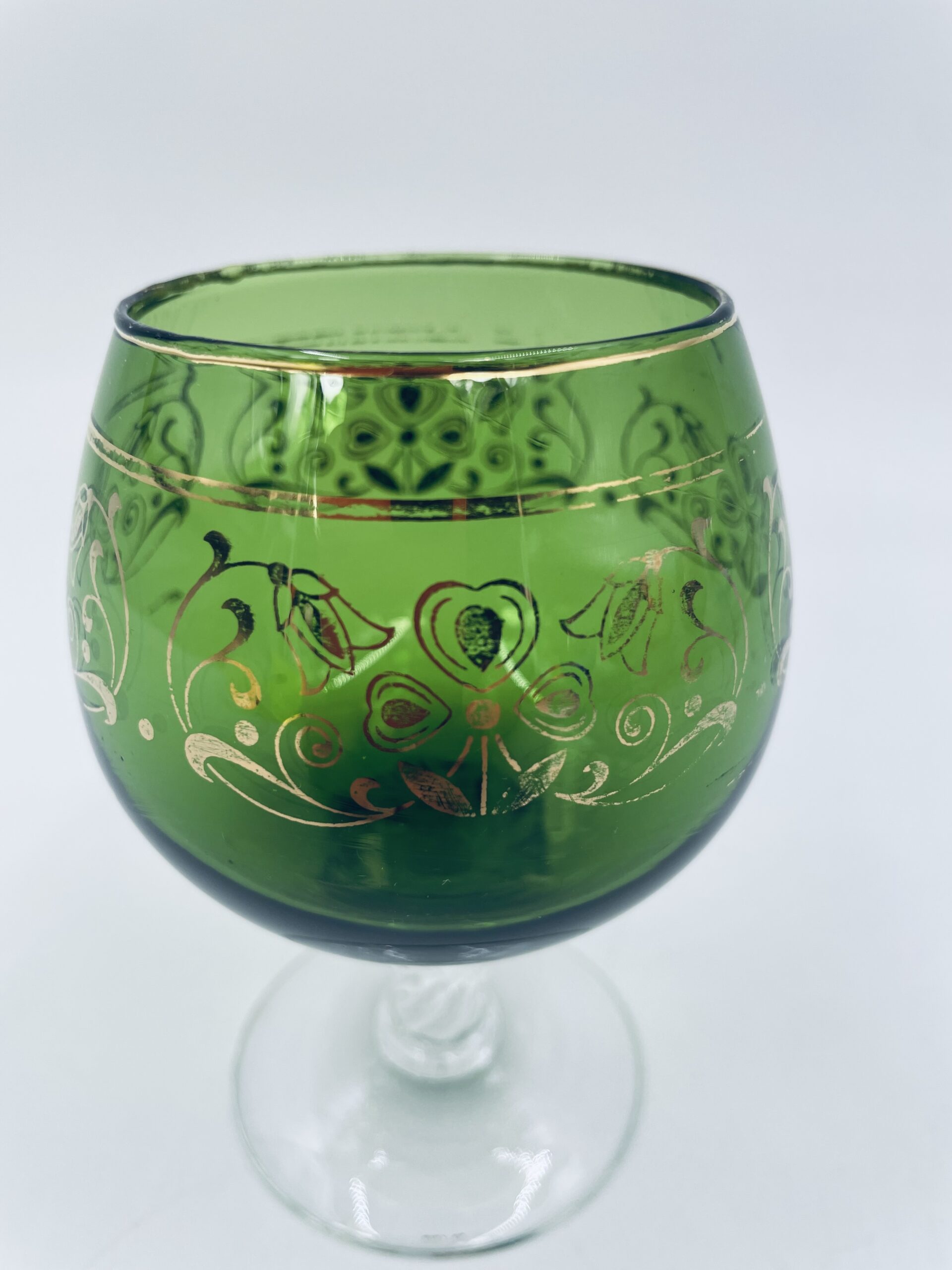 It has a delicate gilt decor on the cup and on the base and a twisted leg.