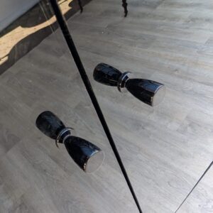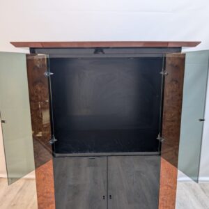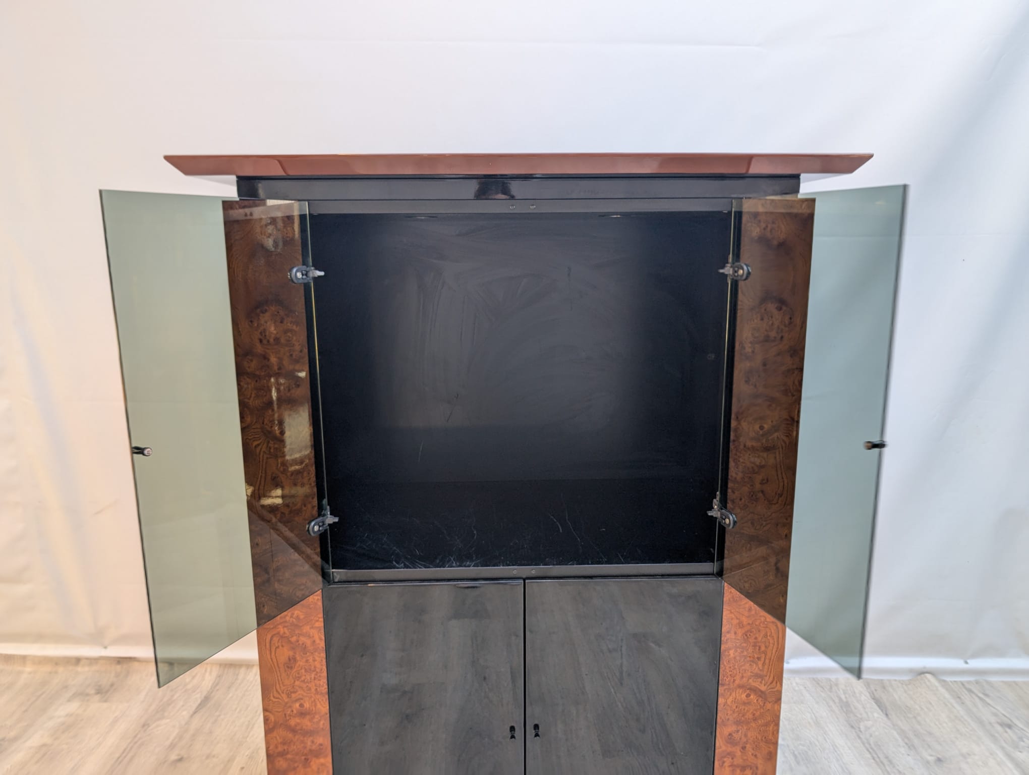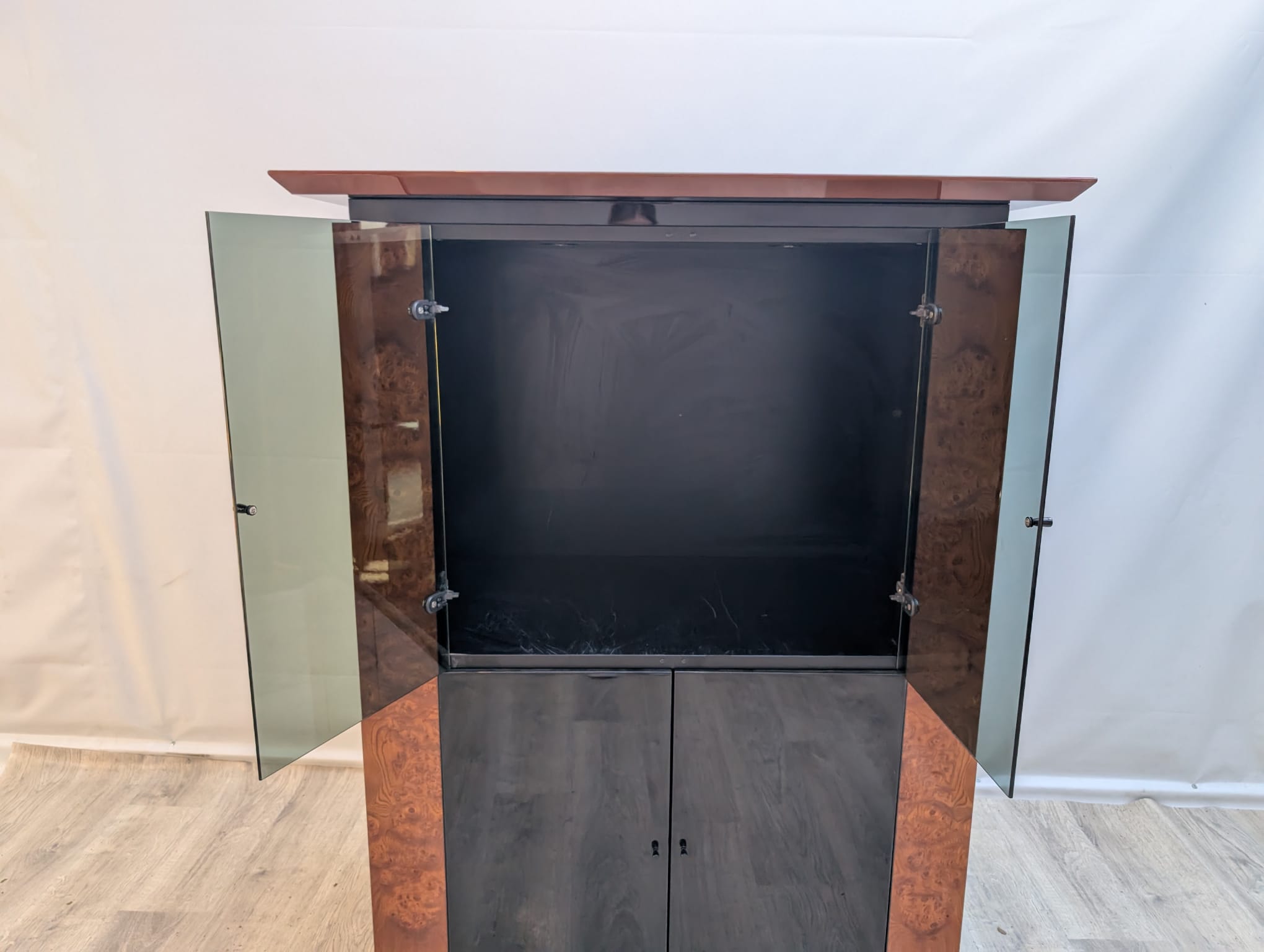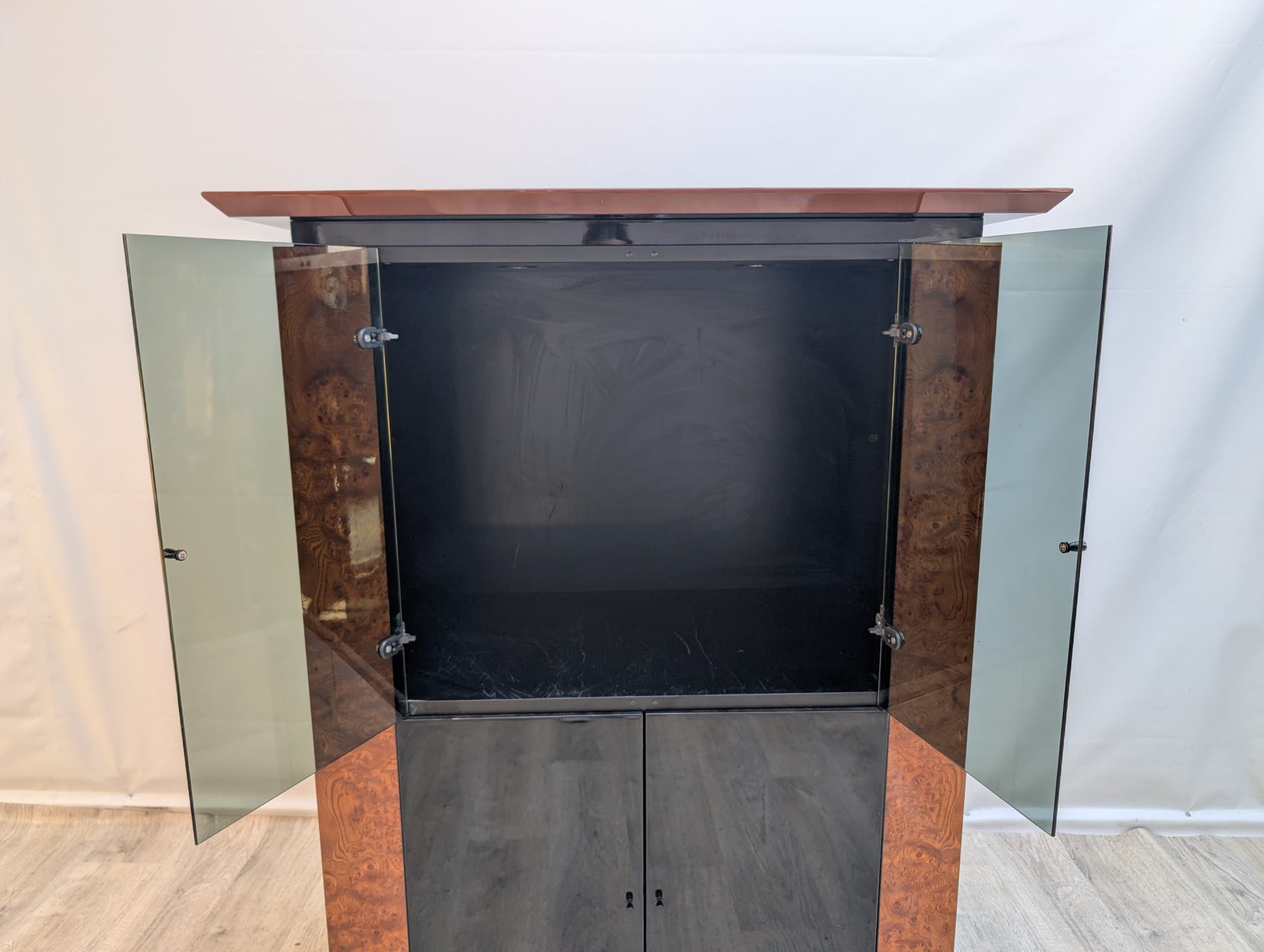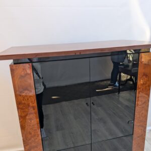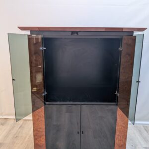 Lacquered wardrobe, glazing made of dark, smoked glass.