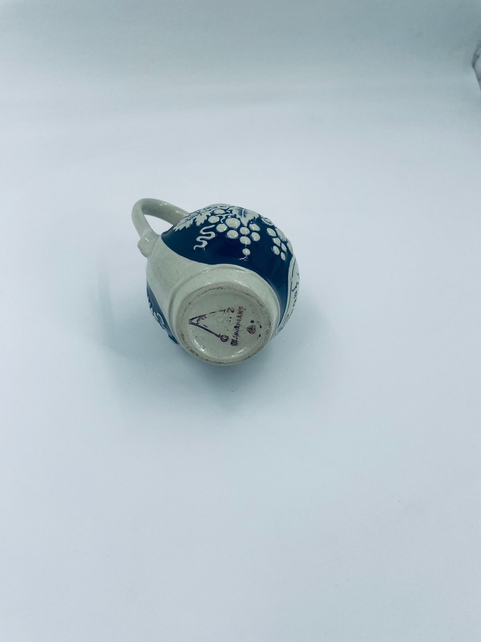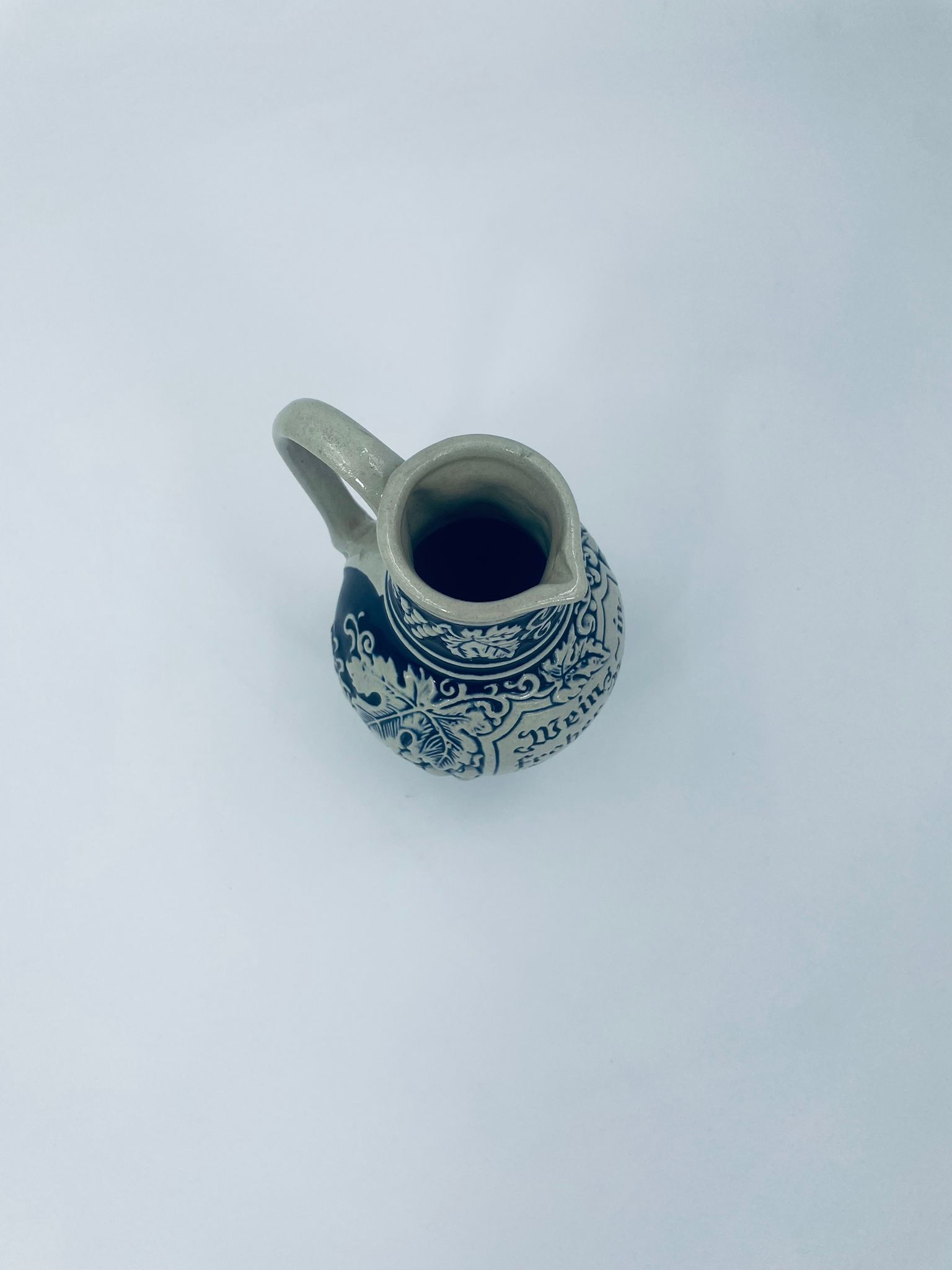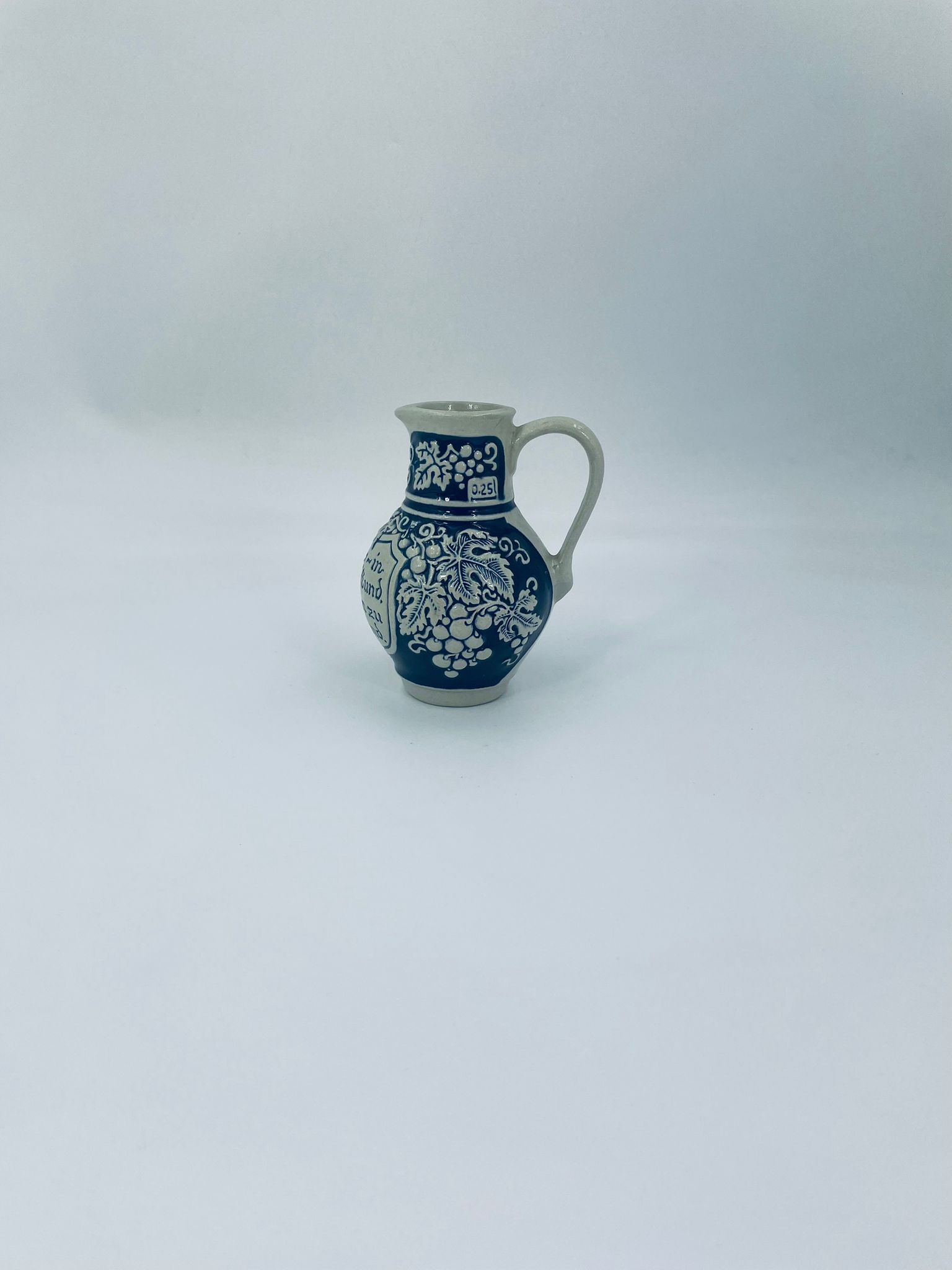 Jug by Gerz Grey Stoneware, made from ceramic with dominant grape and leaf motifs, finished in navy blue. Ideal for serving drinks, wine and as a collectible and decorative piece.