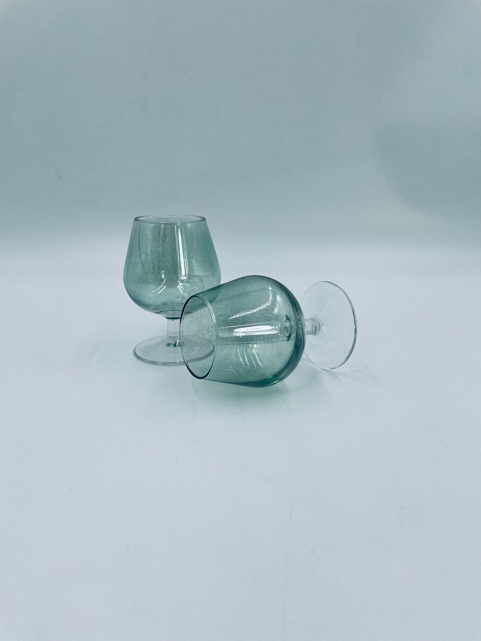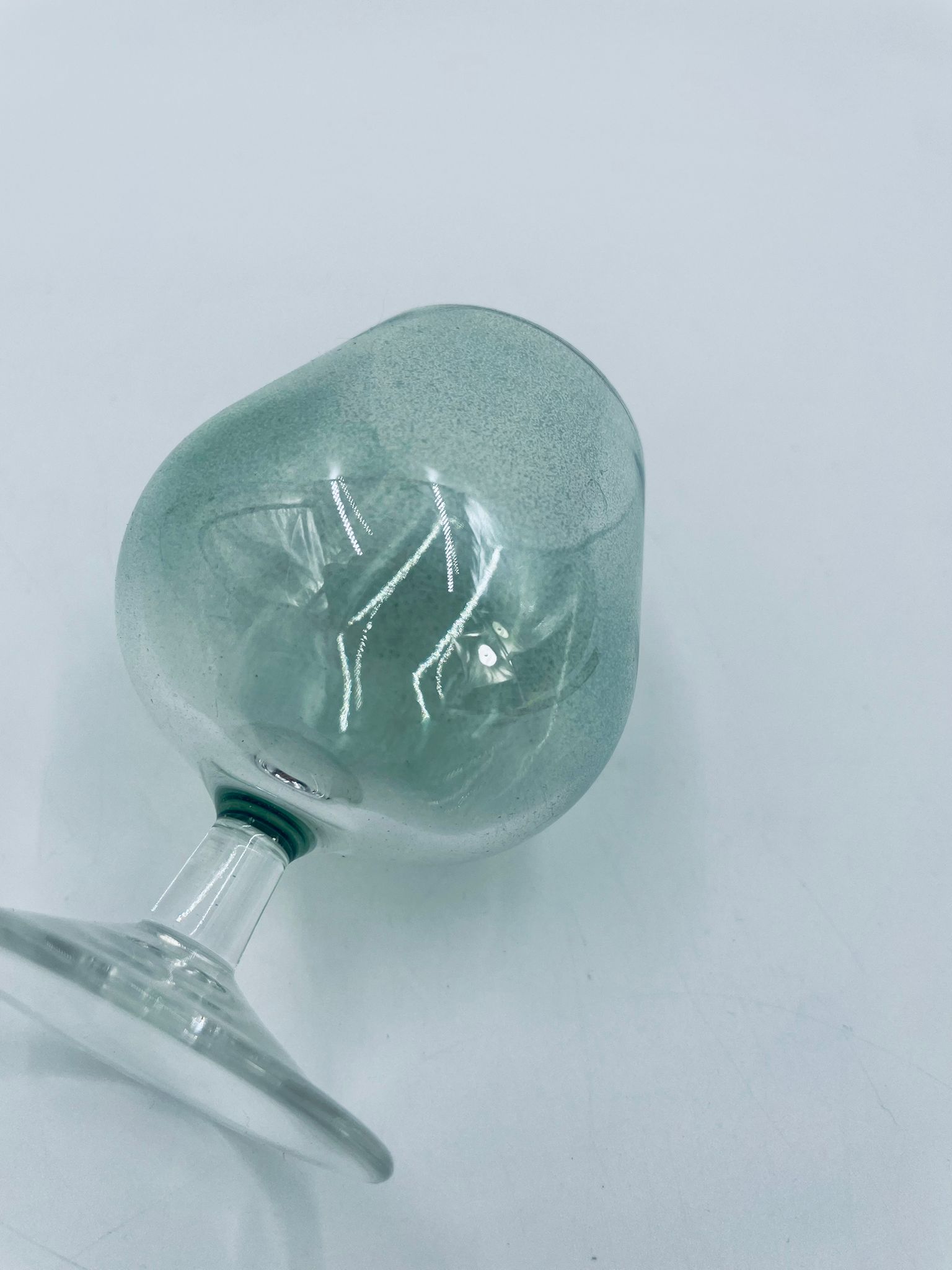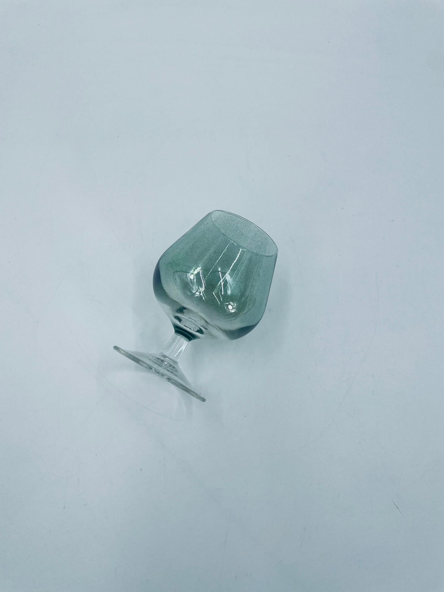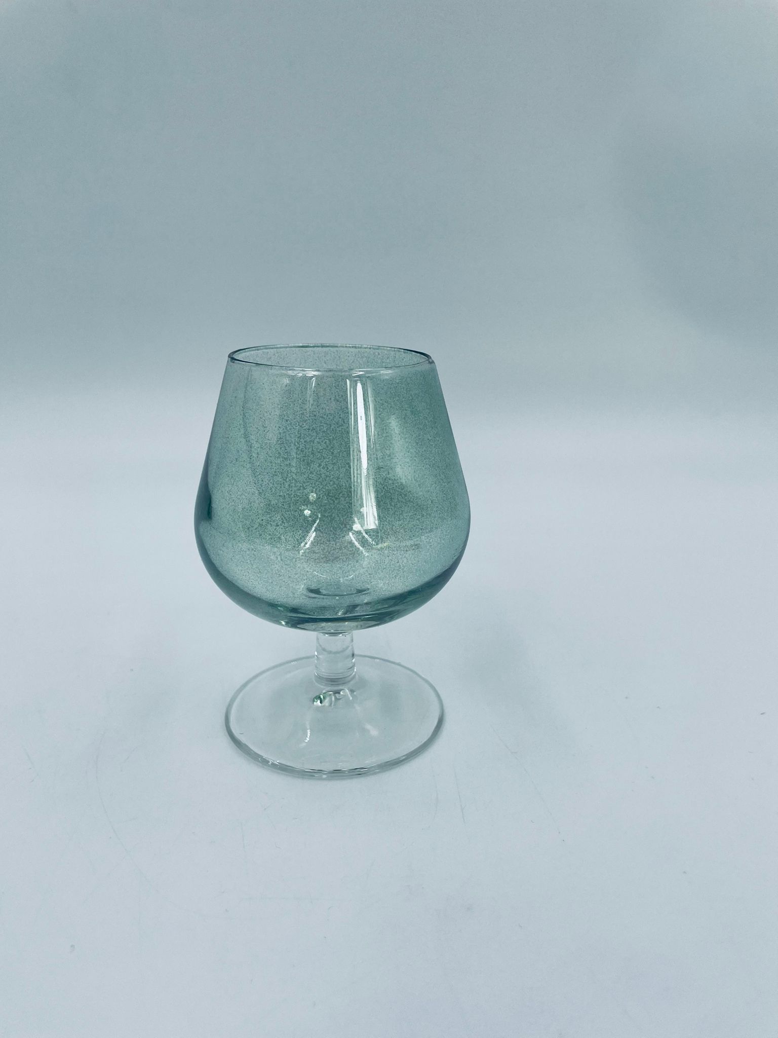 Kieliszek do koniaku, brandy w stylu Vintage, wykonany z wysokie jakości Francuskiego szkła opalizującego. Kieliszek posiada czarę z zielonym odcieniem, krótką nóżkę i stabilną podstawę.