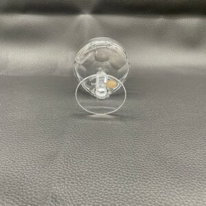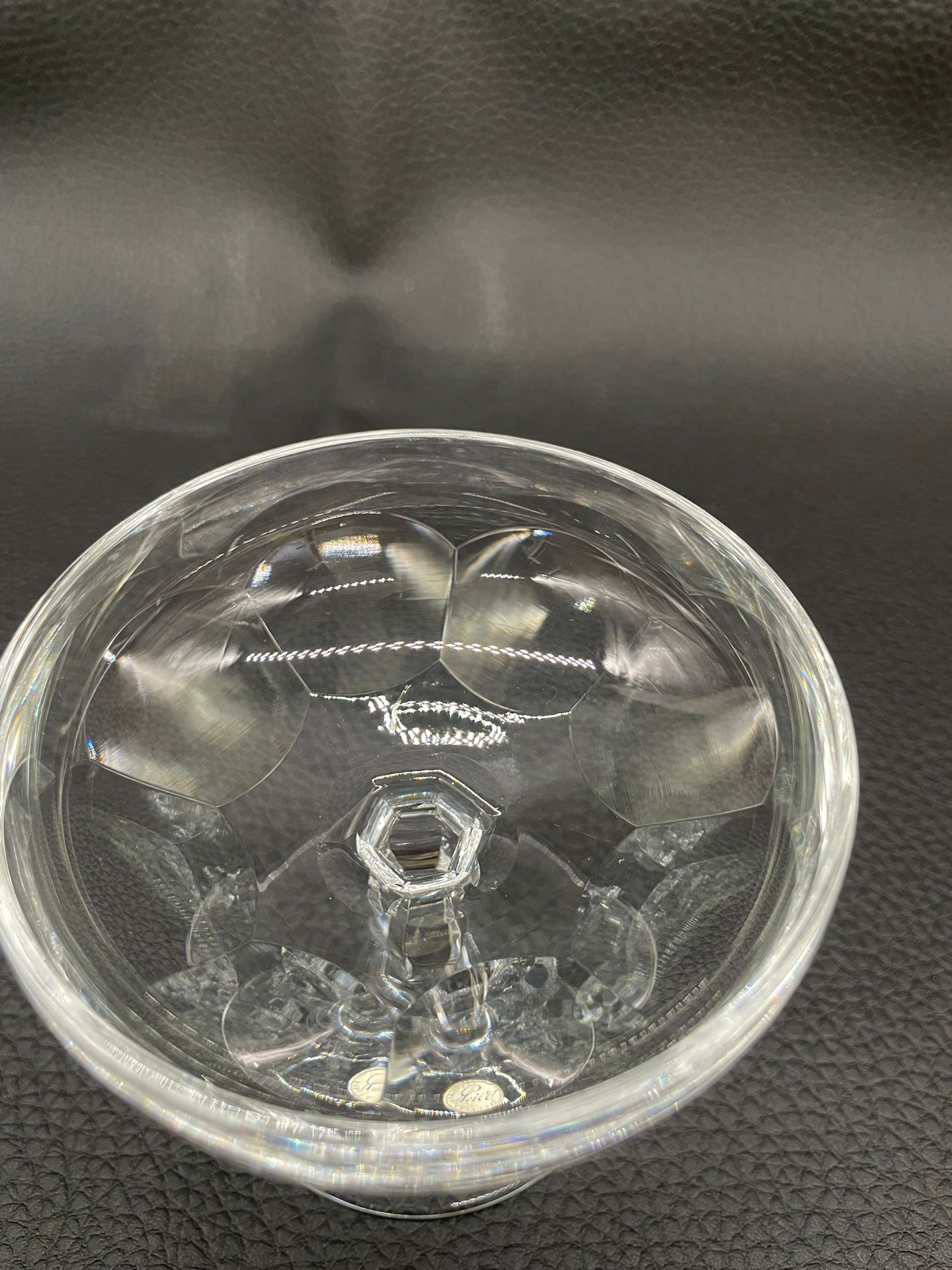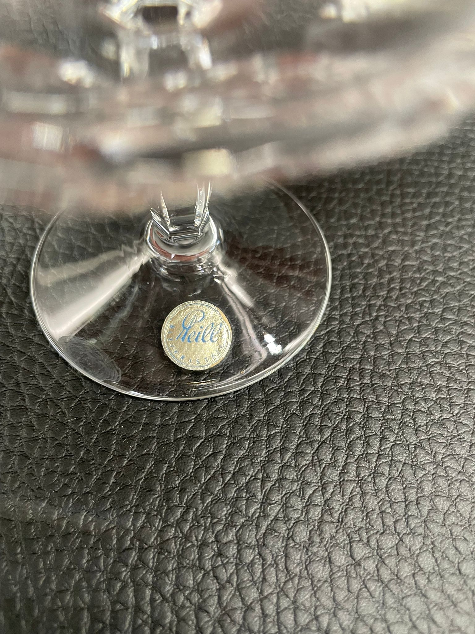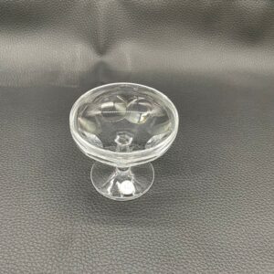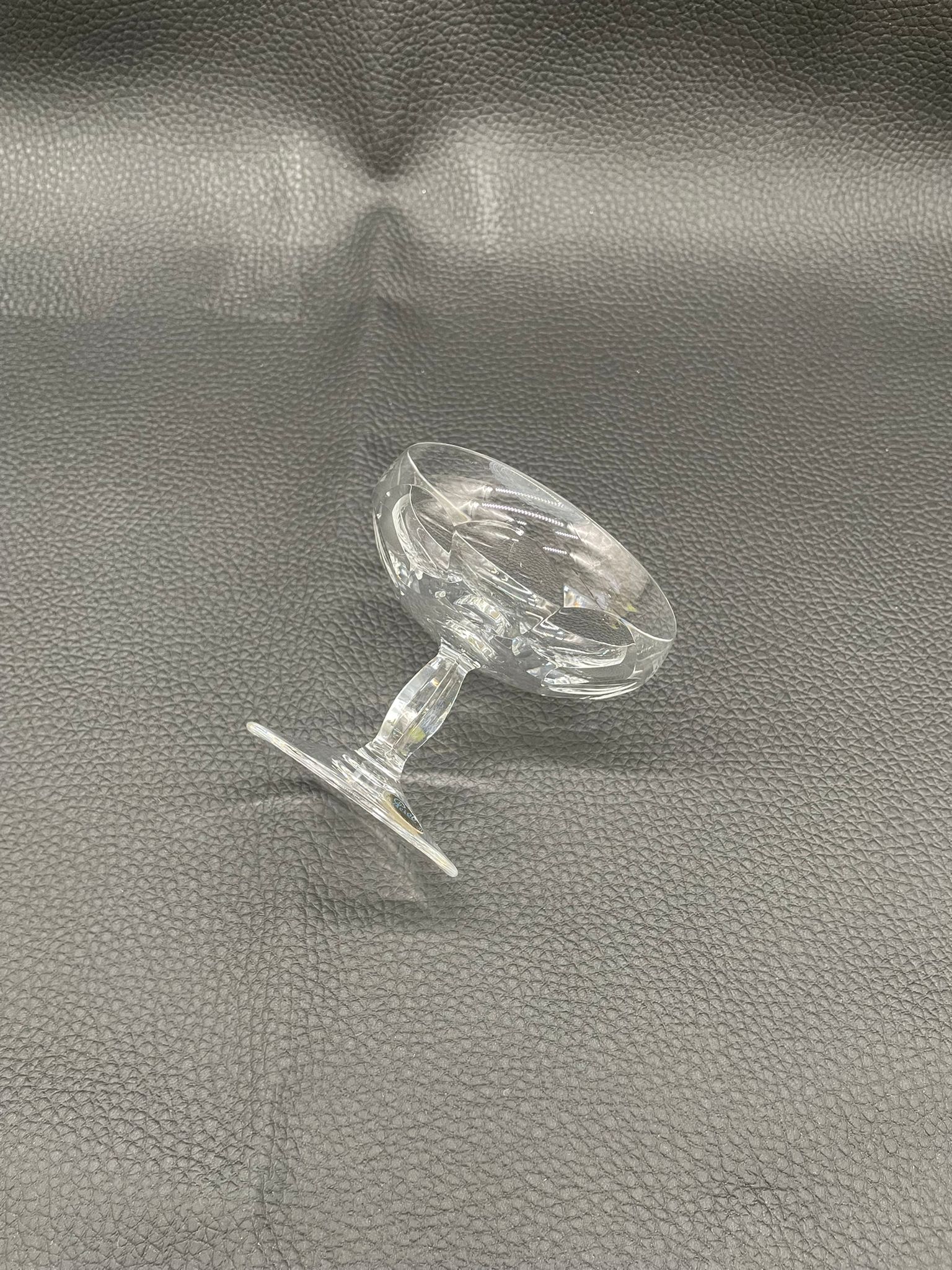 Kieliszek do szampana, likieru wyprodukowany przez Niemiecka hutę szkła Peill & Putzler z serii „Marion” z lat 70tych., wykonany z wysokiej jakości szkła kryształowego ołowiowego. Kieliszek charakteryzuje się ręcznie ciętą, przezroczystą, fasetowana , szeroką czarą typu coupé oraz ozdobną, fasetowana, smukłą nóżką z wyraźnym zgrubieniem po środku i stabilną podstawą.