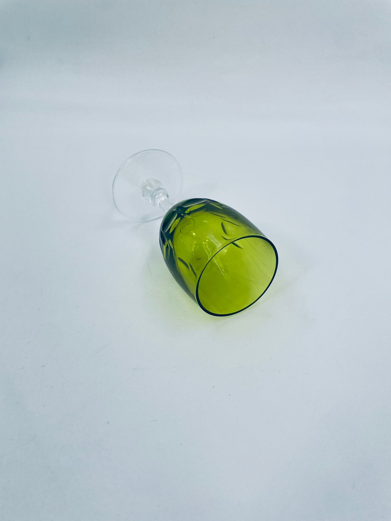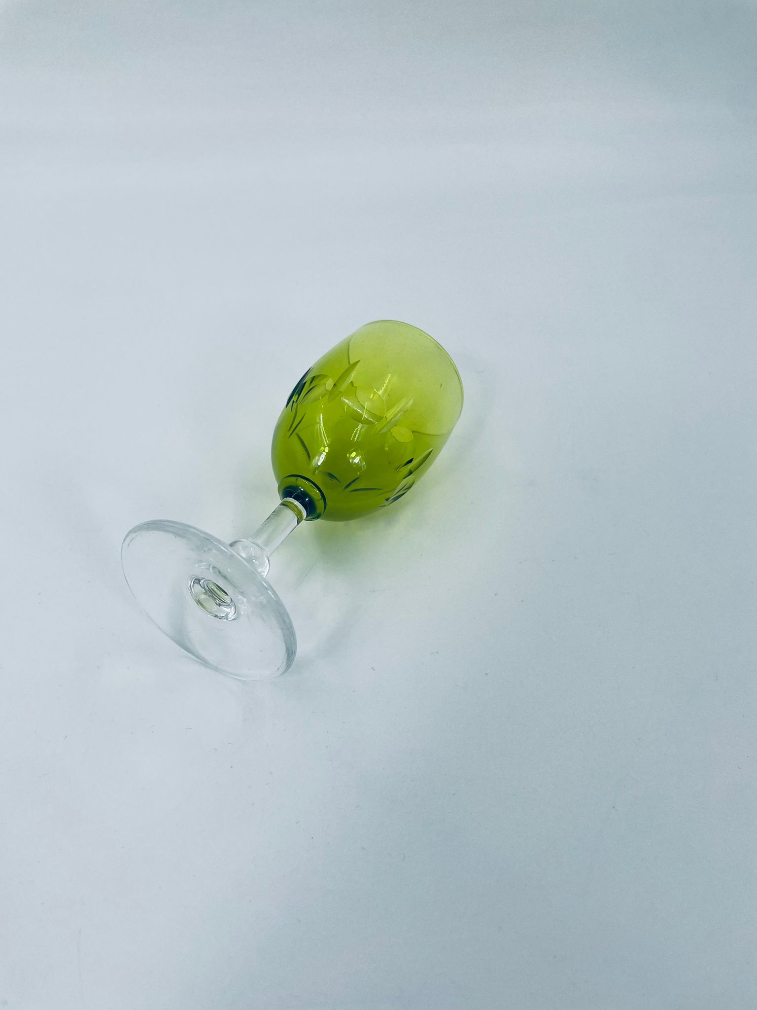 Kieliszek do nalewki w stylu Vintage, wykonany z wysokiej jakości szkła kryształowego. Kieliszek charakteryzuje się limonkowa czaszą z wytłoczonym wzorem, ozdobna przezroczysta nóżka i podstawa.