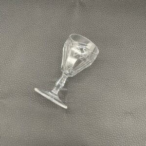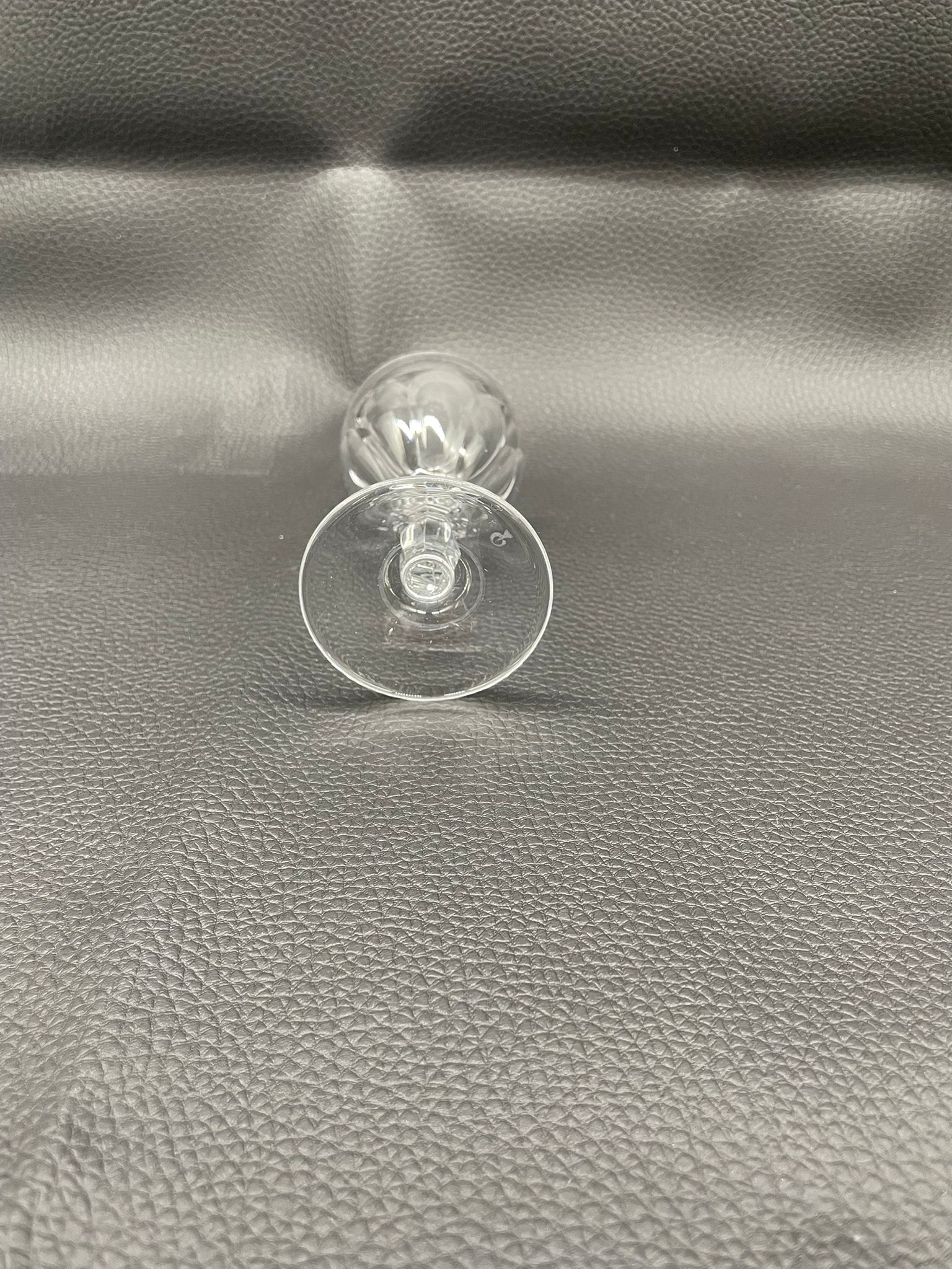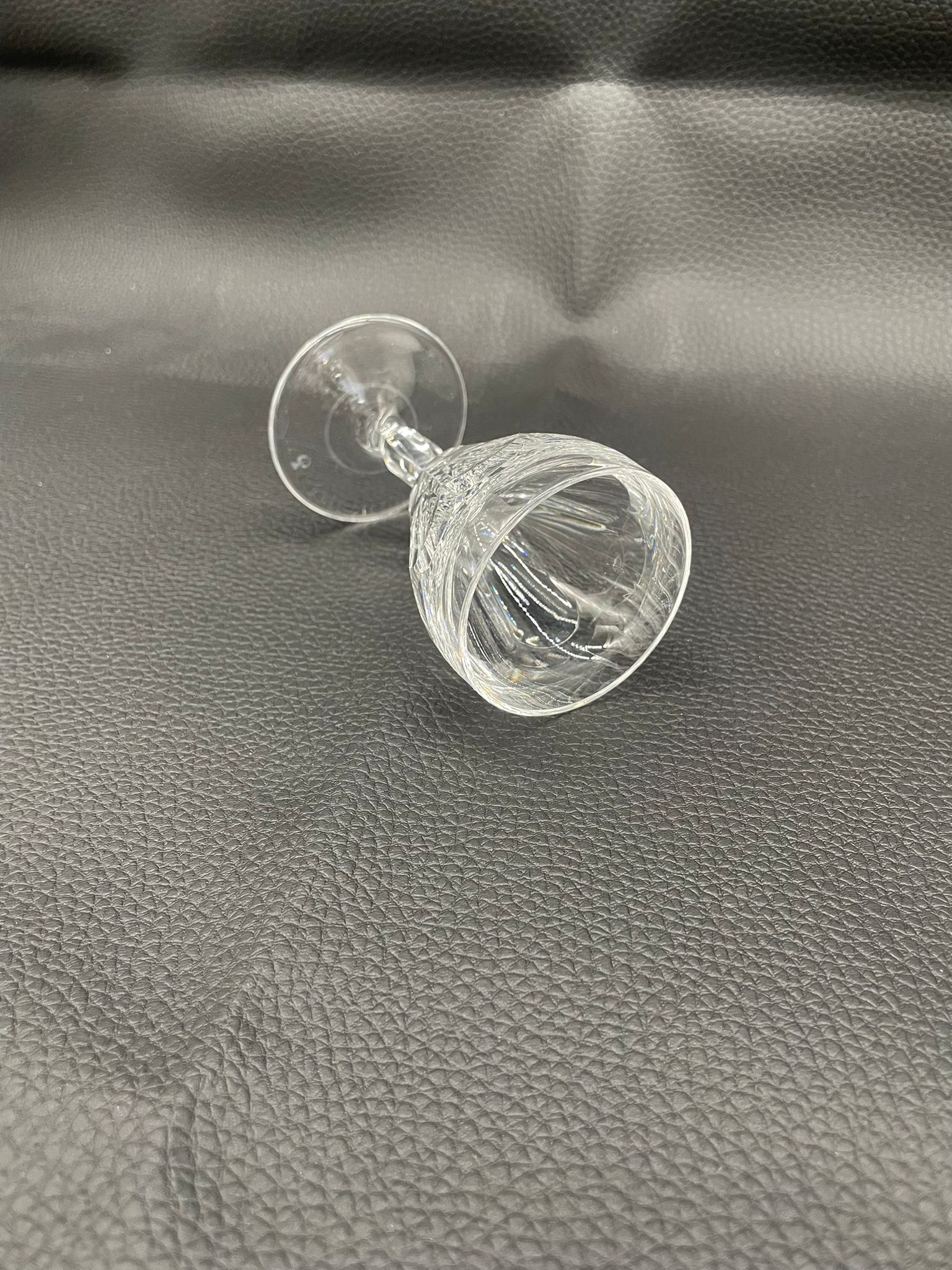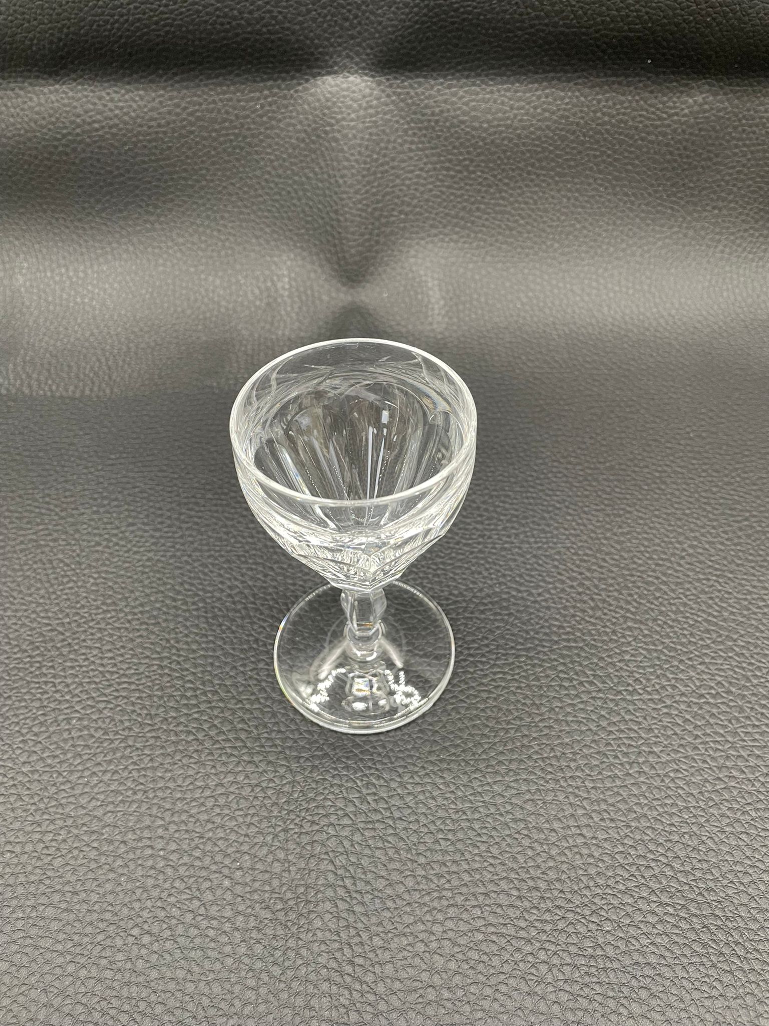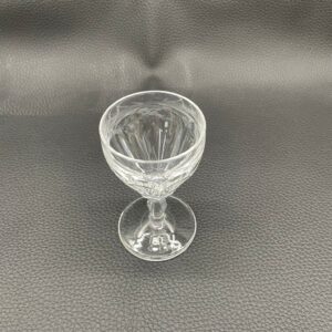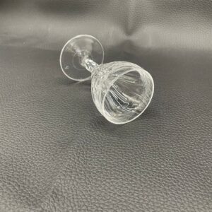 Kieliszek do wina wyprodukowany przez Niemiecka hutę szkła Peill & Putzler z serii „Marion” z lat 70tych., wykonany z wysokiej jakości szkła kryształowego ołowiowego. Kieliszek charakteryzuje się ręcznie ciętą, przezroczystą, fasetowana czarą oraz ozdobną, fasetowana, smukłą nóżką z wyraźnym zgrubieniem po środku i stabilną podstawą.