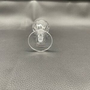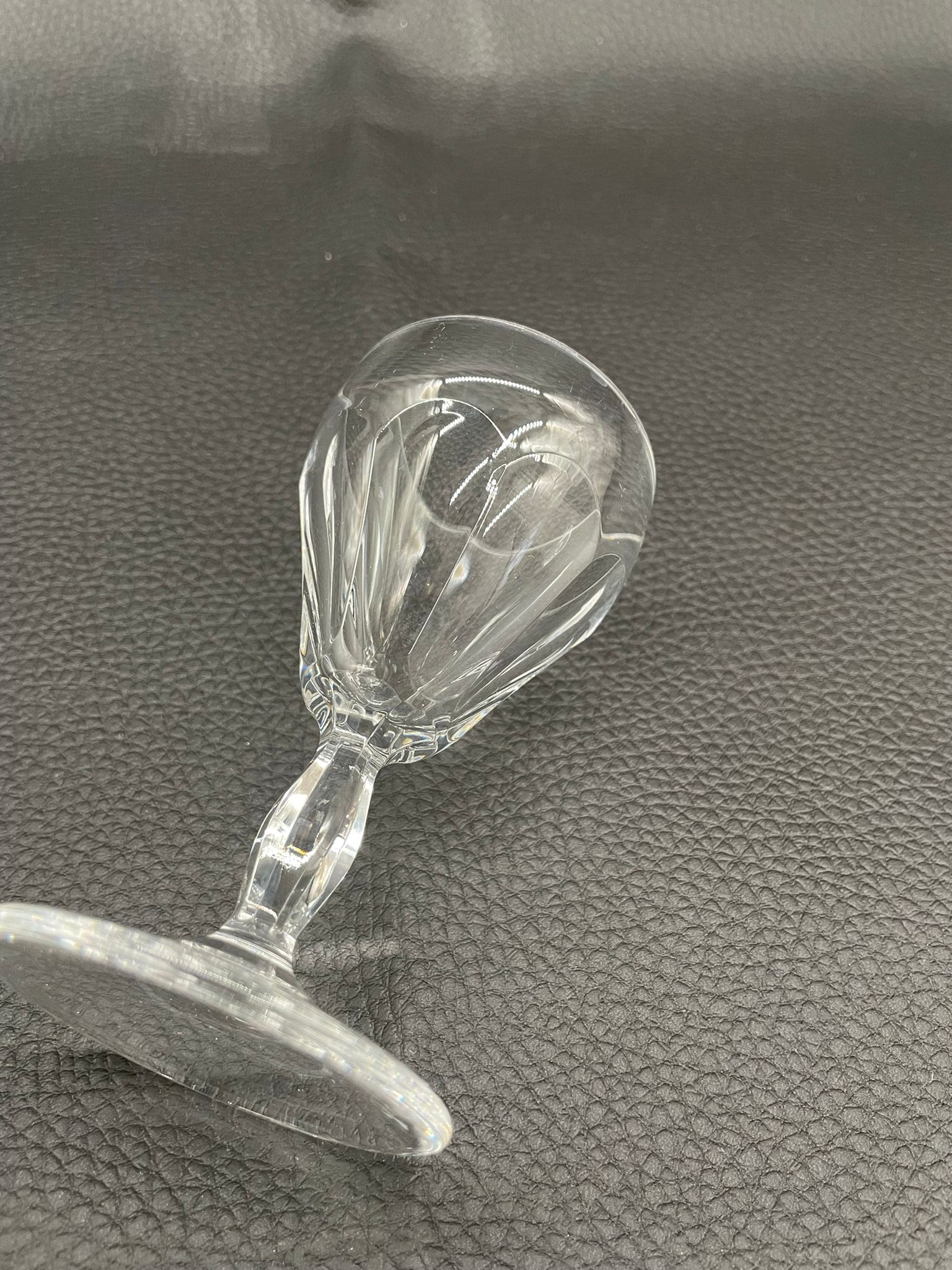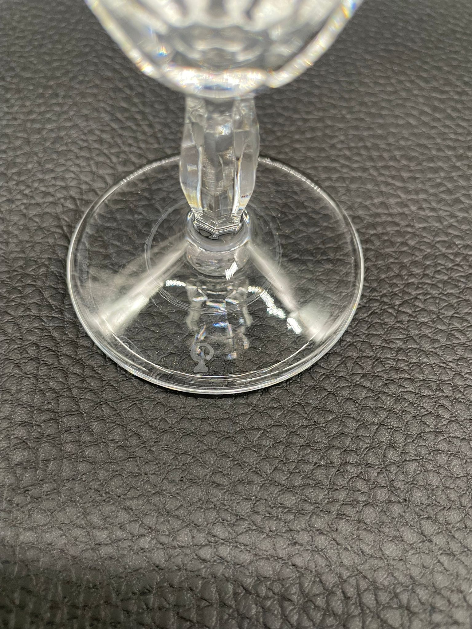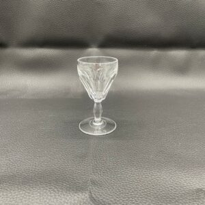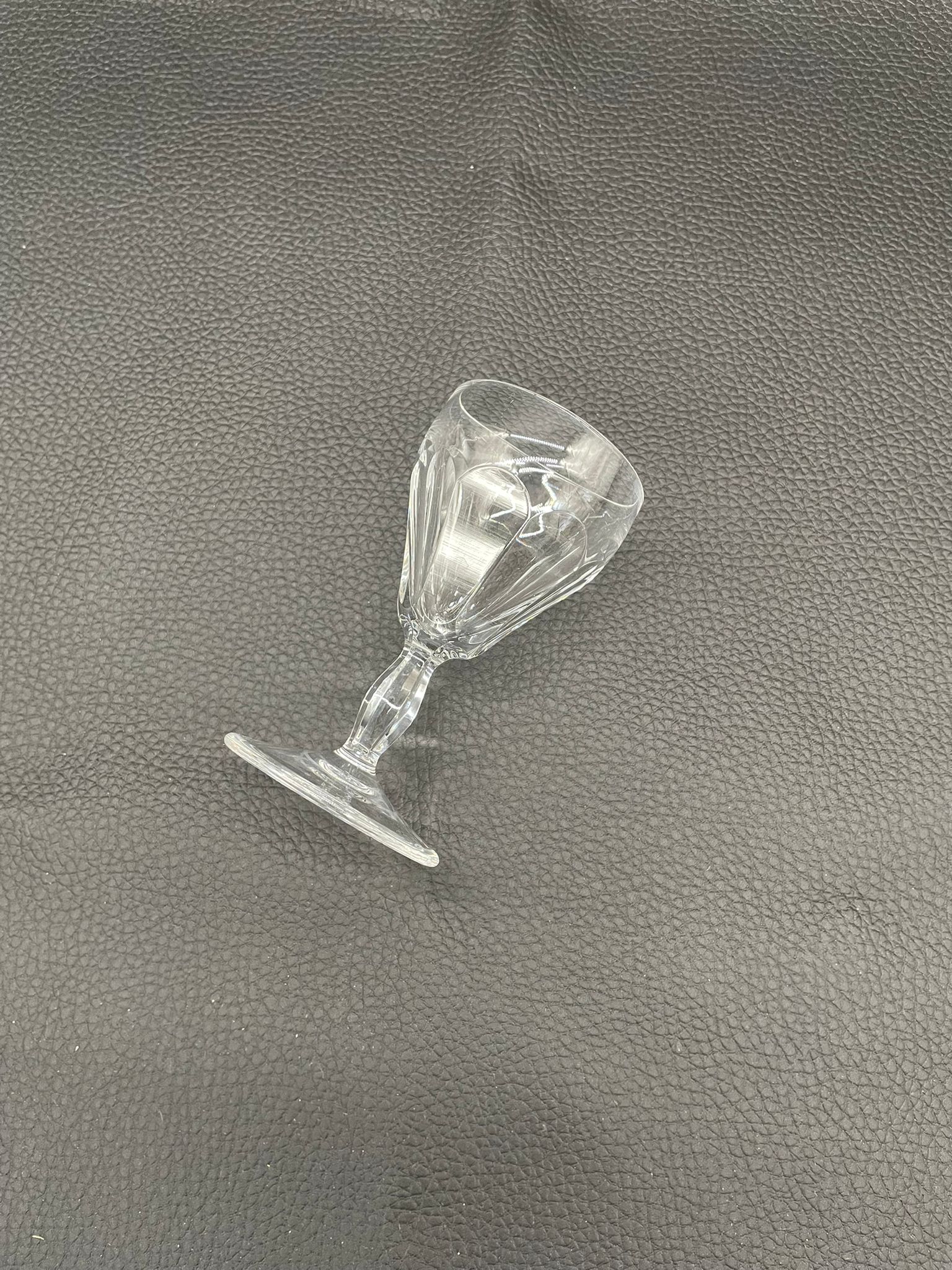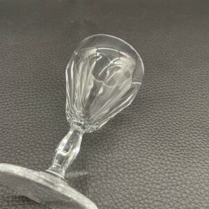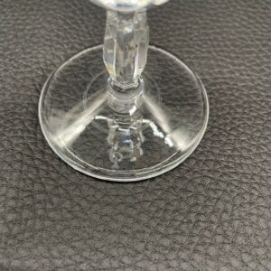 Kieliszek do wina wyprodukowany przez Niemiecka hutę szkła Peill & Putzler z serii „Marion” z lat 70tych., wykonany z wysokiej jakości szkła kryształowego ołowiowego. Kieliszek charakteryzuje się ręcznie ciętą, przezroczystą, fasetowana czarą oraz ozdobną, fasetowana, smukłą nóżką z wyraźnym zgrubieniem po środku i stabilną podstawą.
