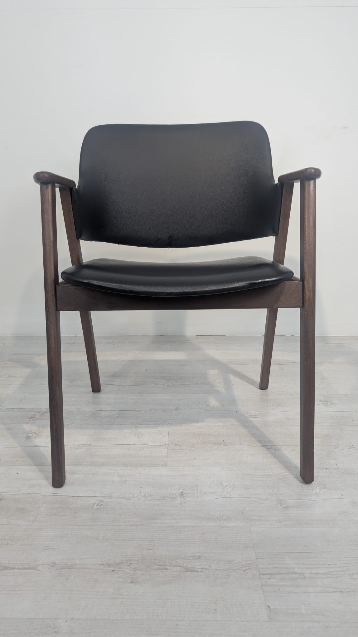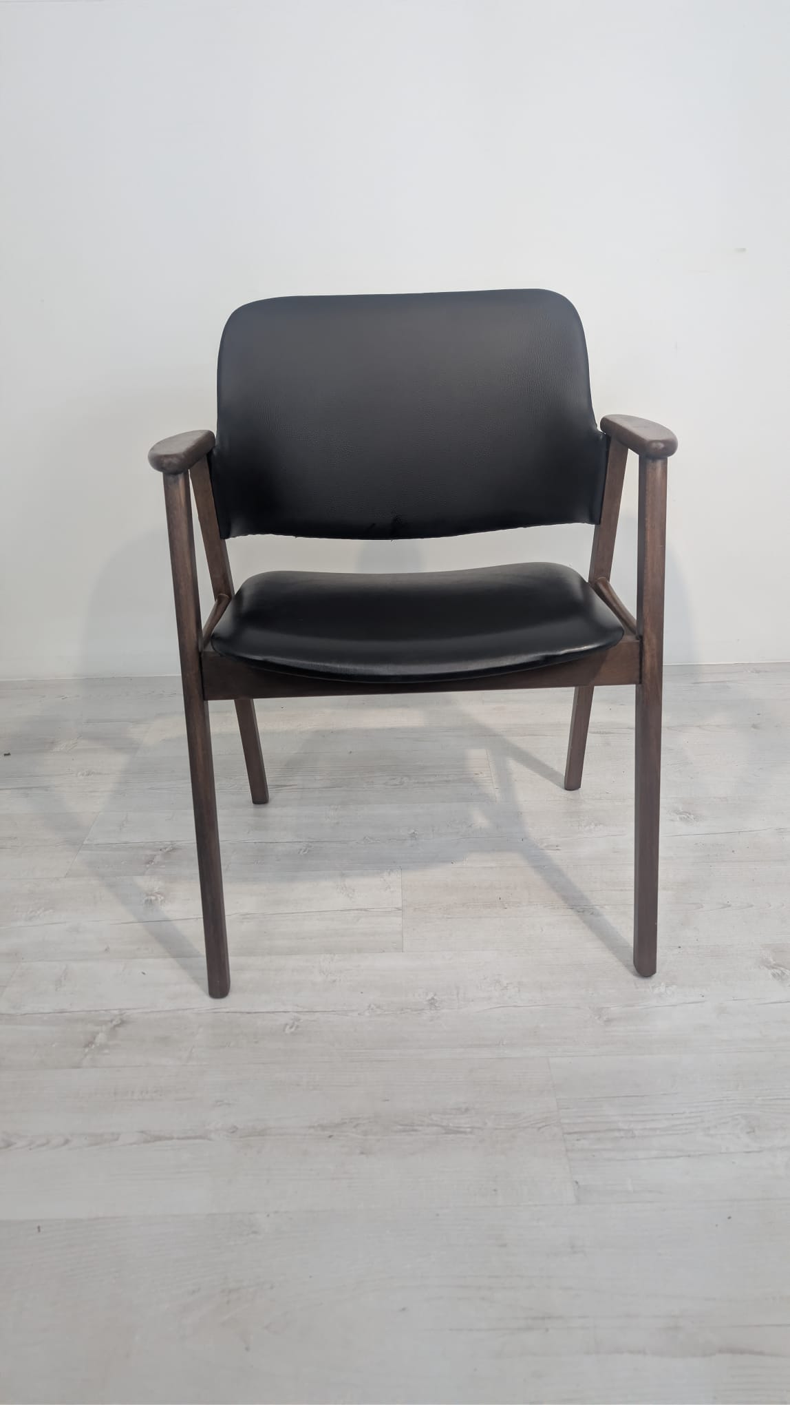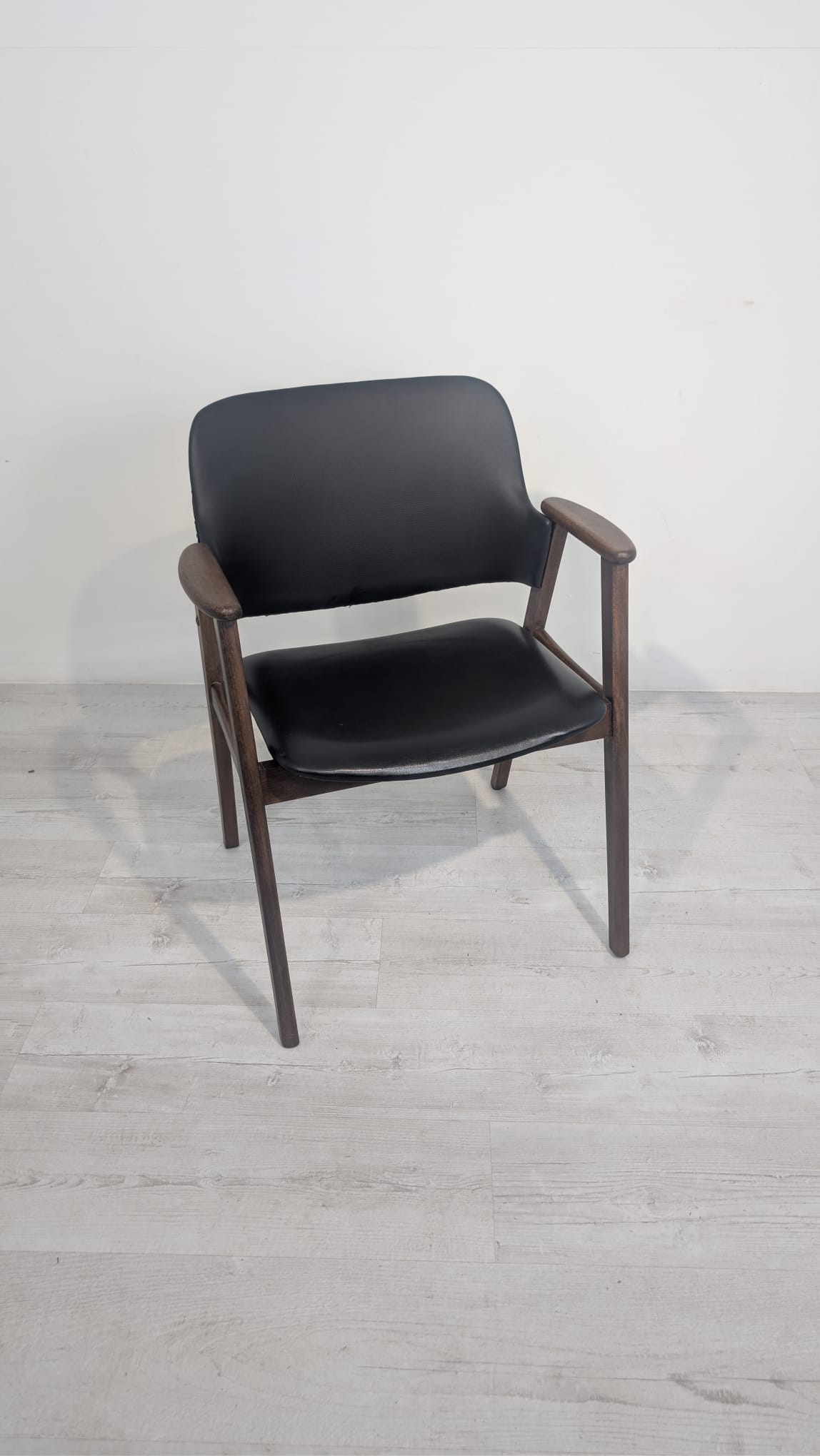 Stylowy fotel biurowy z lat 50. XX wieku, zaprojektowany przez C. Braakmana. Wykonany z drewna tekowego, posiada czarną tapicerkę. Mebel w dobrym stanie, idealny jako dodatek do nowoczesnego wnętrza.