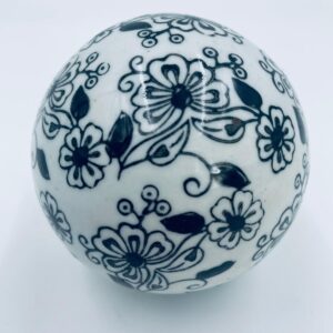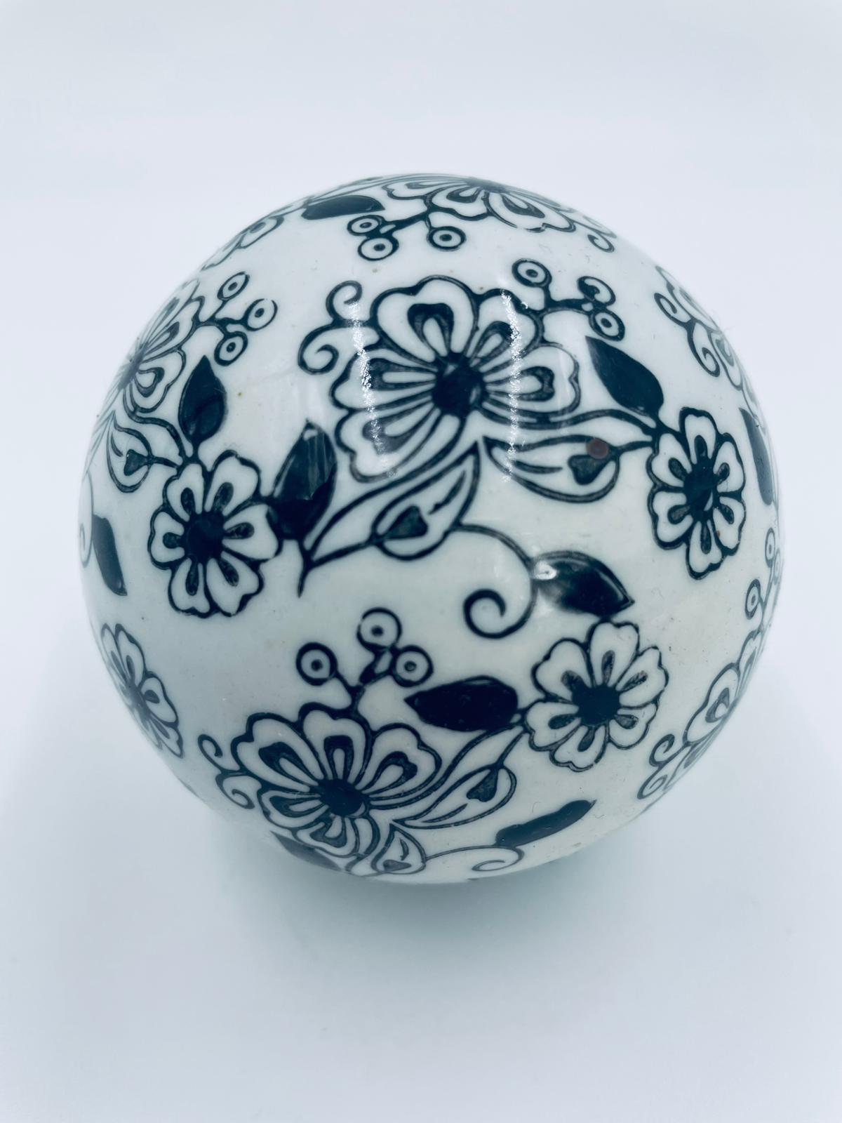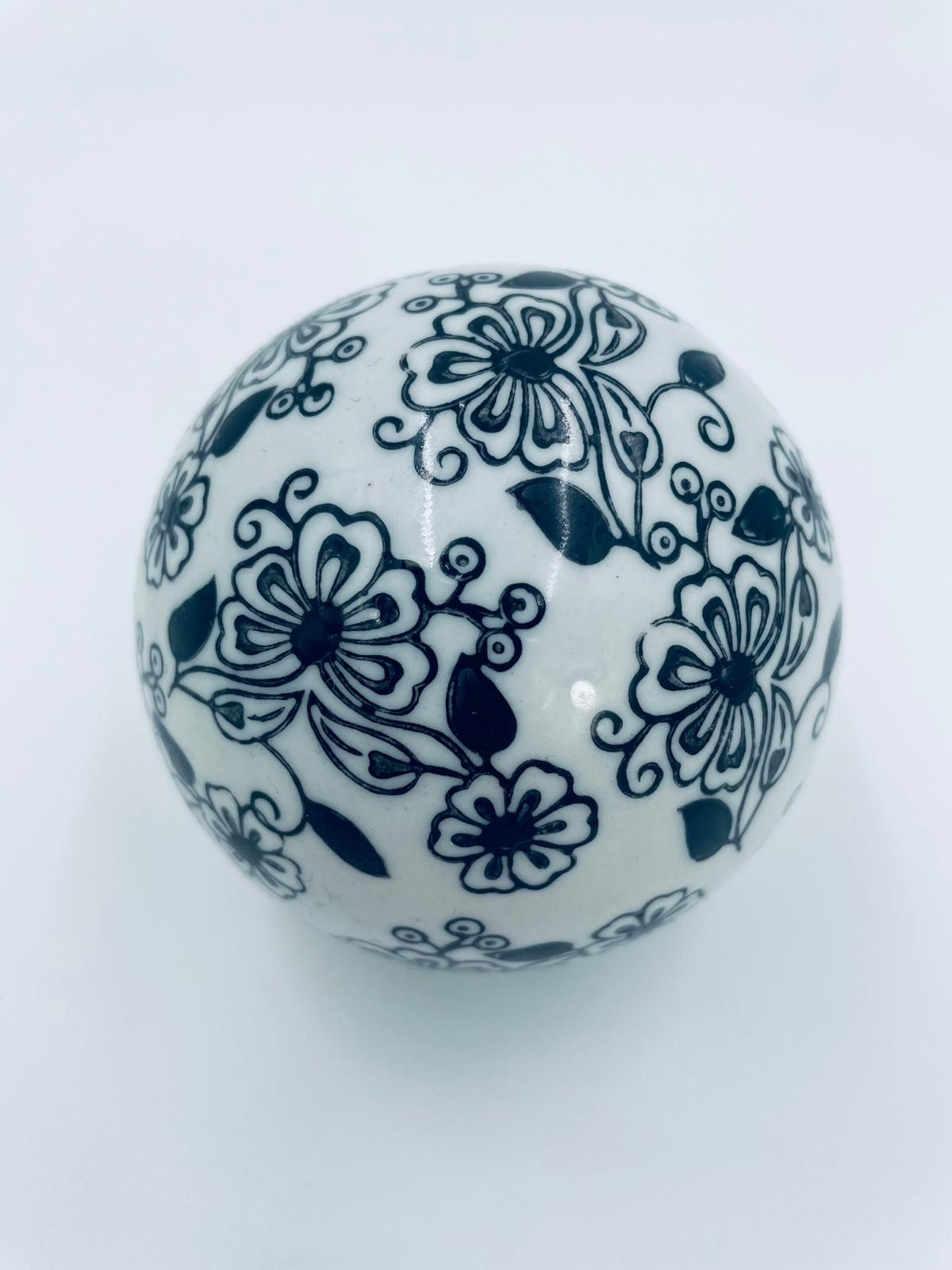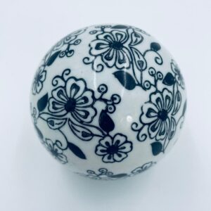 Kula dekoracyjna, dywanowa, przycisk do papieru w stylu Vintage, wykonana z porcelany. Kula dekorowana ręcznie malowanym wzorem kwiatowy w czarnym kolorze.