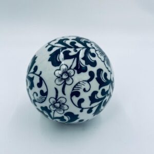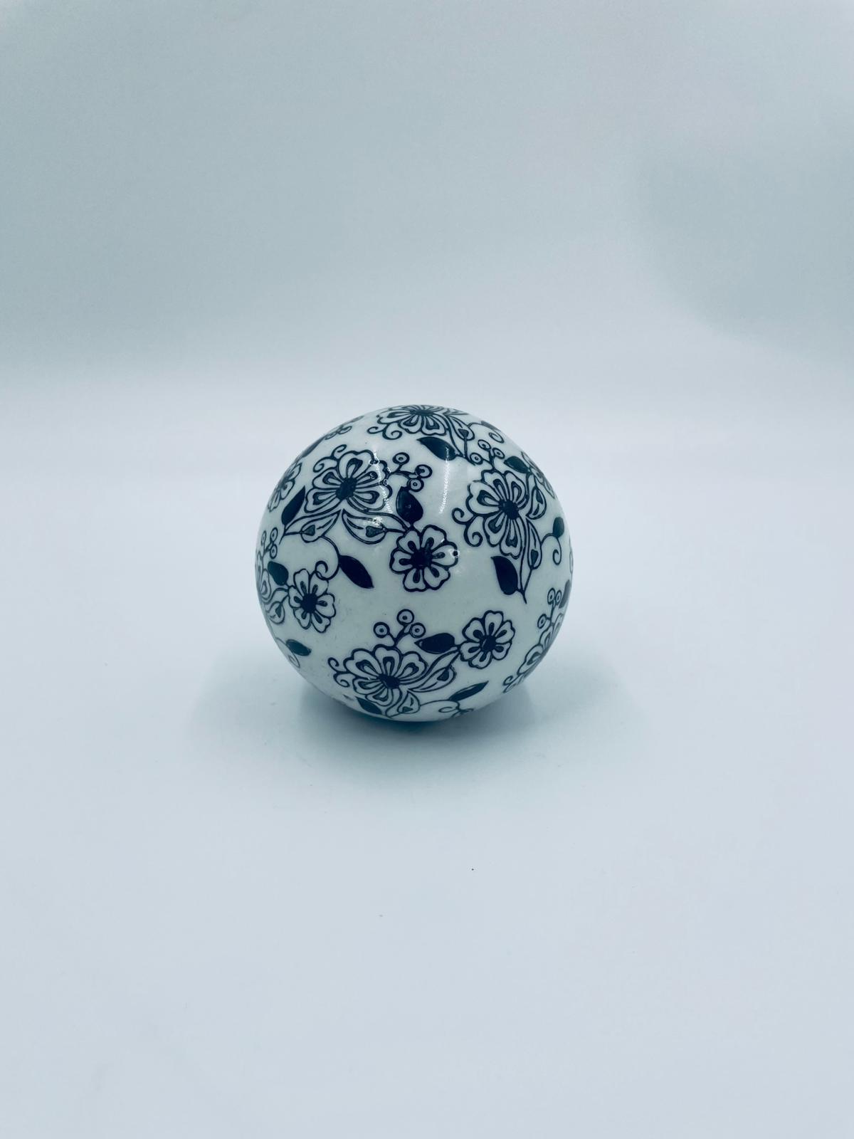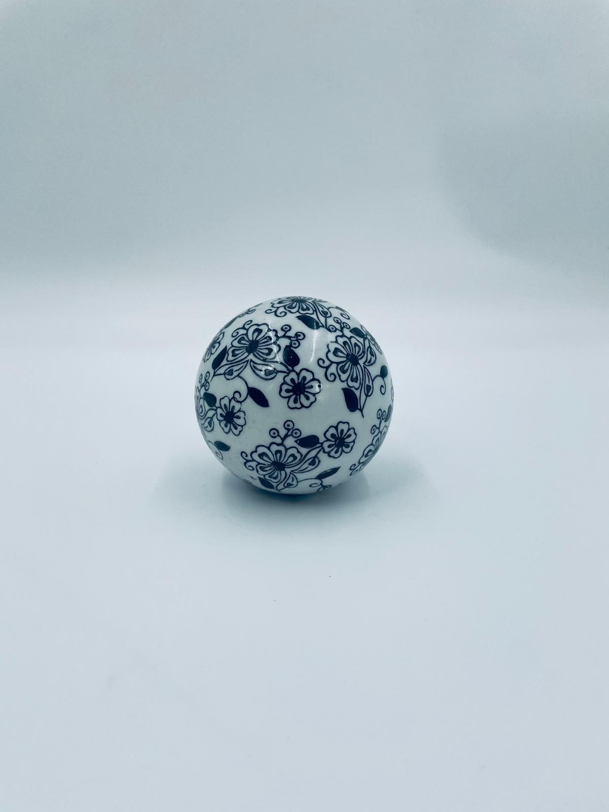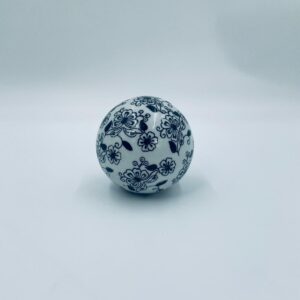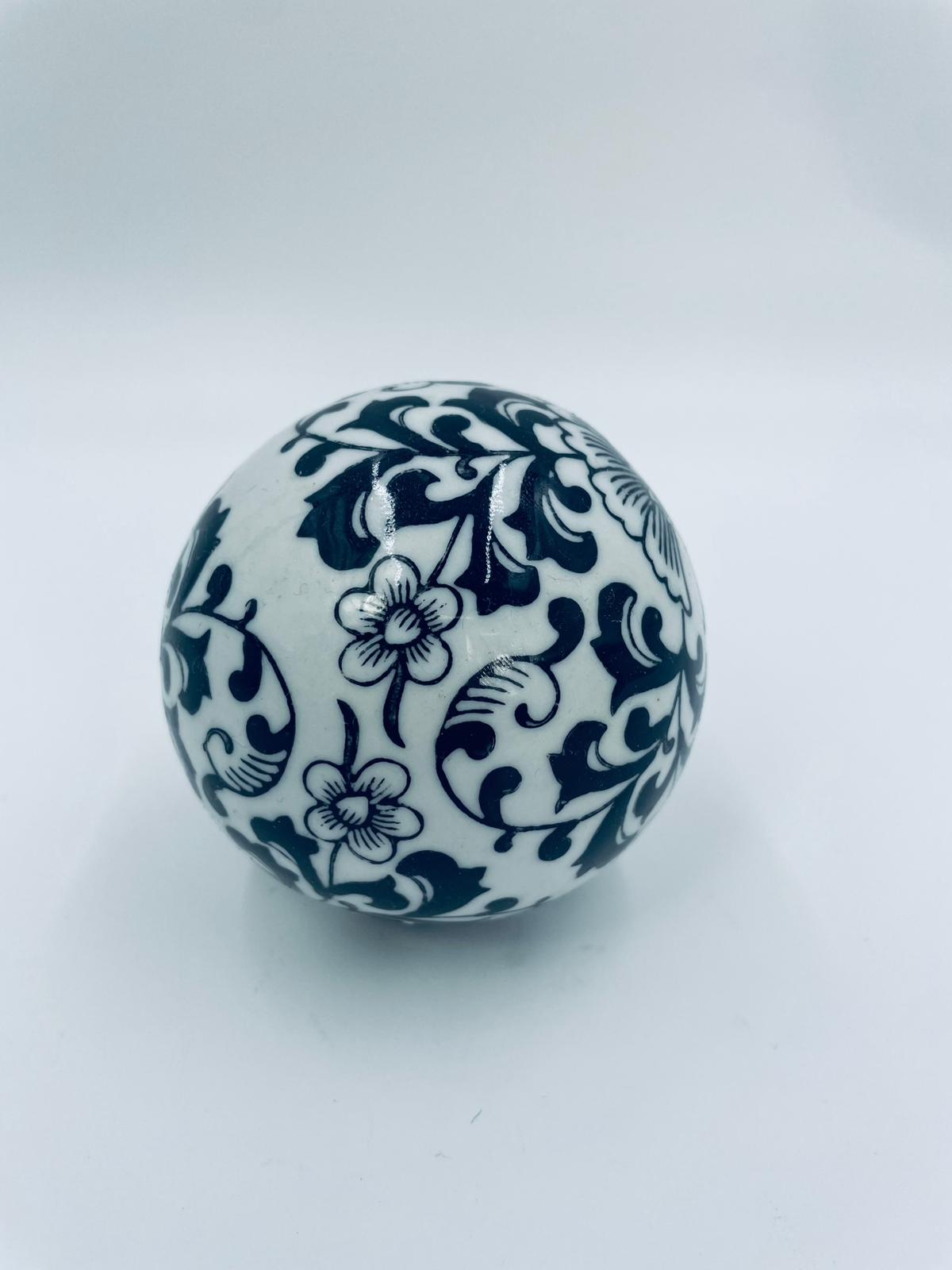 Kula dekoracyjna, dywanowa, przycisk do papieru w stylu Vintage, wykonana z porcelany. Kula dekorowana ręcznie malowanym wzorem kwiatowy w czarnym kolorze.
