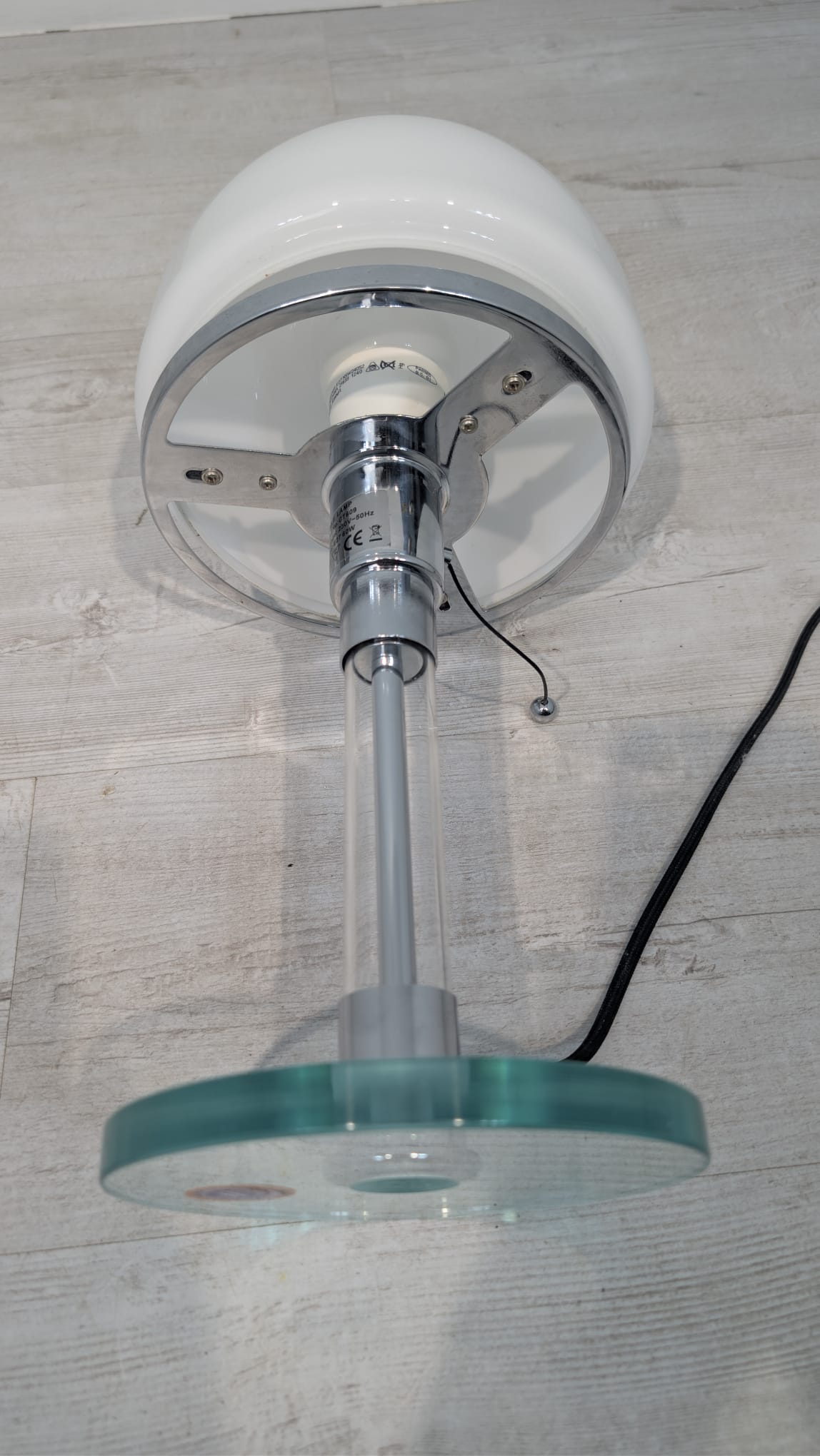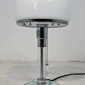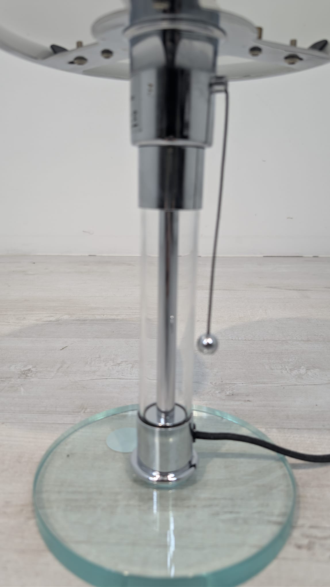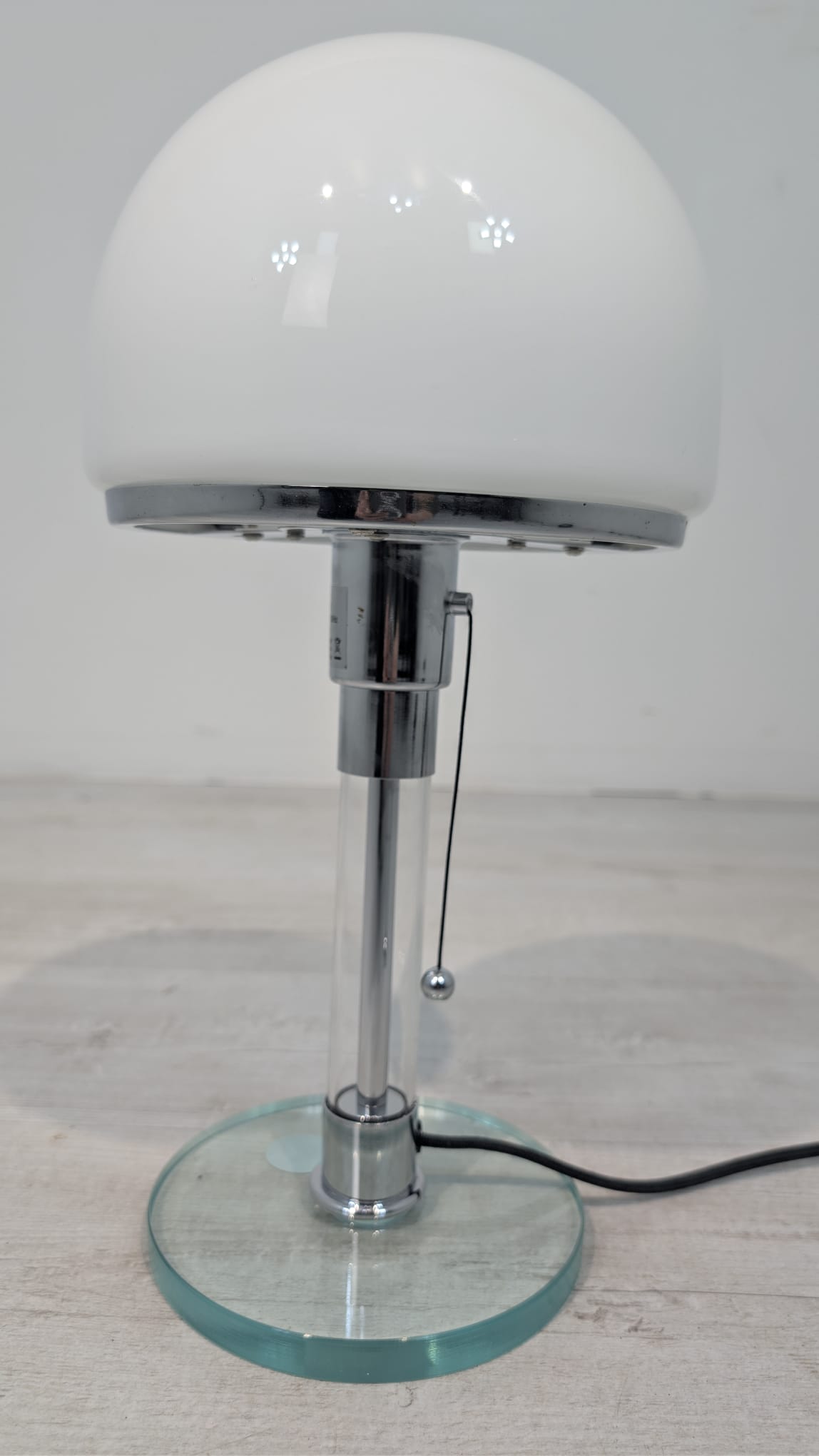 Lampa stołowa Bauhaus WG24 proj. Wilhelma Wagenfelda z lat 70. XX wieku. Elegancka, klasyczna forma w stylu Bauhausu, wykonana z metalu i szkła. Produkt vintage, zachowany w dobrym stanie.