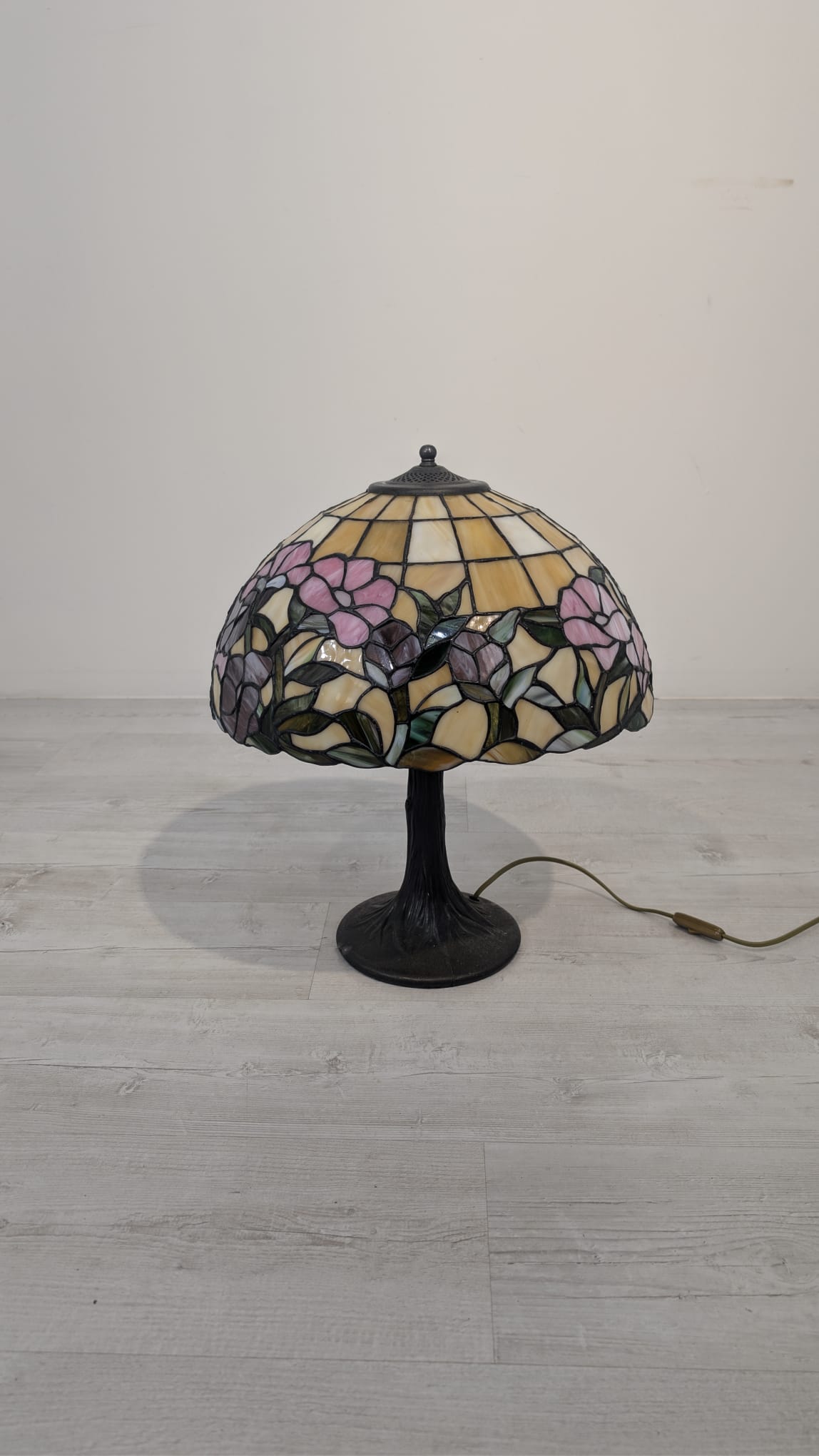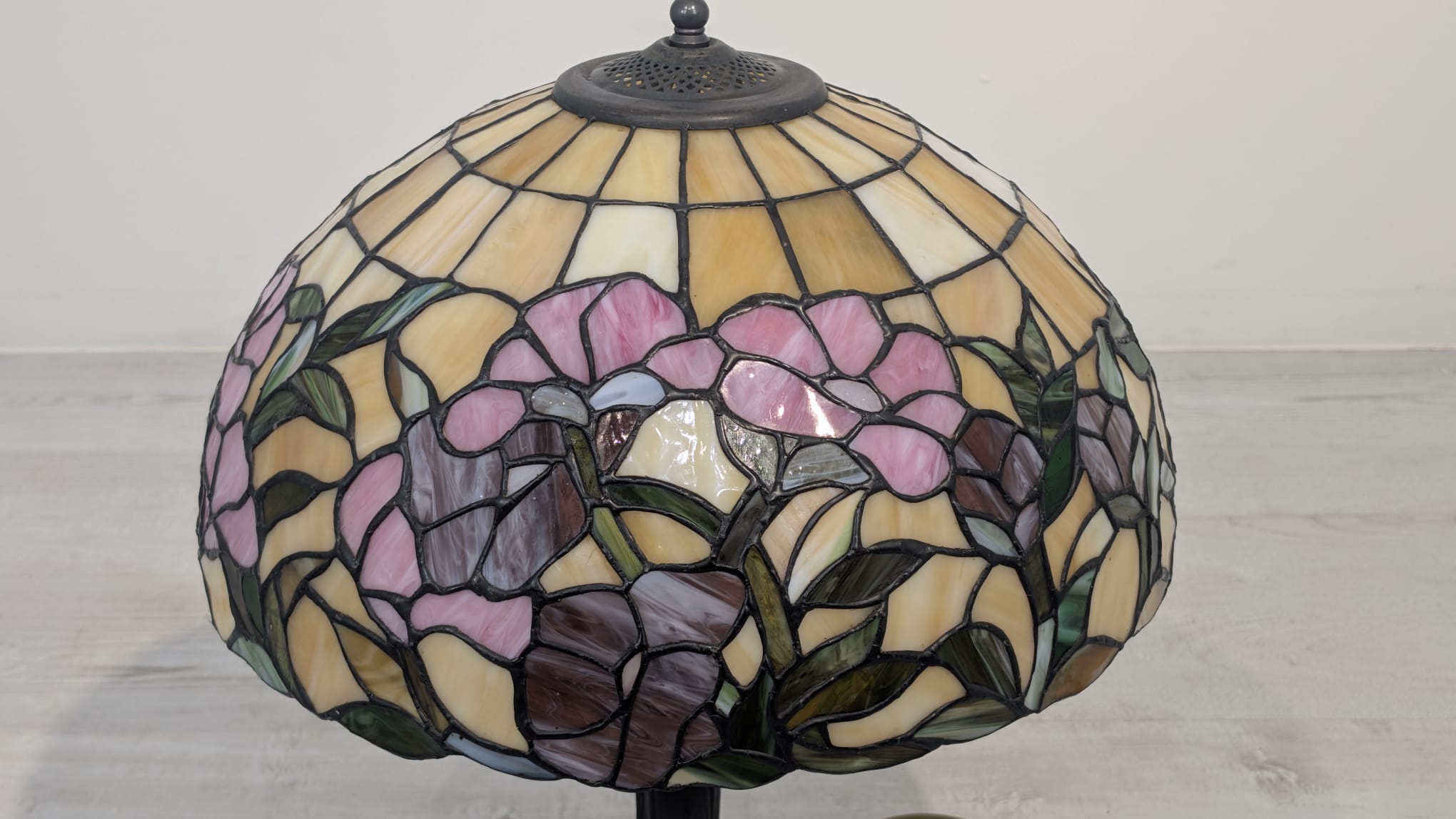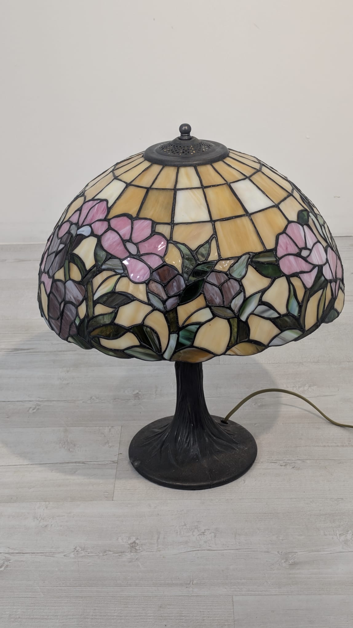 Tiffany-style stained glass table lamp with floral design