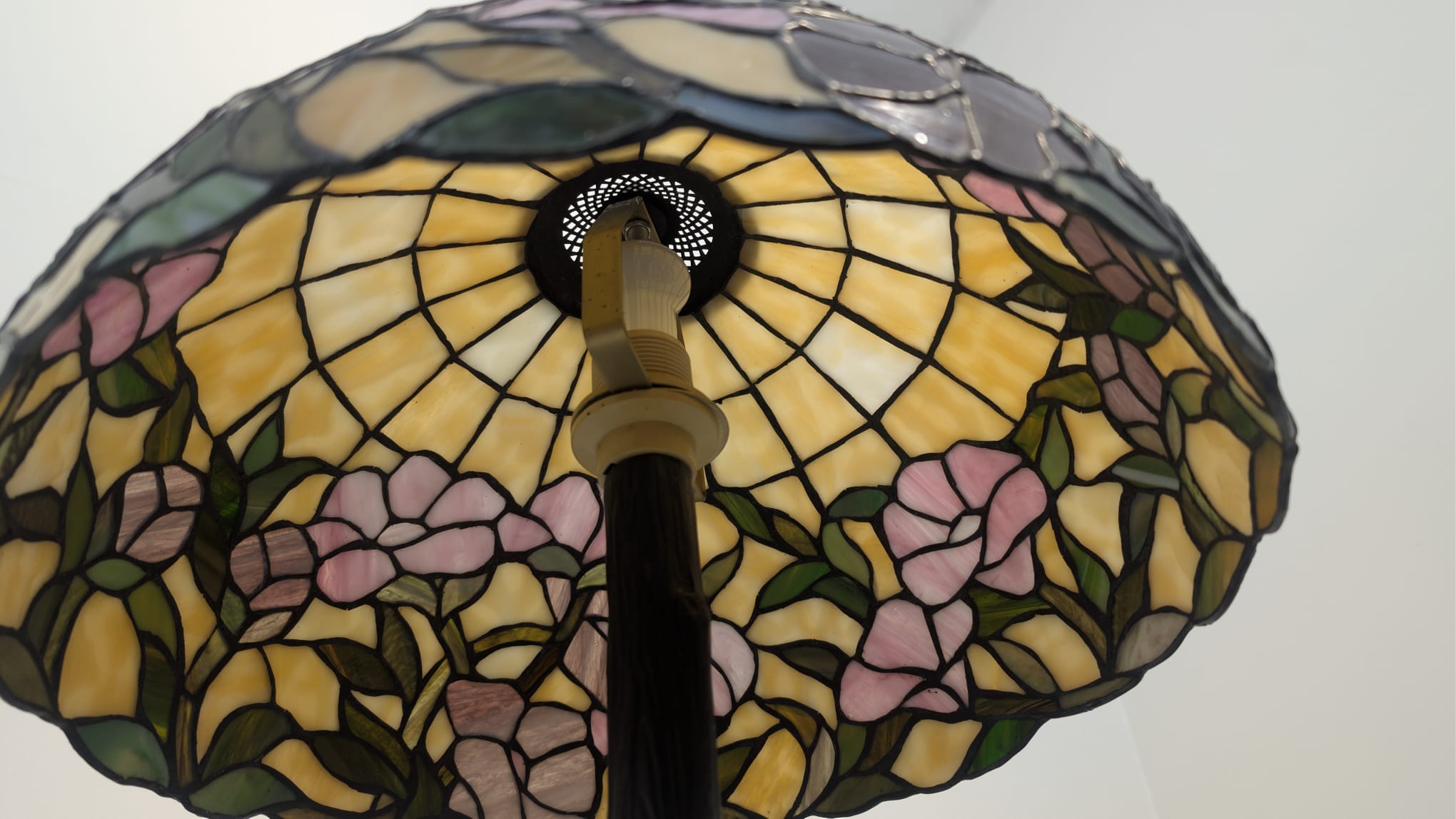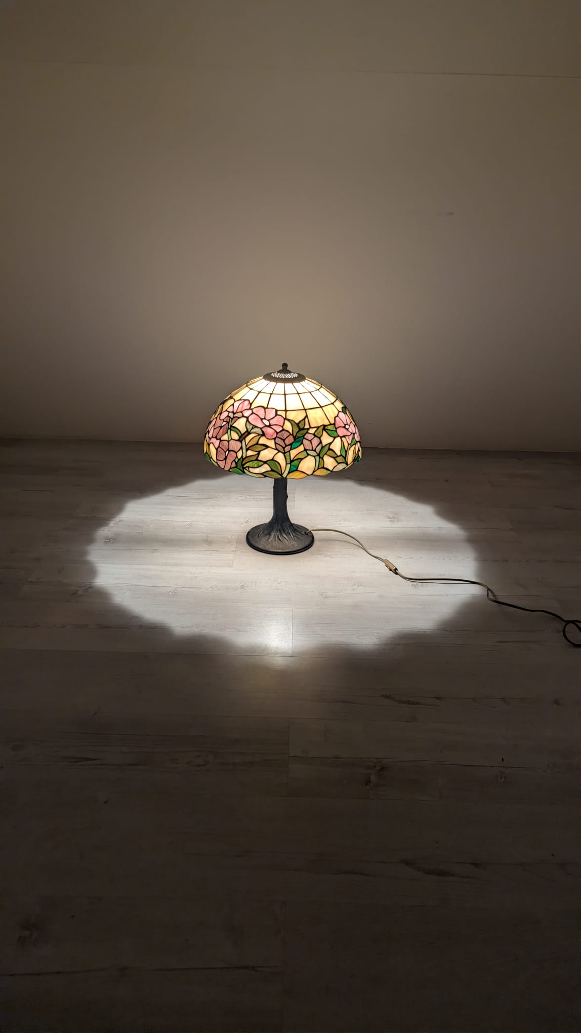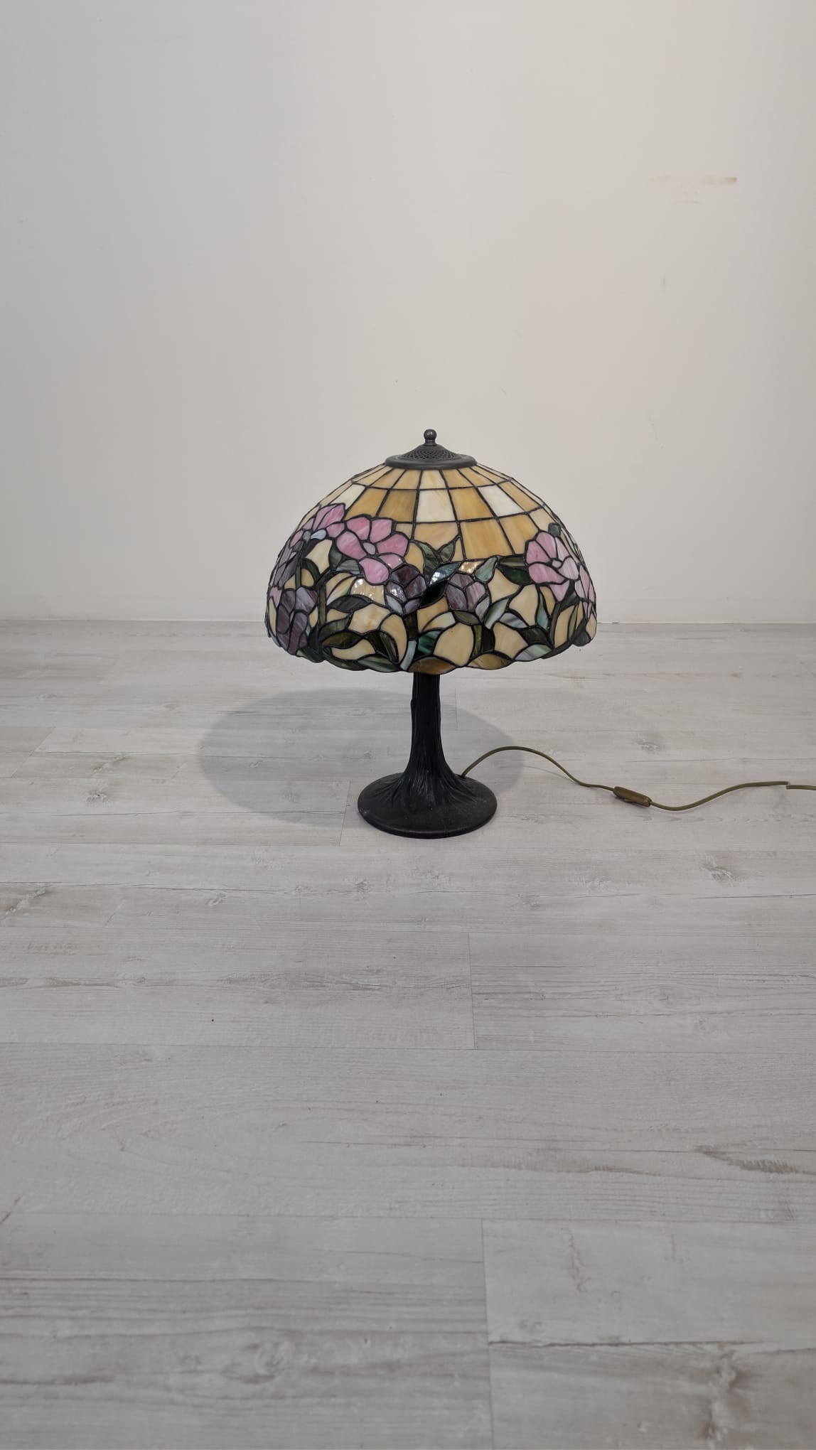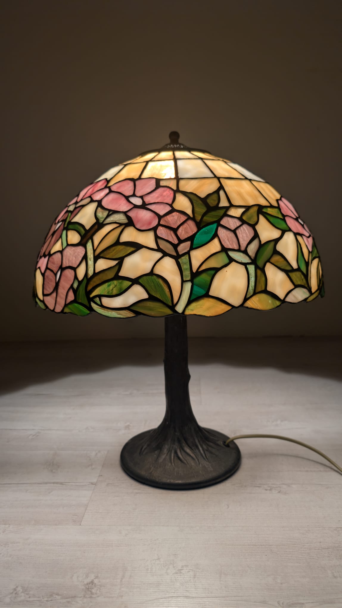 Tiffany-style stained glass table lamp with floral design