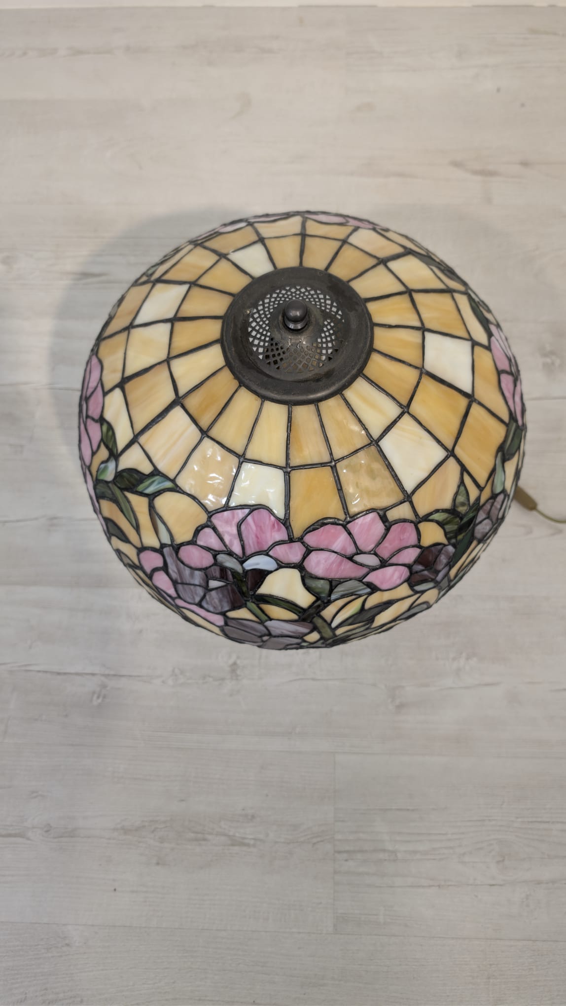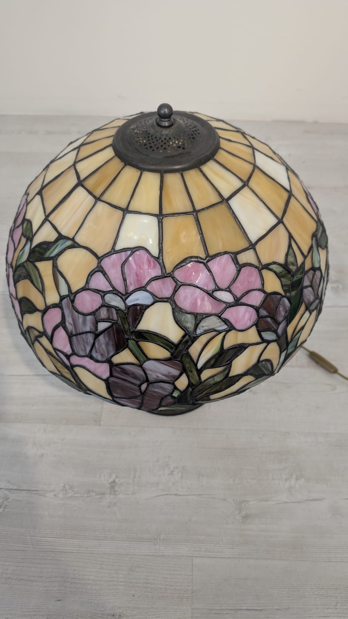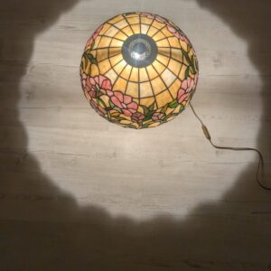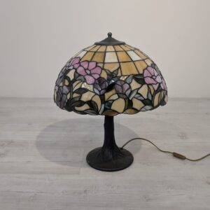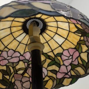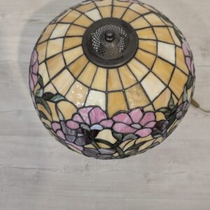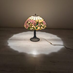Piękna lampa stołowa w stylu Tiffany’ego, ozdobiona kolorowymi kwiatami. Wykonana z wysokiej jakości szkła witrażowego, która nadaje jej niepowtarzalny wygląd. Doskonała jako dekoracja wnętrza lub praktyczne oświetlenie.