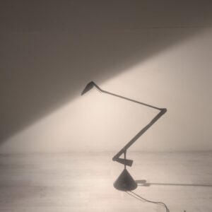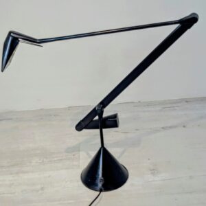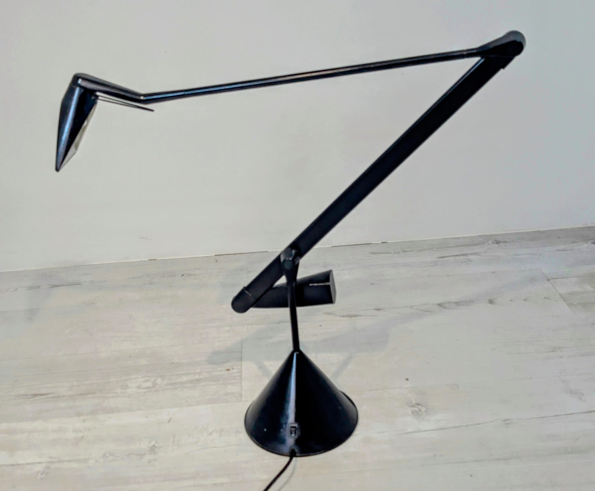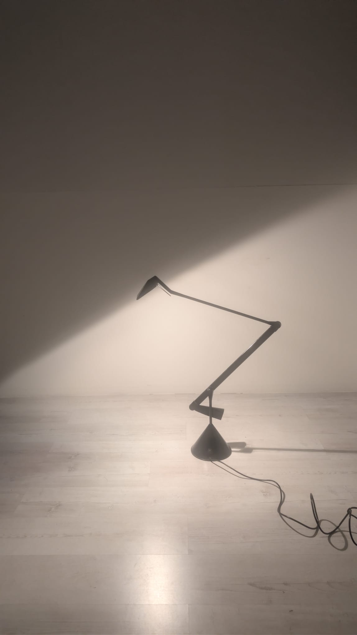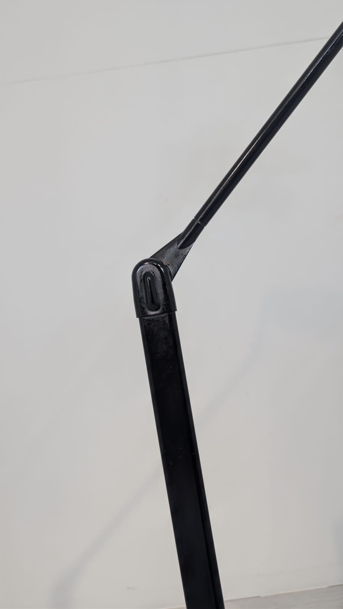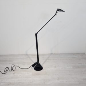 Piękna, stylowa lampa podłogowa Lumina Zelig, klasyczna włoska lampa zaprojektowana przez Waltera Moniciego w latach 80. XX wieku. Ten postmodernistyczny projekt charakteryzuje się unikalnym systemem przeciwwagi, który pozwala na płynną regulację ramion i utrzymanie ich w dowolnej pozycji.