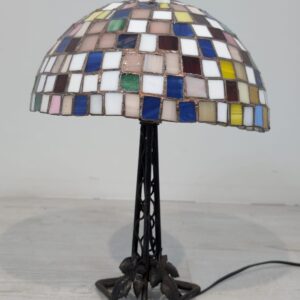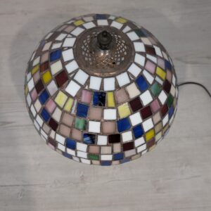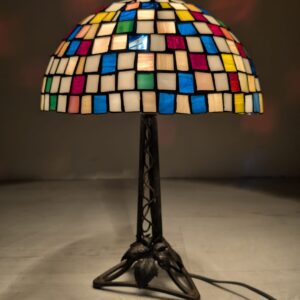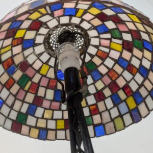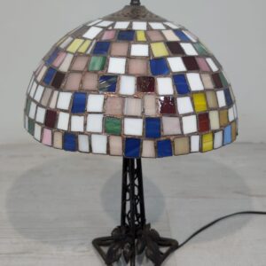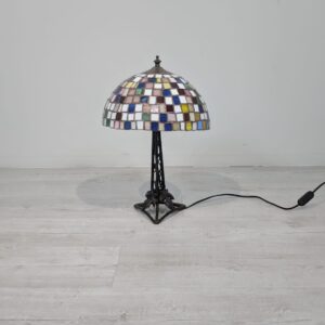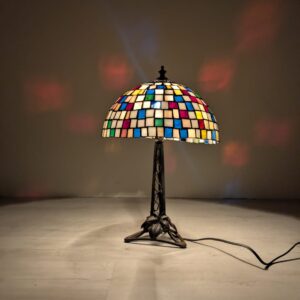 Stylowa lampa stołowa w stylu tiffany z kolorową, mozaikową kopułą. Doskonale oświetli każde pomieszczenie, nadając mu niepowtarzalny charakter. Wykonana z wysokiej jakości materiałów, zapewnia długotrwałe użytkowanie.