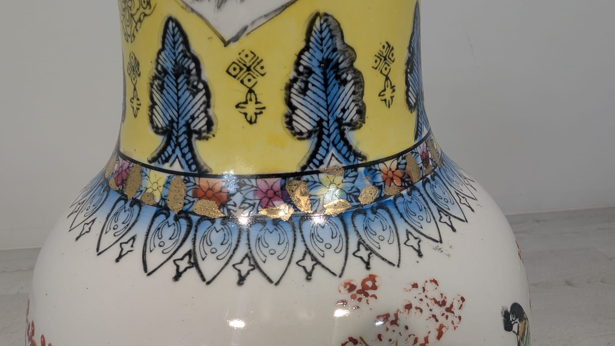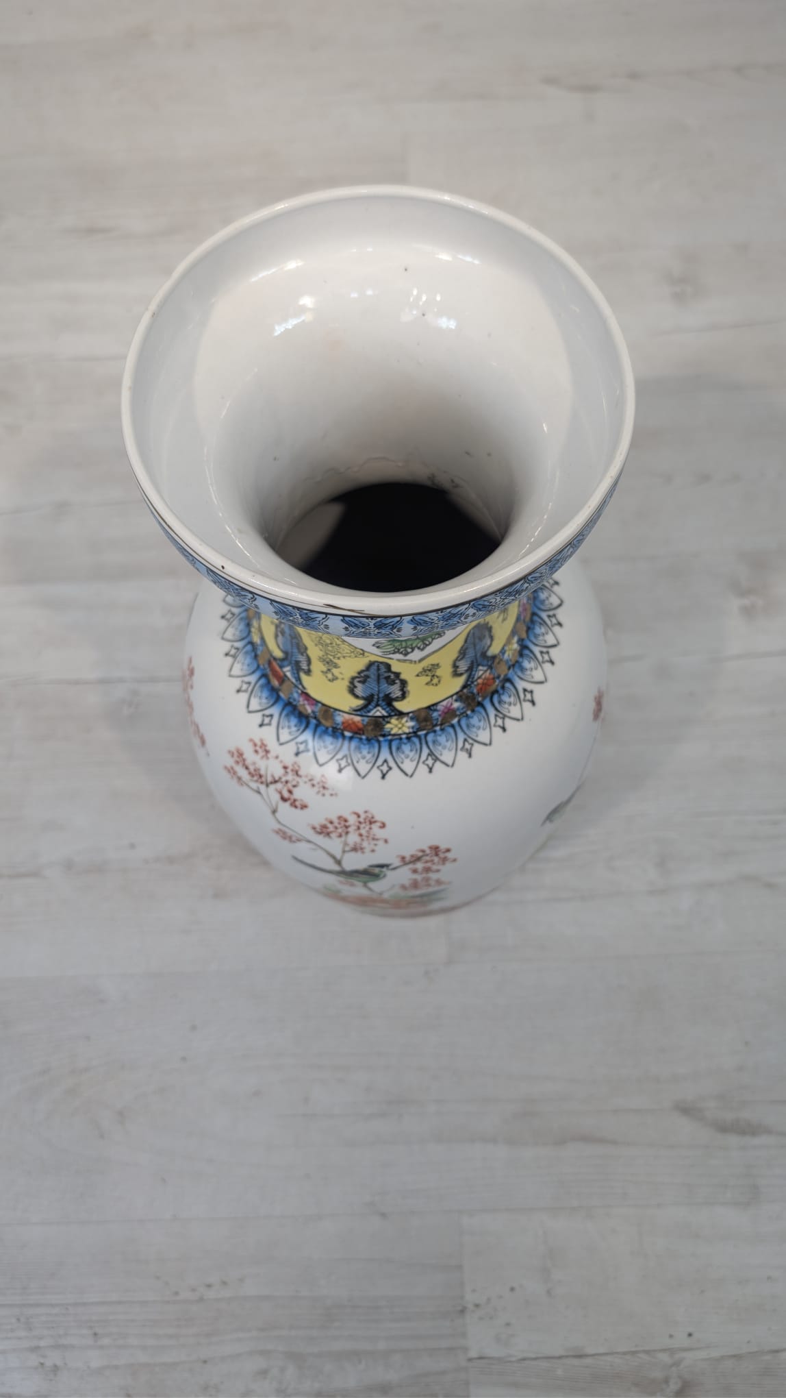 A beautiful oriental vase with floral and geometric motifs. The vessel is made of high-quality porcelain, with a distinctive, colourful pattern. The vase can be used as an interior decoration or a practical vessel for flowers.