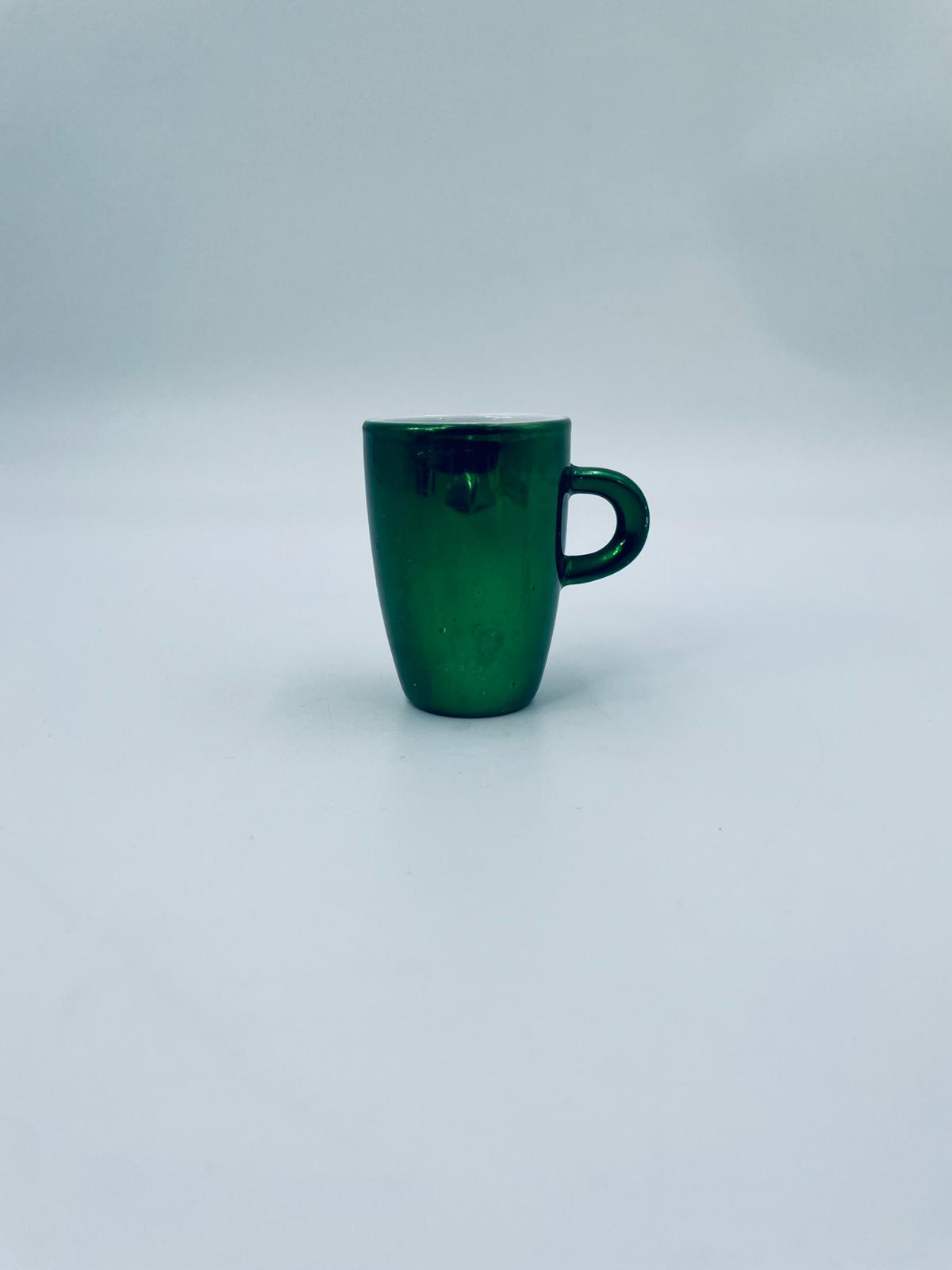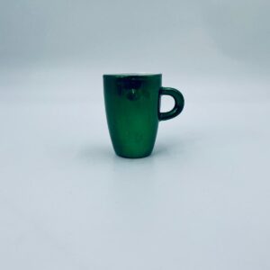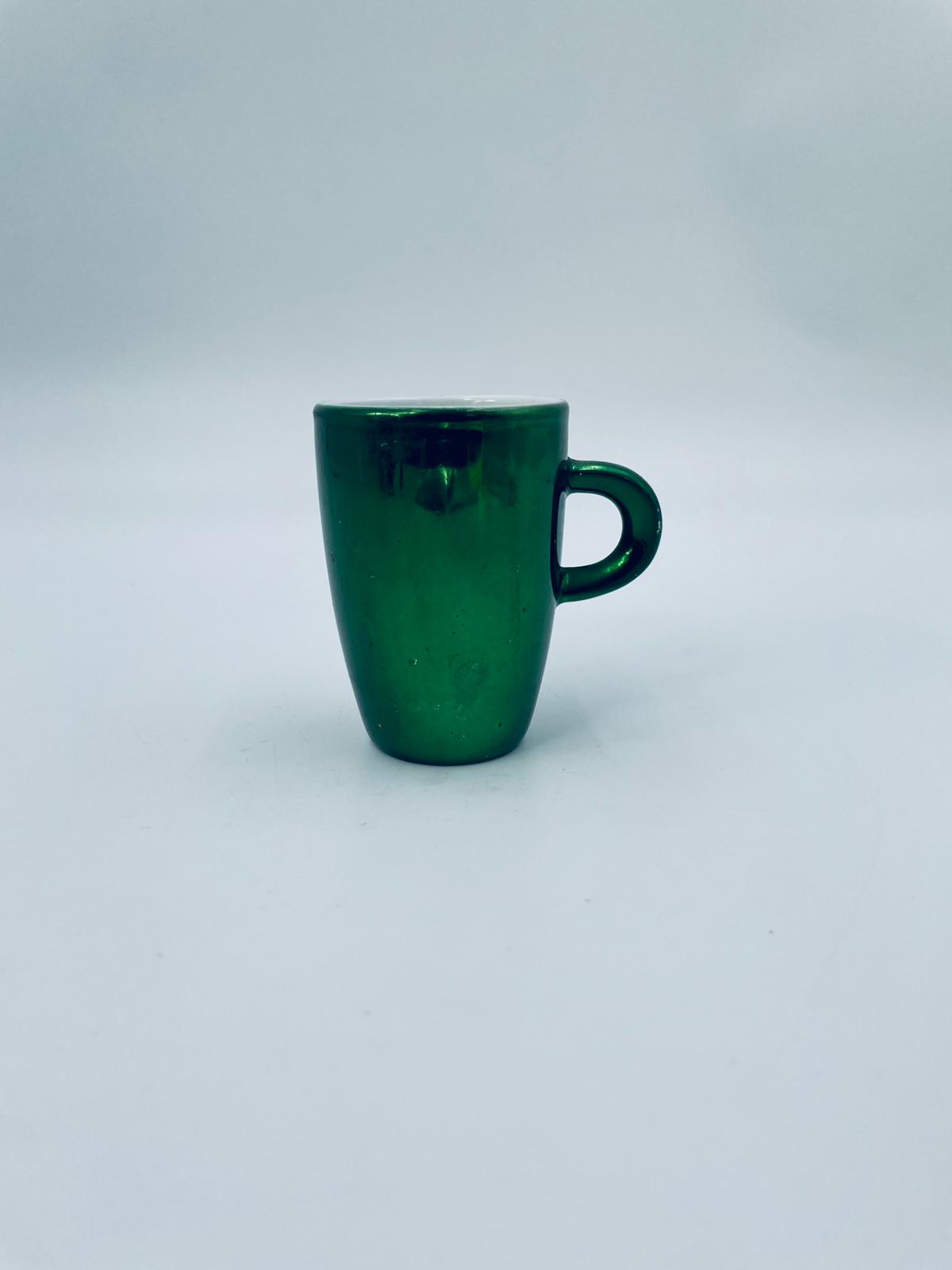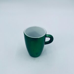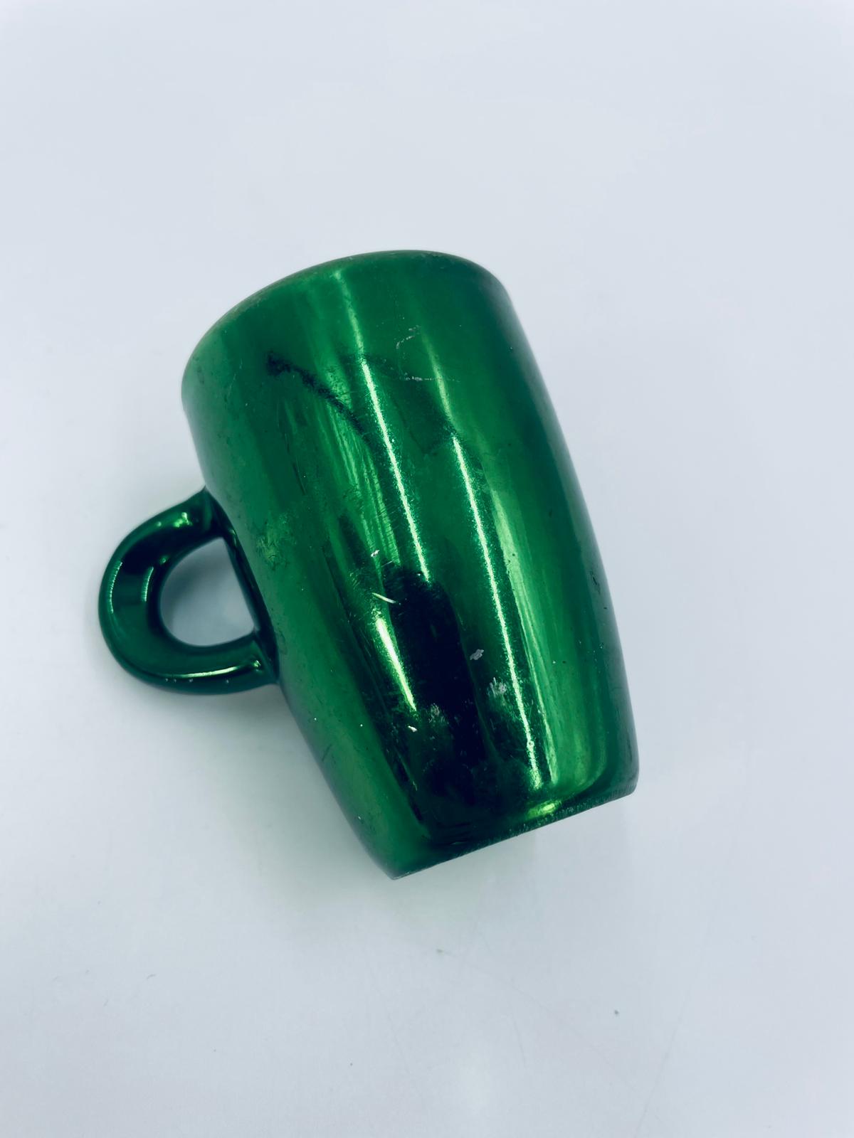 Mały kubeczek w stylu Vintage, wykonany z wysokiej jakości białej porcelany. Kubeczek klasyczny, barwiony z zewnątrz na zielony kolor. Posiada przetarcie na kolorze.