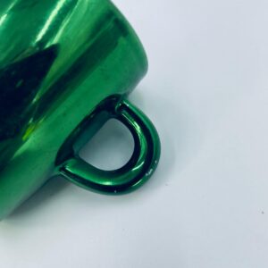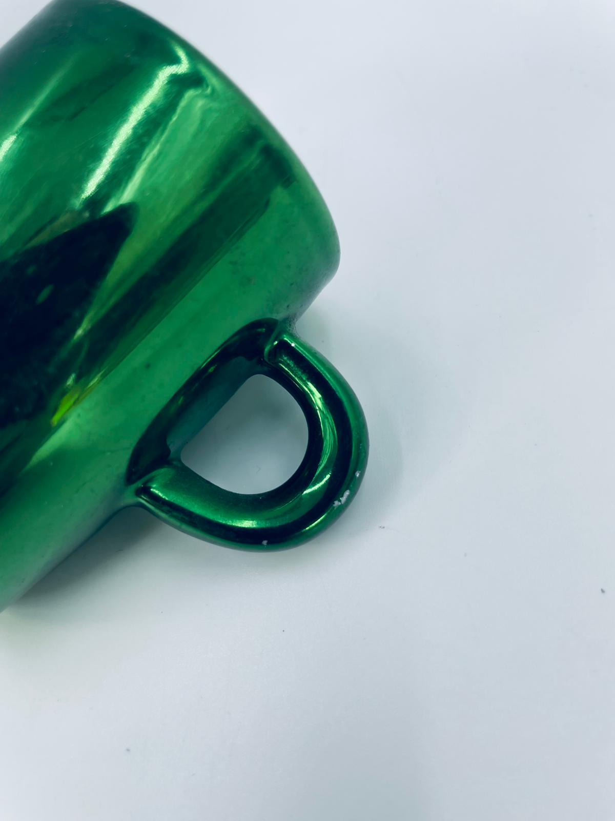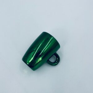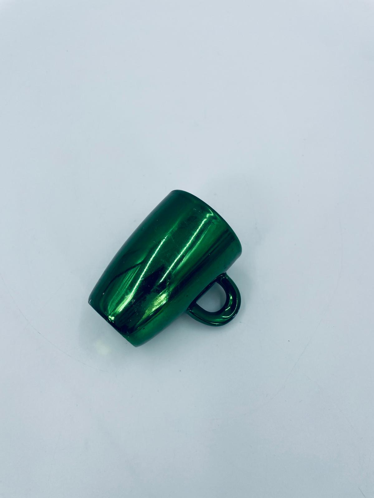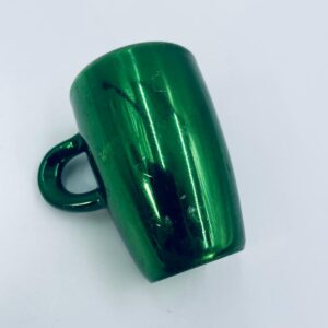 Mały kubeczek w stylu Vintage, wykonany z wysokiej jakości białej porcelany. Kubeczek klasyczny, barwiony z zewnątrz na zielony kolor. Posiada przetarcie na kolorze.