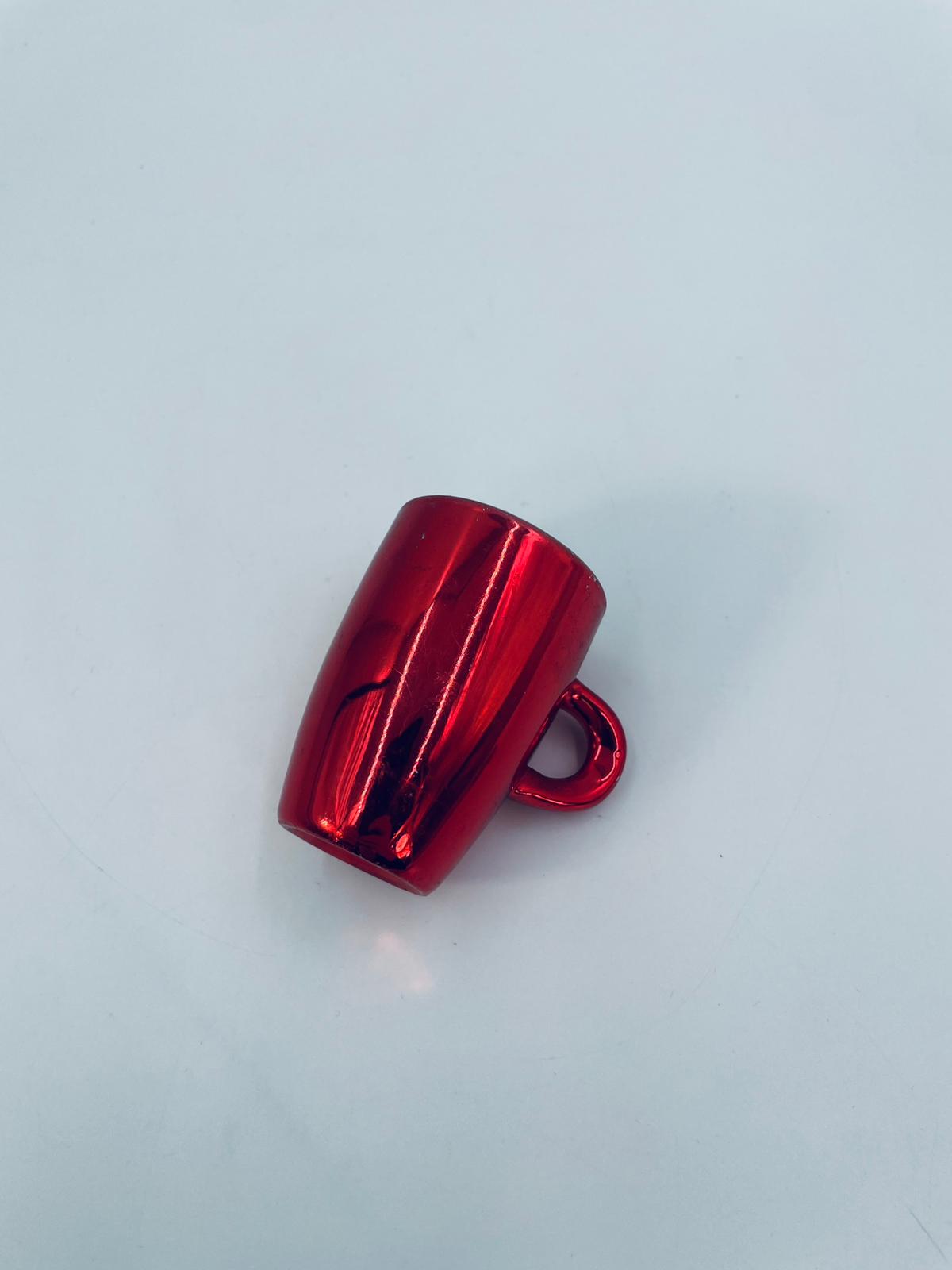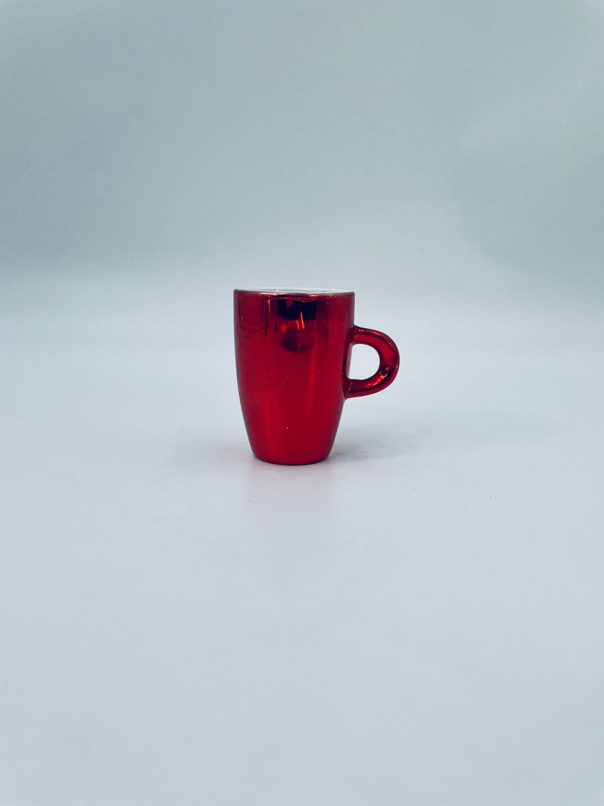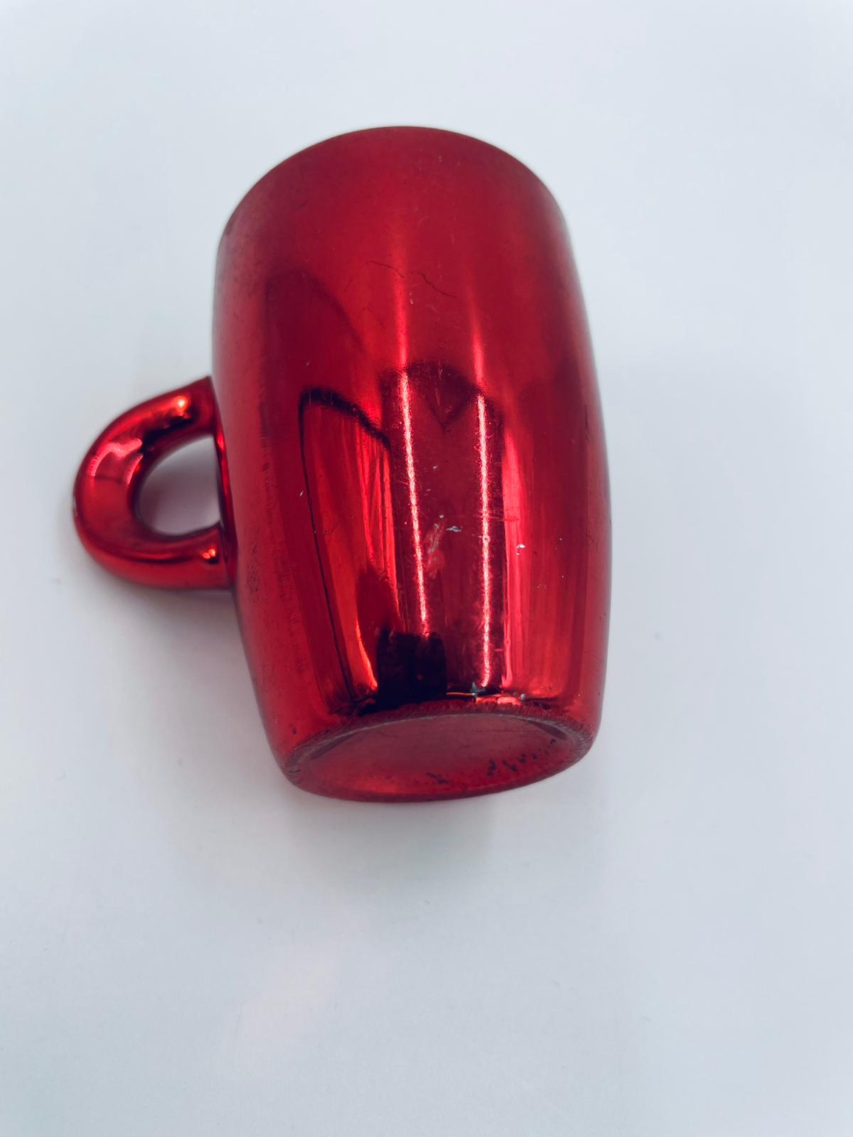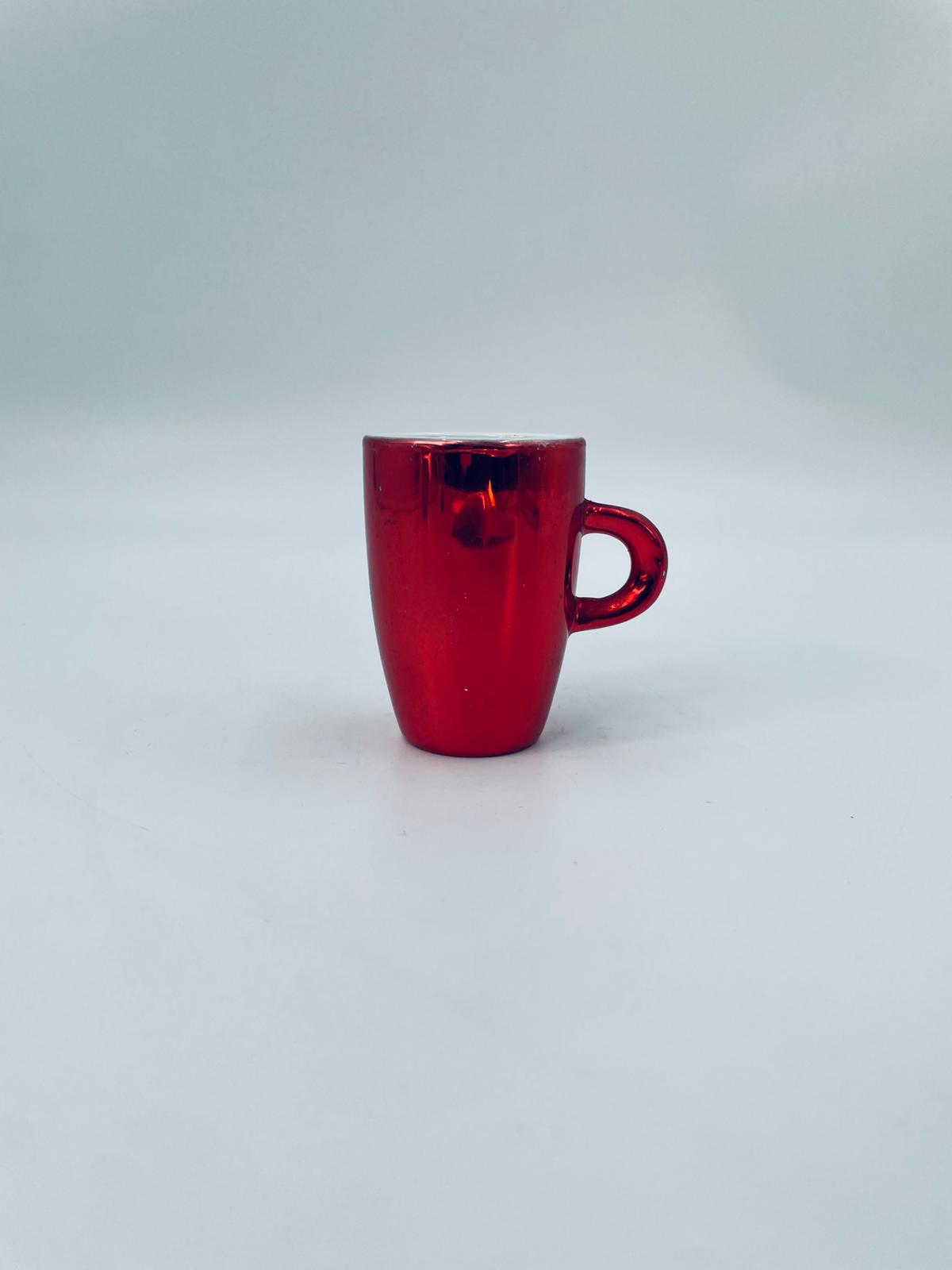 Mały kubeczek w stylu Vintage, wykonany z wysokiej jakości białej porcelany. Kubeczek klasyczny, barwiony z zewnątrz na czerwony kolor. Posiada przetarcie na kolorze.