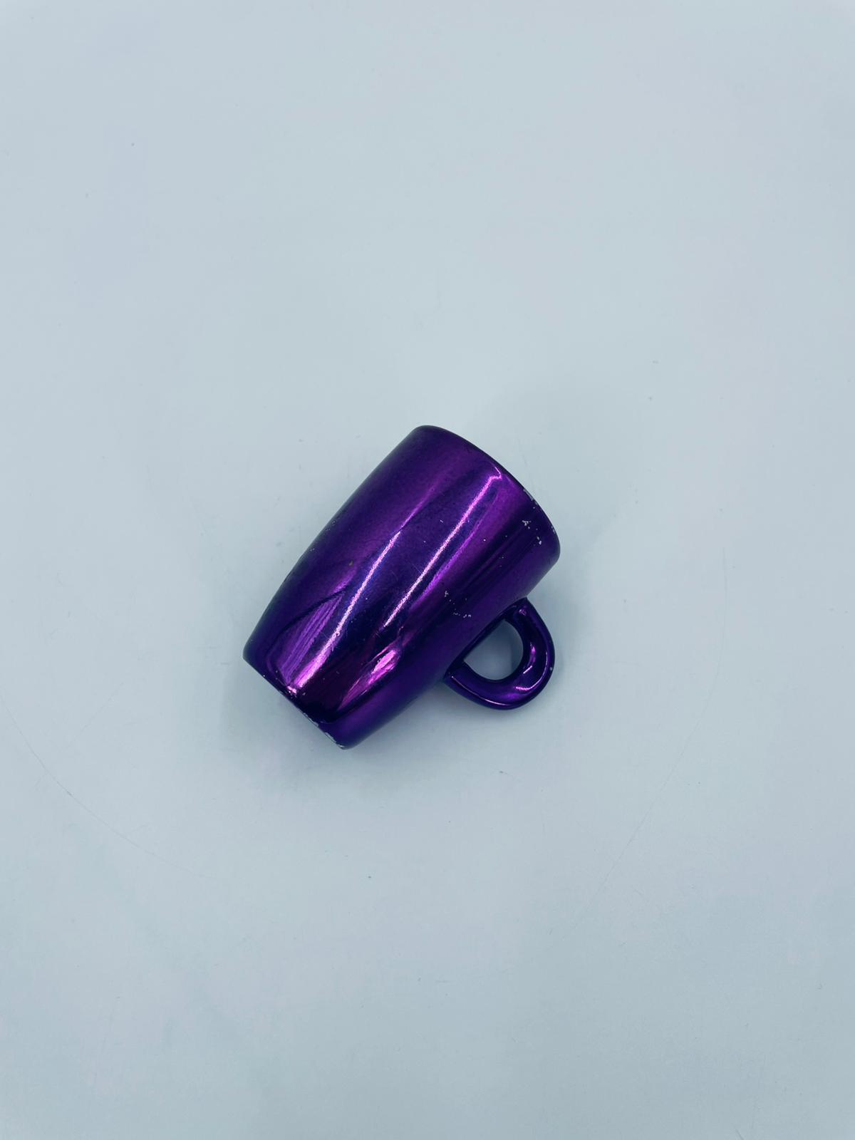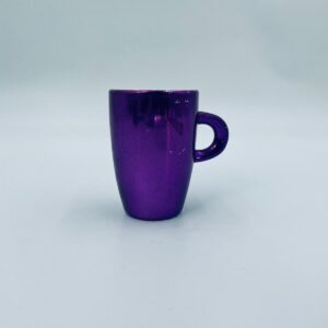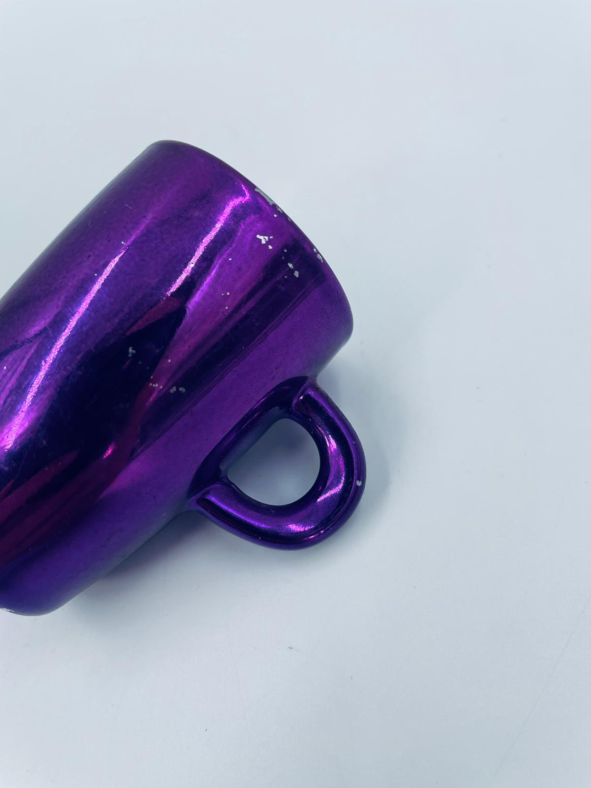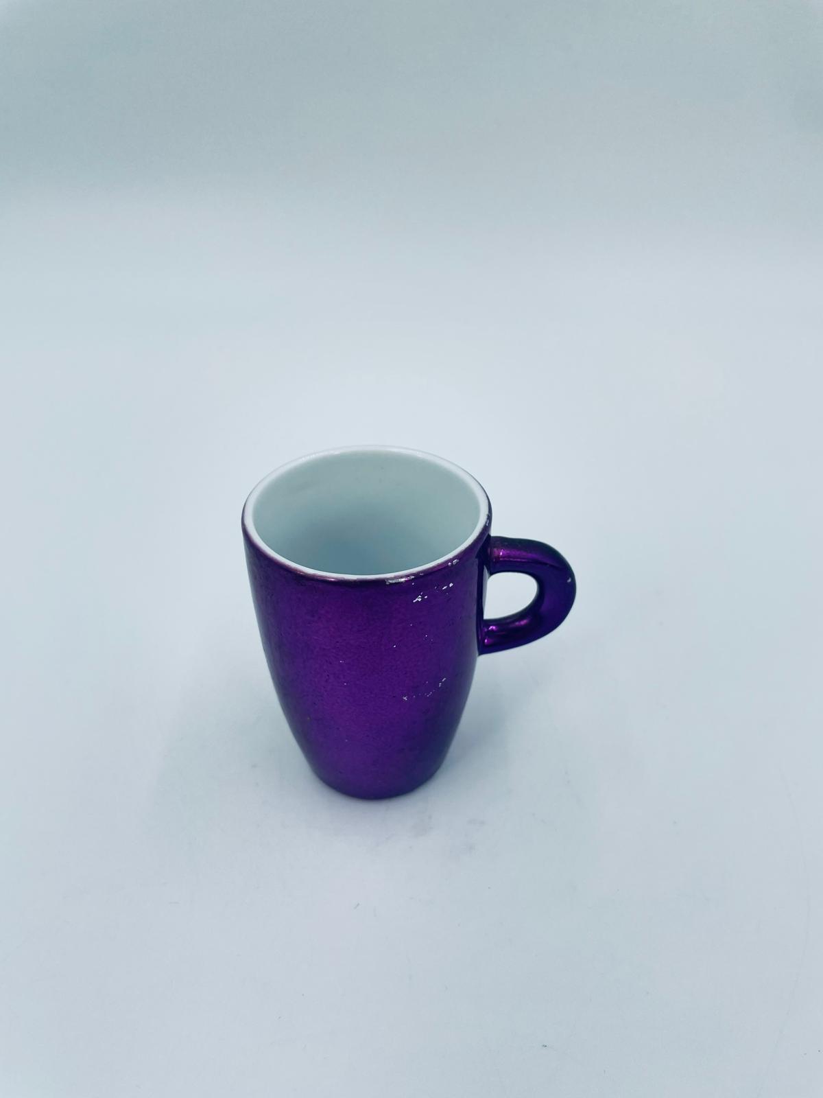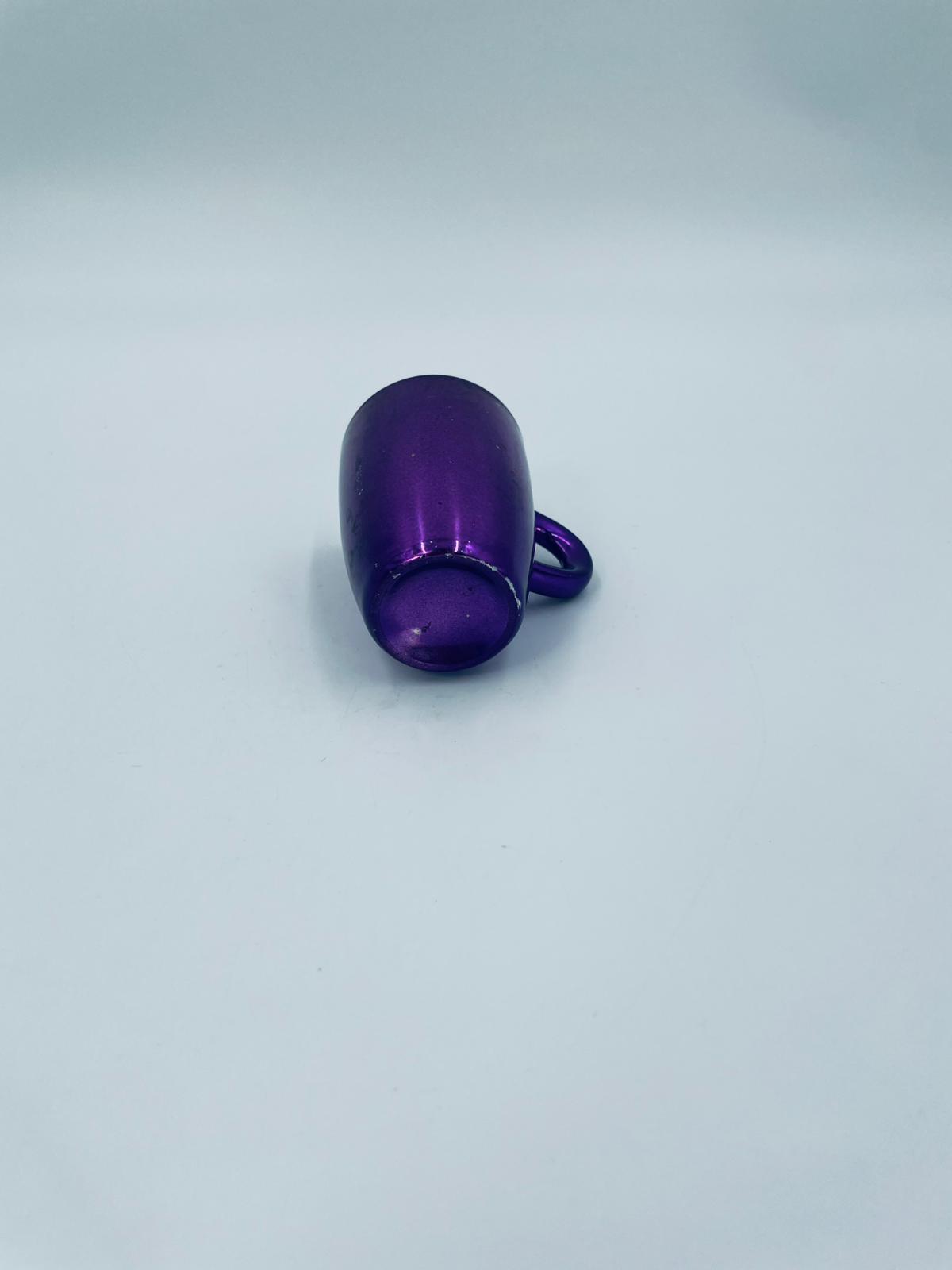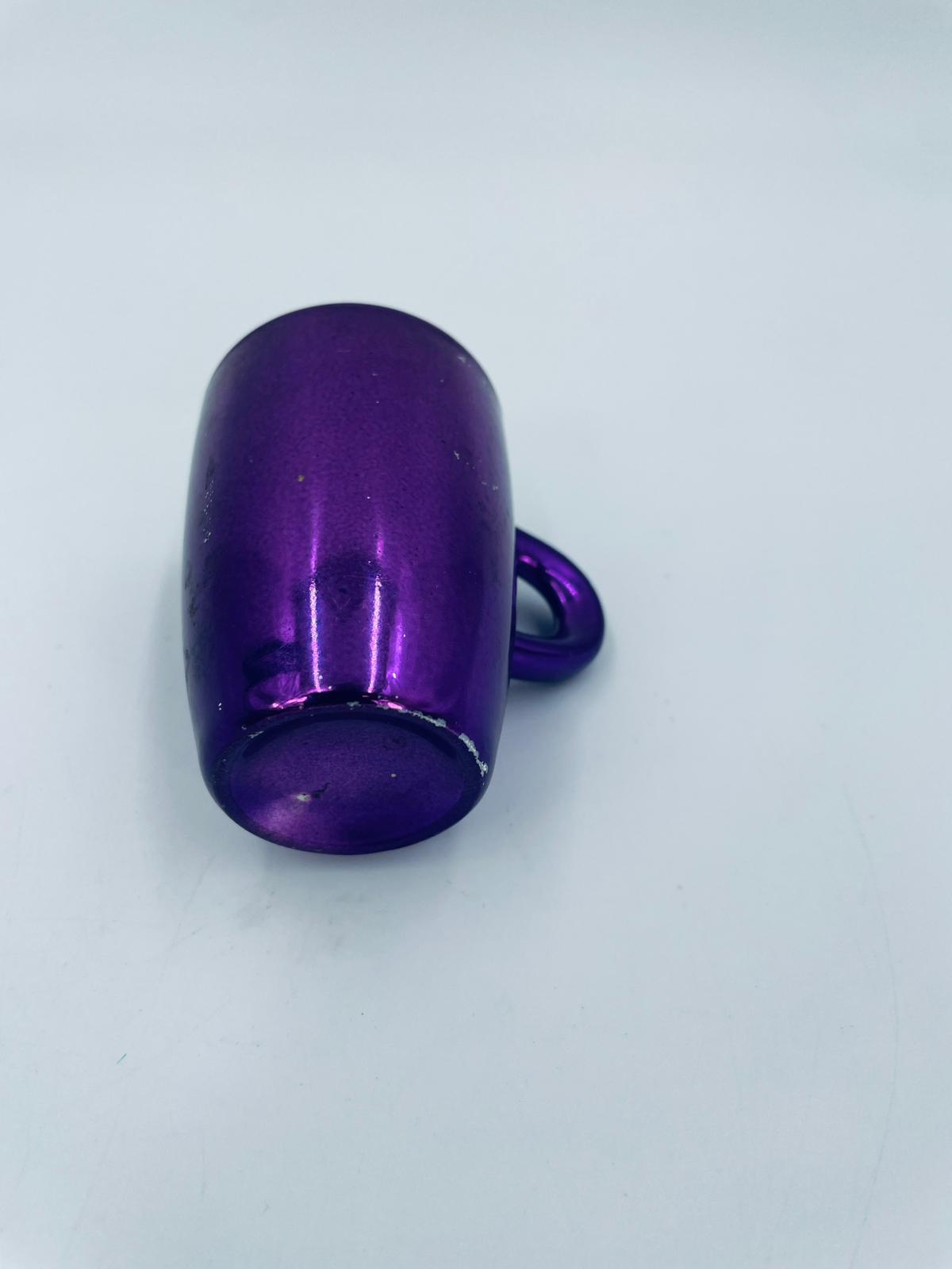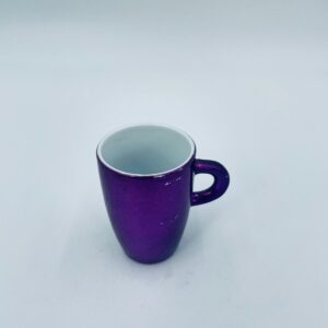 Mały kubeczek w stylu Vintage, wykonany z wysokiej jakości białej porcelany. Kubeczek klasyczny, barwiony z zewnątrz na fioletowy kolor. Posiada przetarcie na kolorze.