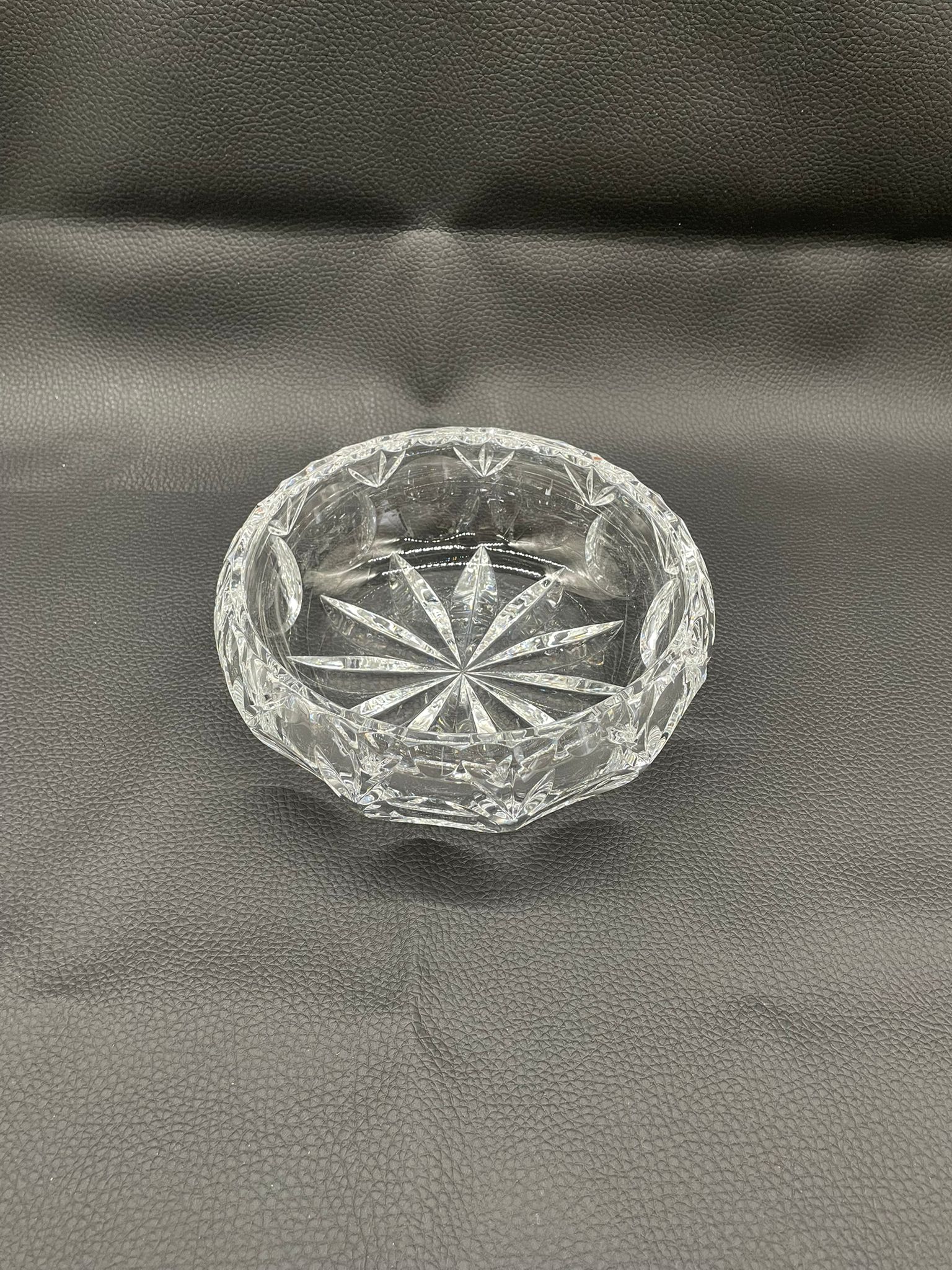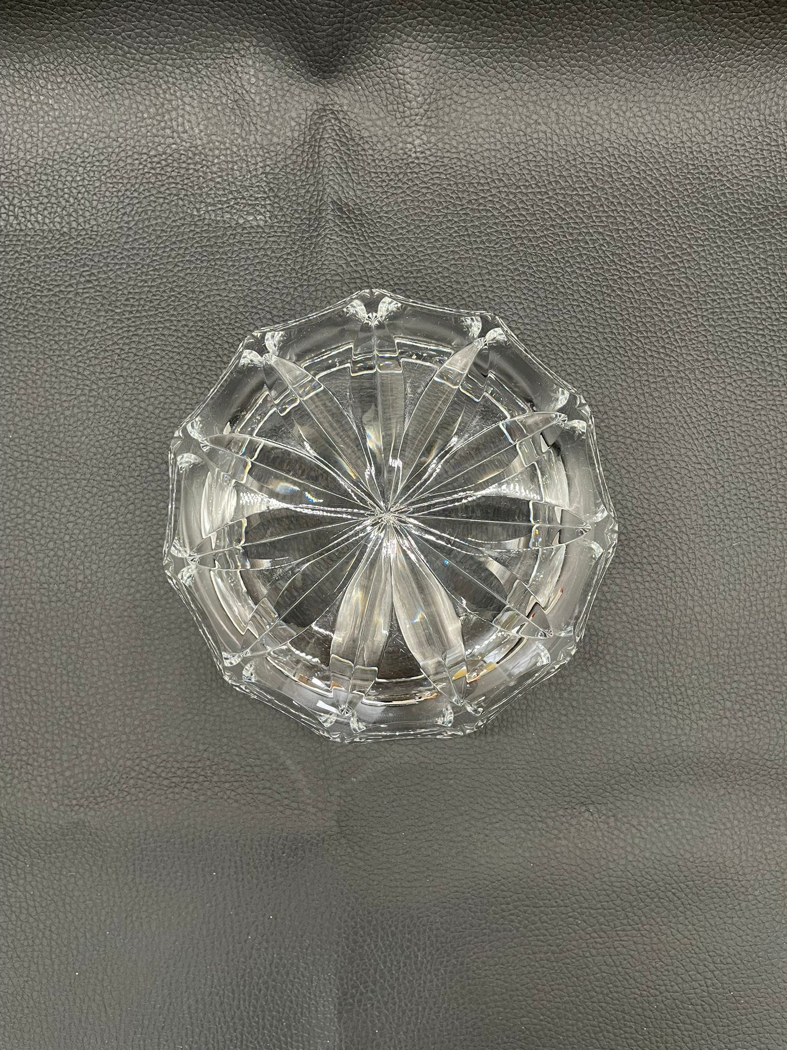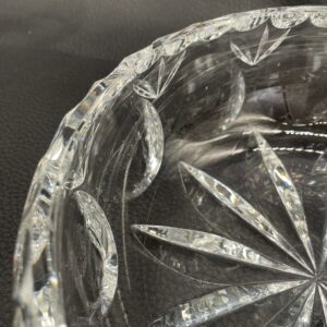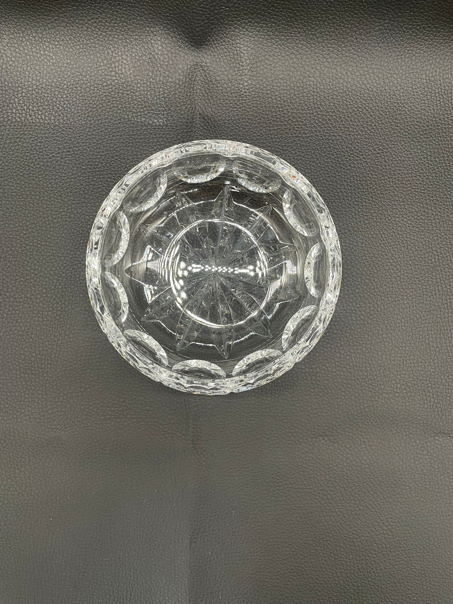Misa dekoracyjna w stylu Vintage z czasu PRL-u, wykonana z wysokie jakości grubego szkła kryształowego. Misa ozdobiona klasycznym, ręczne ciętym, szlifowanym wzorem, w tym charakterystyczną gwiazdą na dnie.
