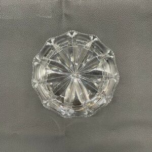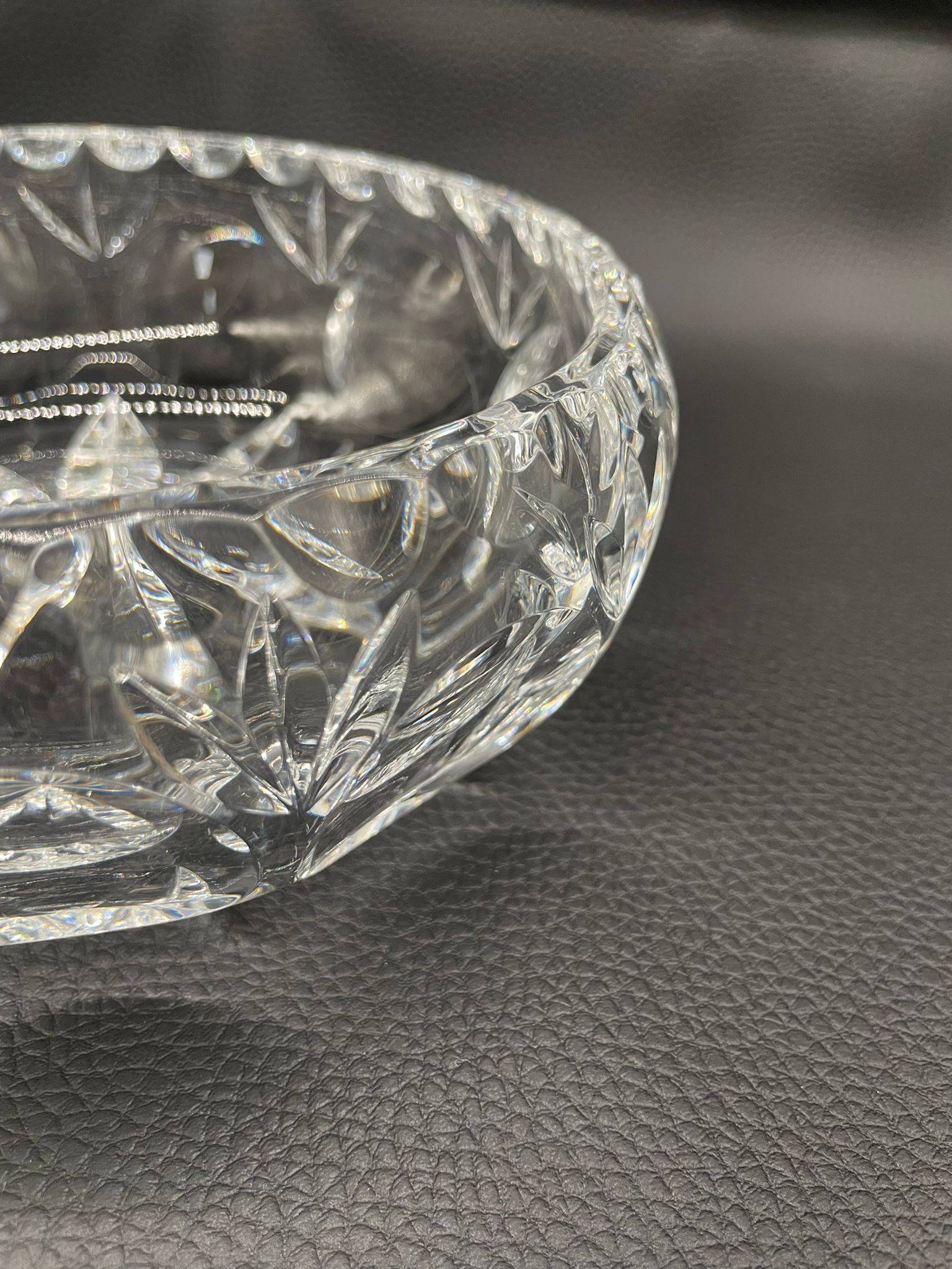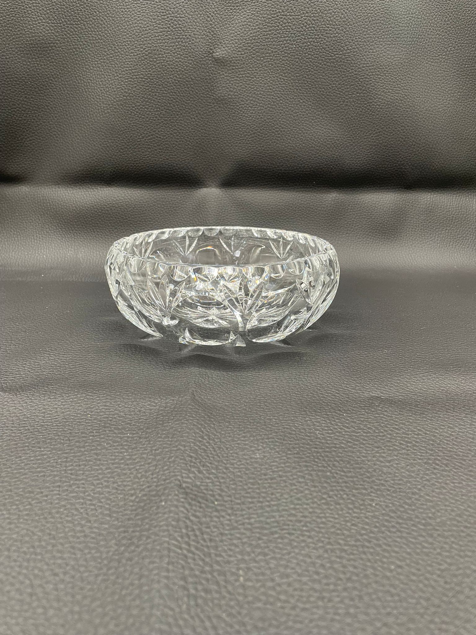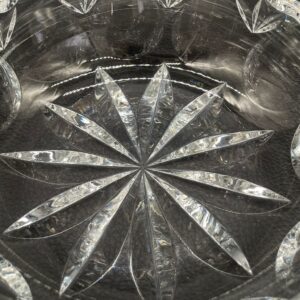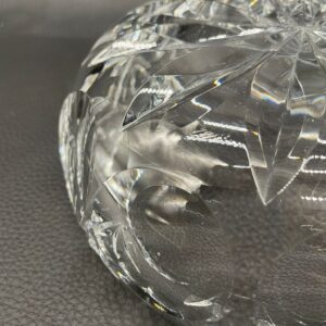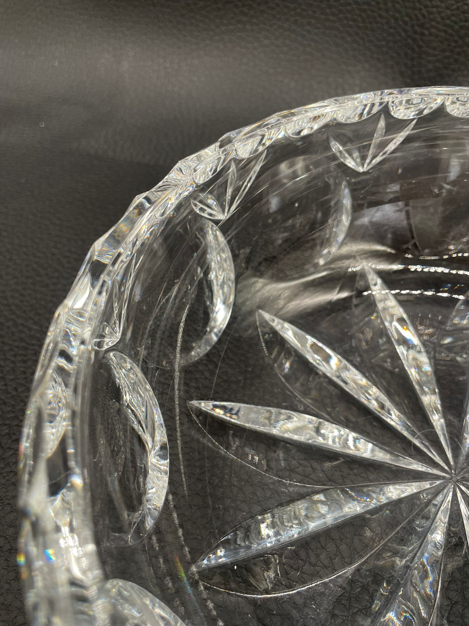 Misa dekoracyjna w stylu Vintage z czasu PRL-u, wykonana z wysokie jakości grubego szkła kryształowego. Misa ozdobiona klasycznym, ręczne ciętym, szlifowanym wzorem, w tym charakterystyczną gwiazdą na dnie.