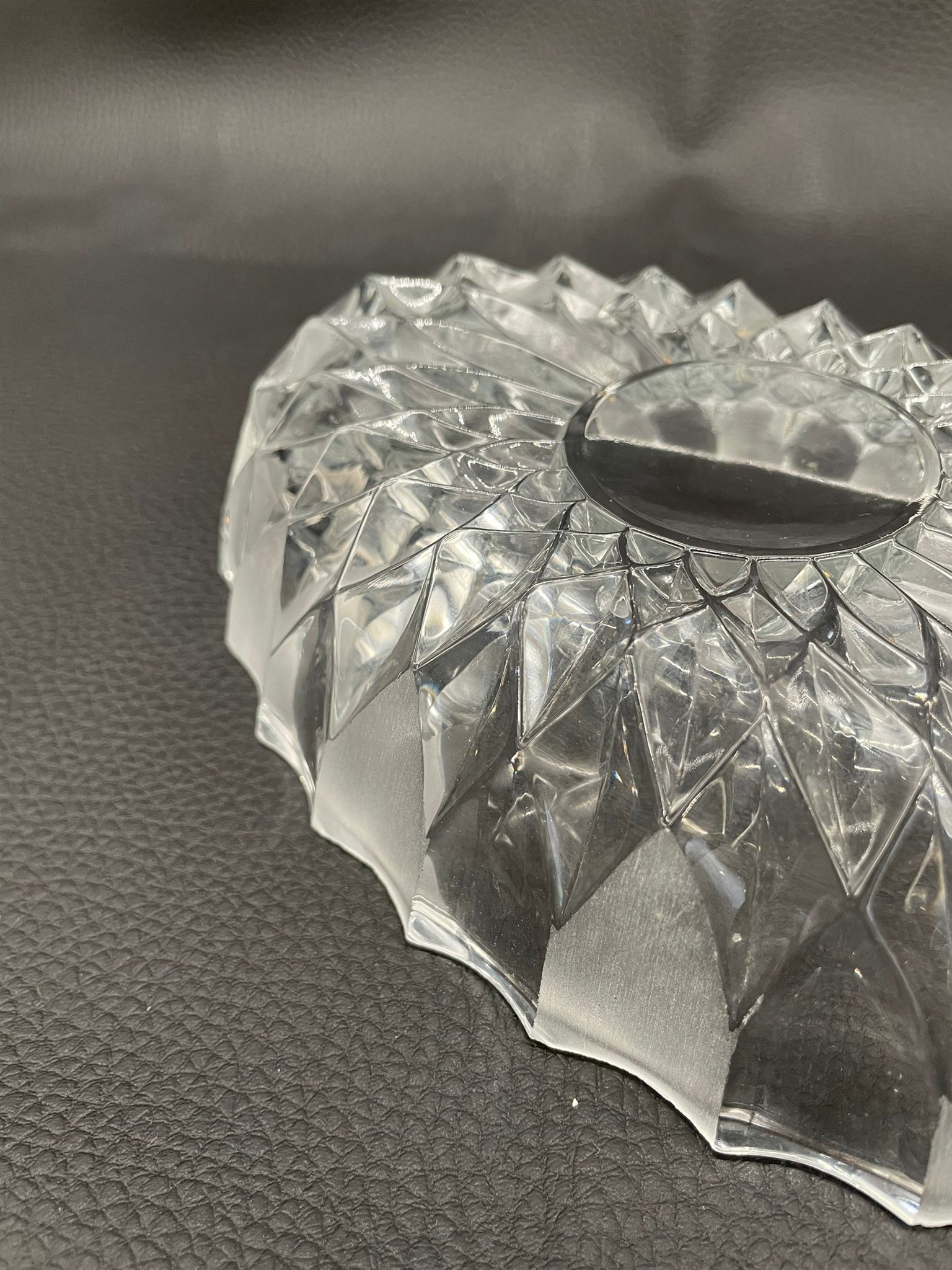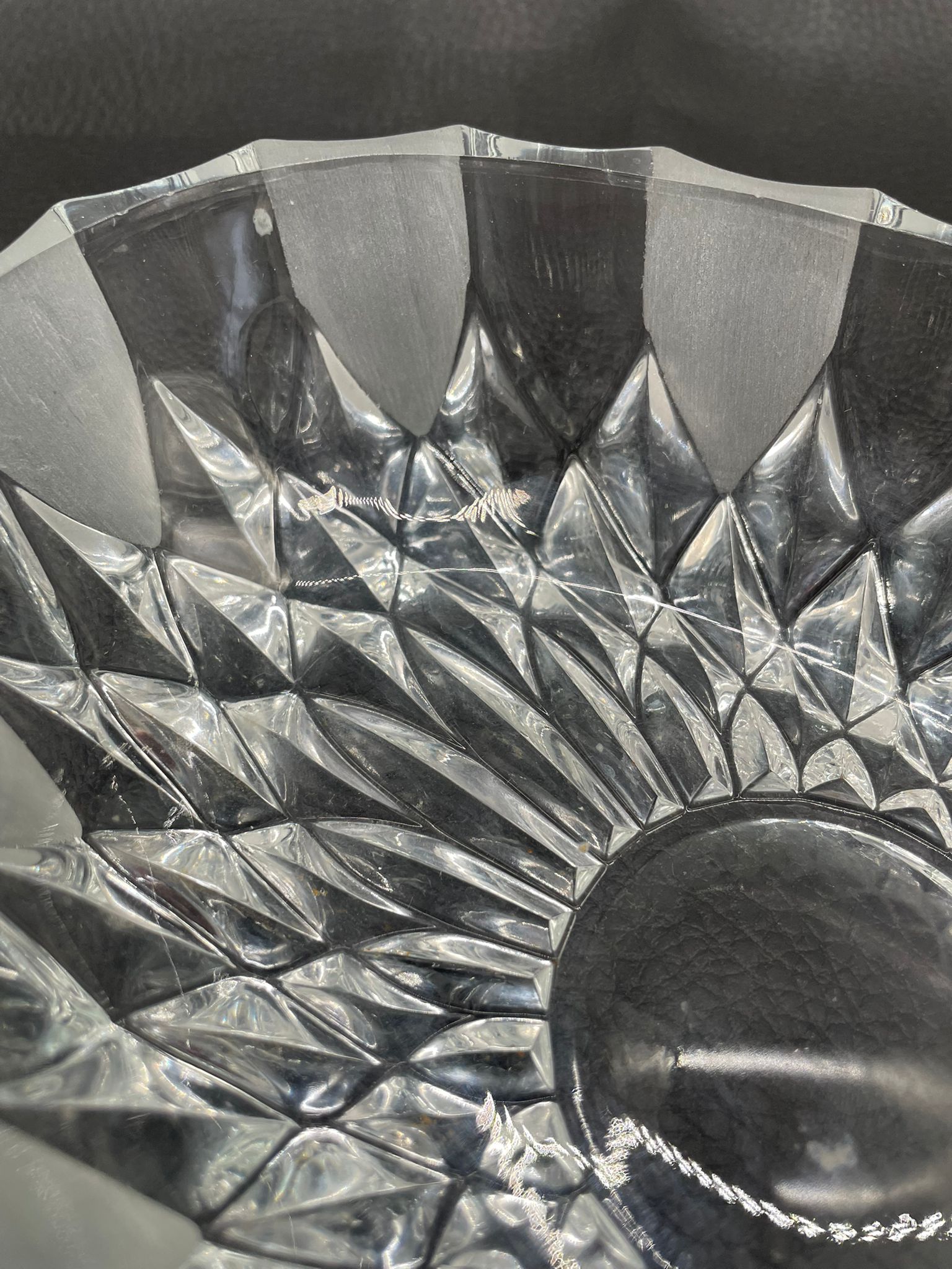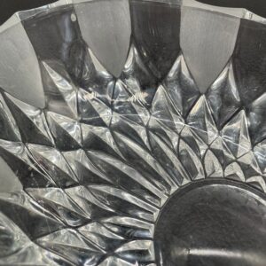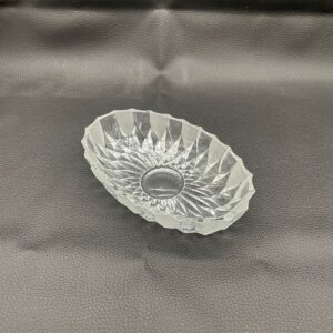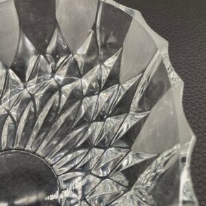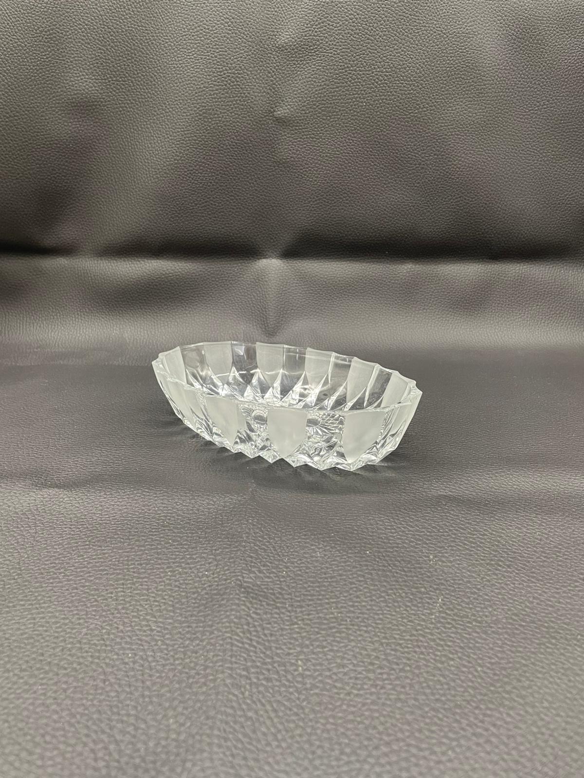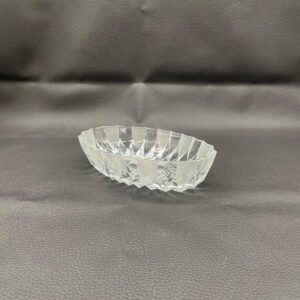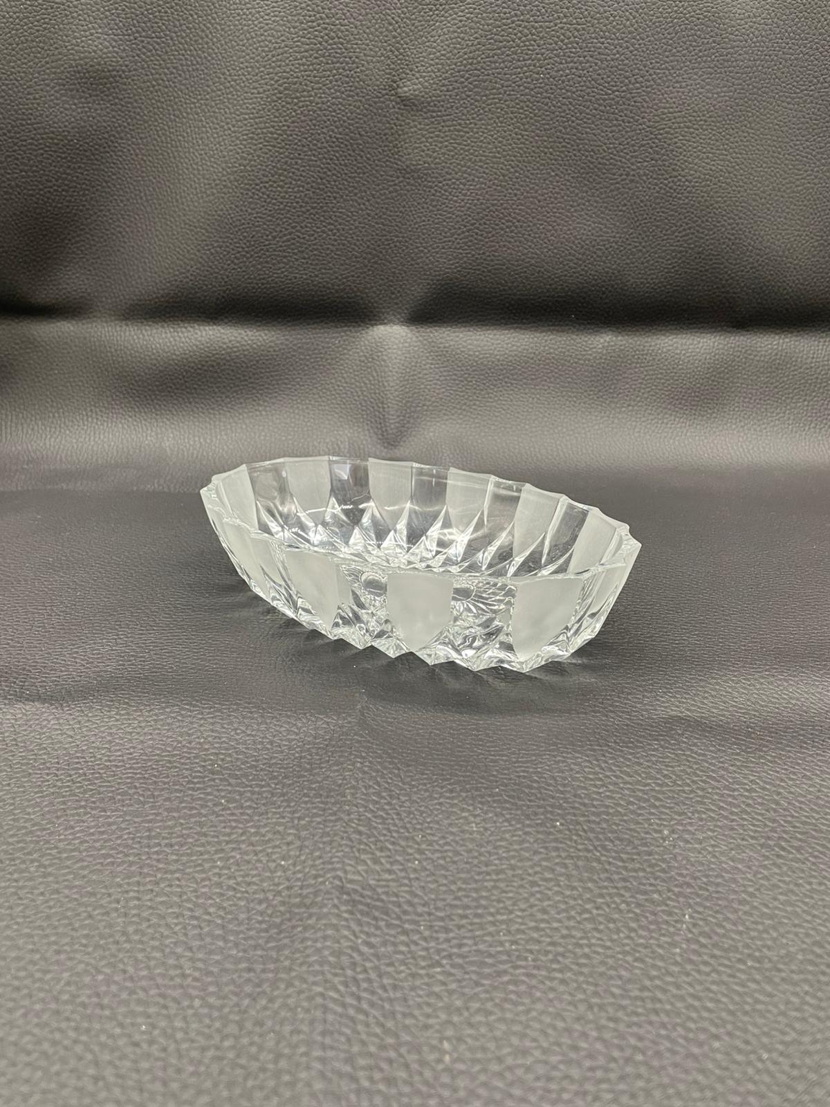 Misa dekoracyjna, salaterka w stylu Vintage, wykonana z wysokiej jakości szkła kryształowego. Misa charakteryzuje się owalnym kształtem, ręcznie ciętymi fasetowanymi, geometrycznymi wzorami oraz matowymi- szronionymi elementami.