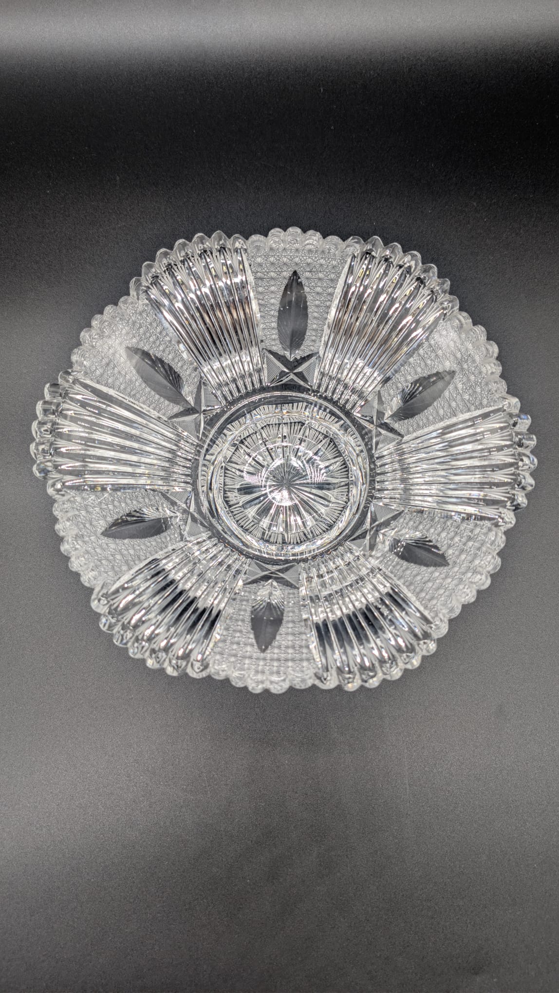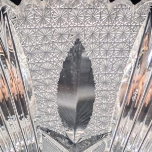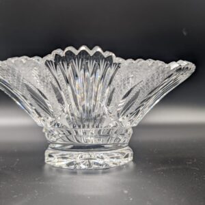 Elegancka, kryształowa miska w stylu lat 70-tych. Wykonana z wysokiej jakości szkła kryształowego z charakterystycznymi dla tego okresu wzorami. Miska jest w dobrym stanie, nadaje się do codziennego użytku lub jako dekoracja wnętrza.