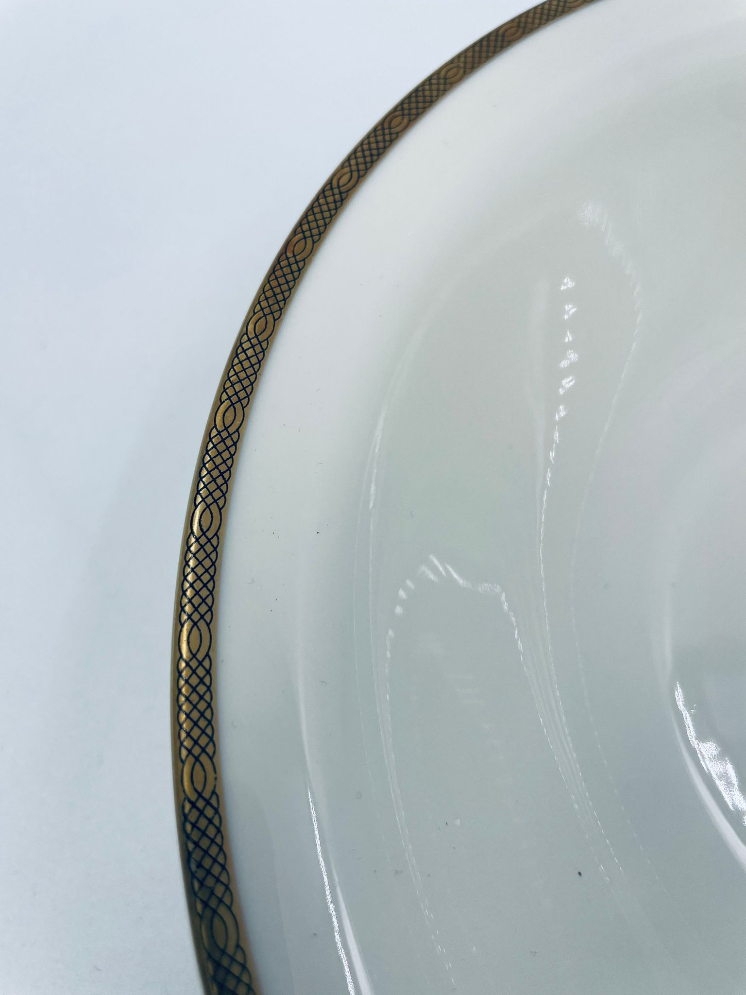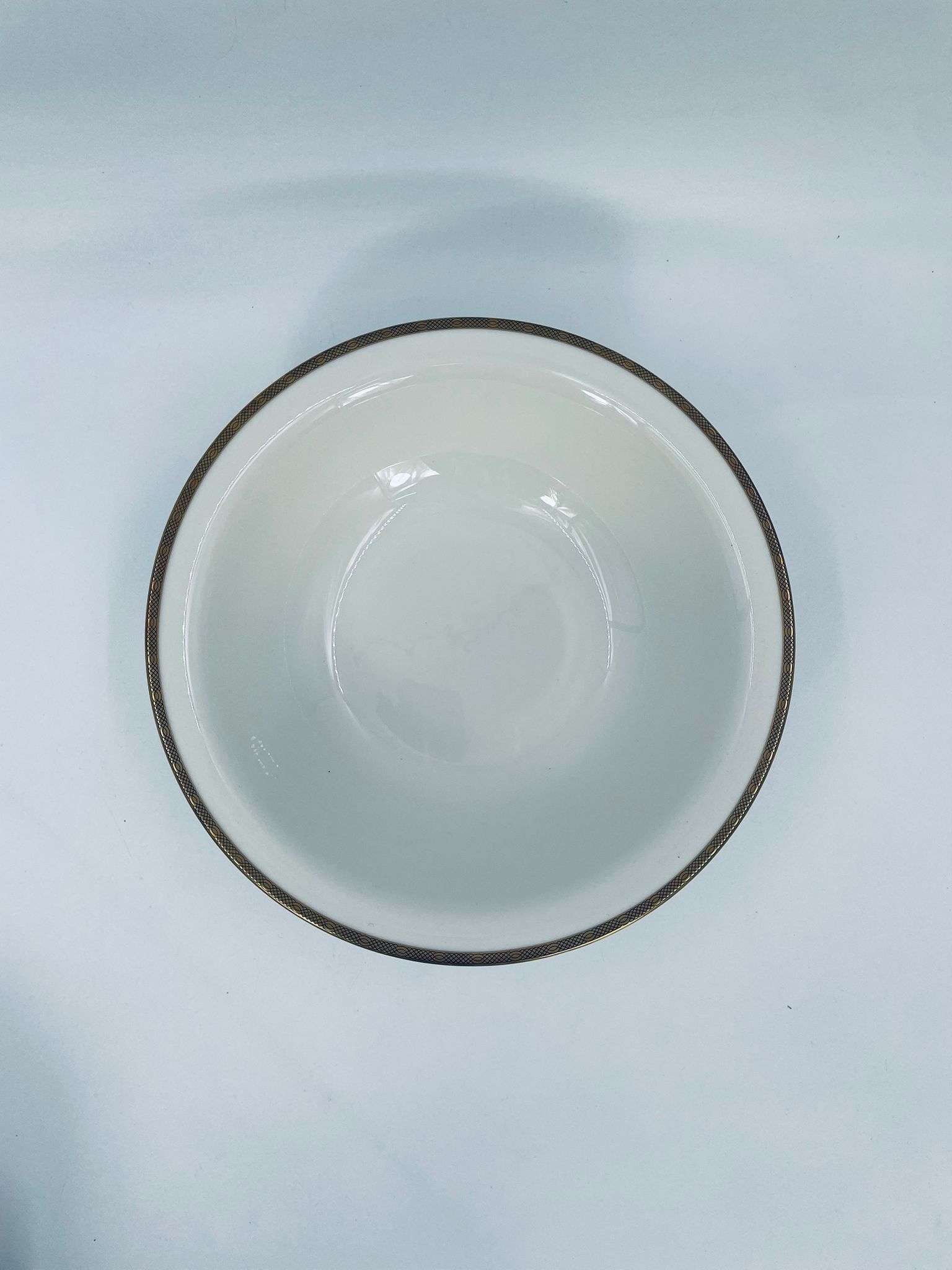 Misa wytworni Eschenbach, wykonana z wysokiej jakości porcelany w kolorze ecru. Misa klasyczna, ozdobiona złoceniem na krawędzi z geometrycznym wzorem.