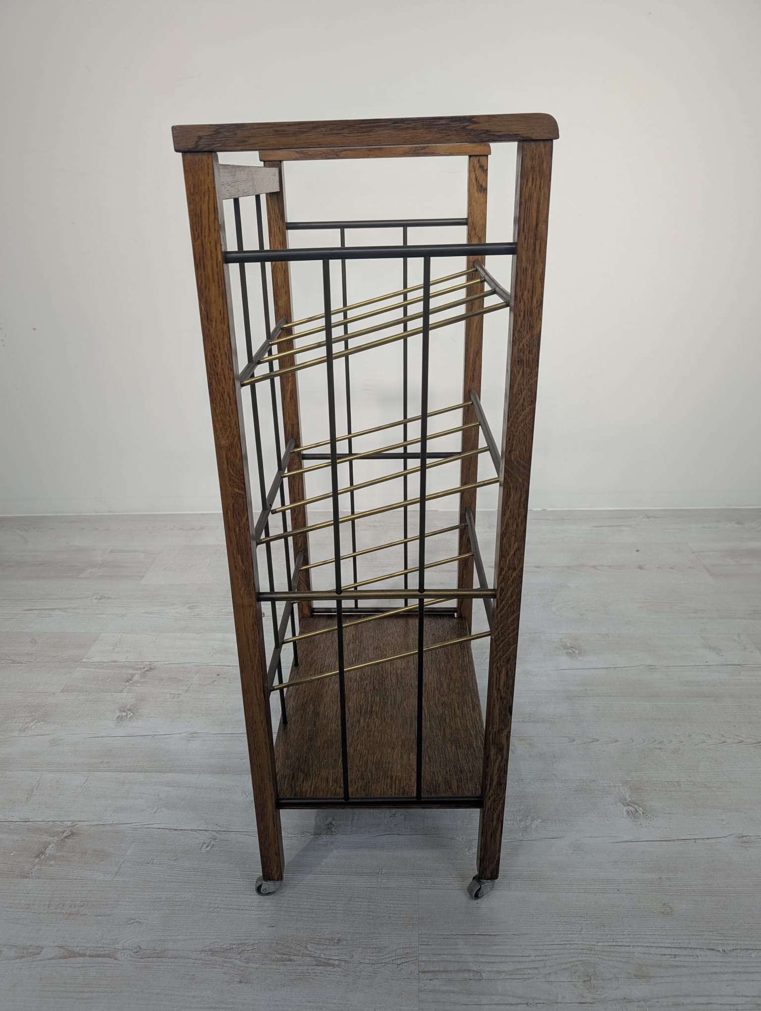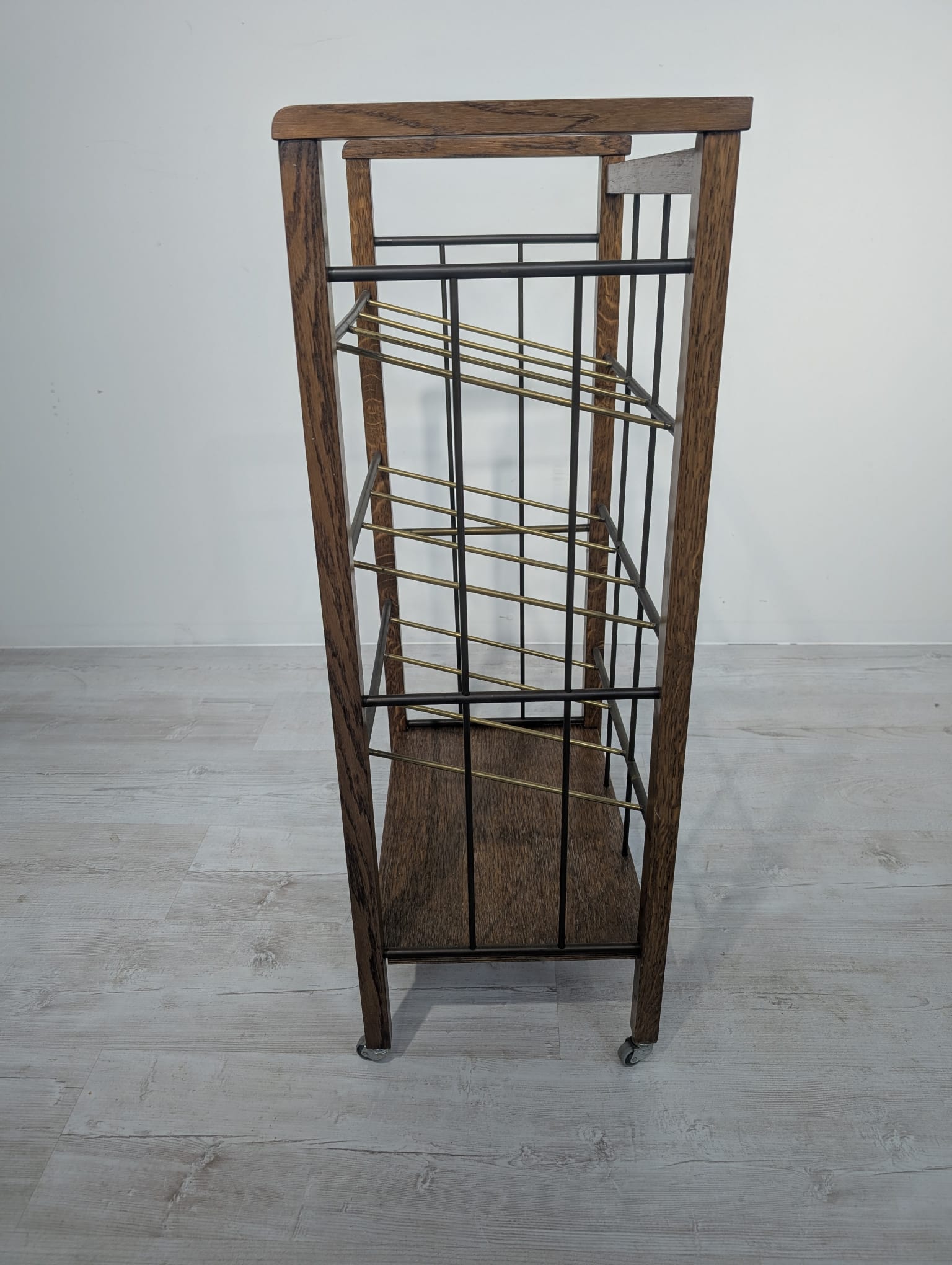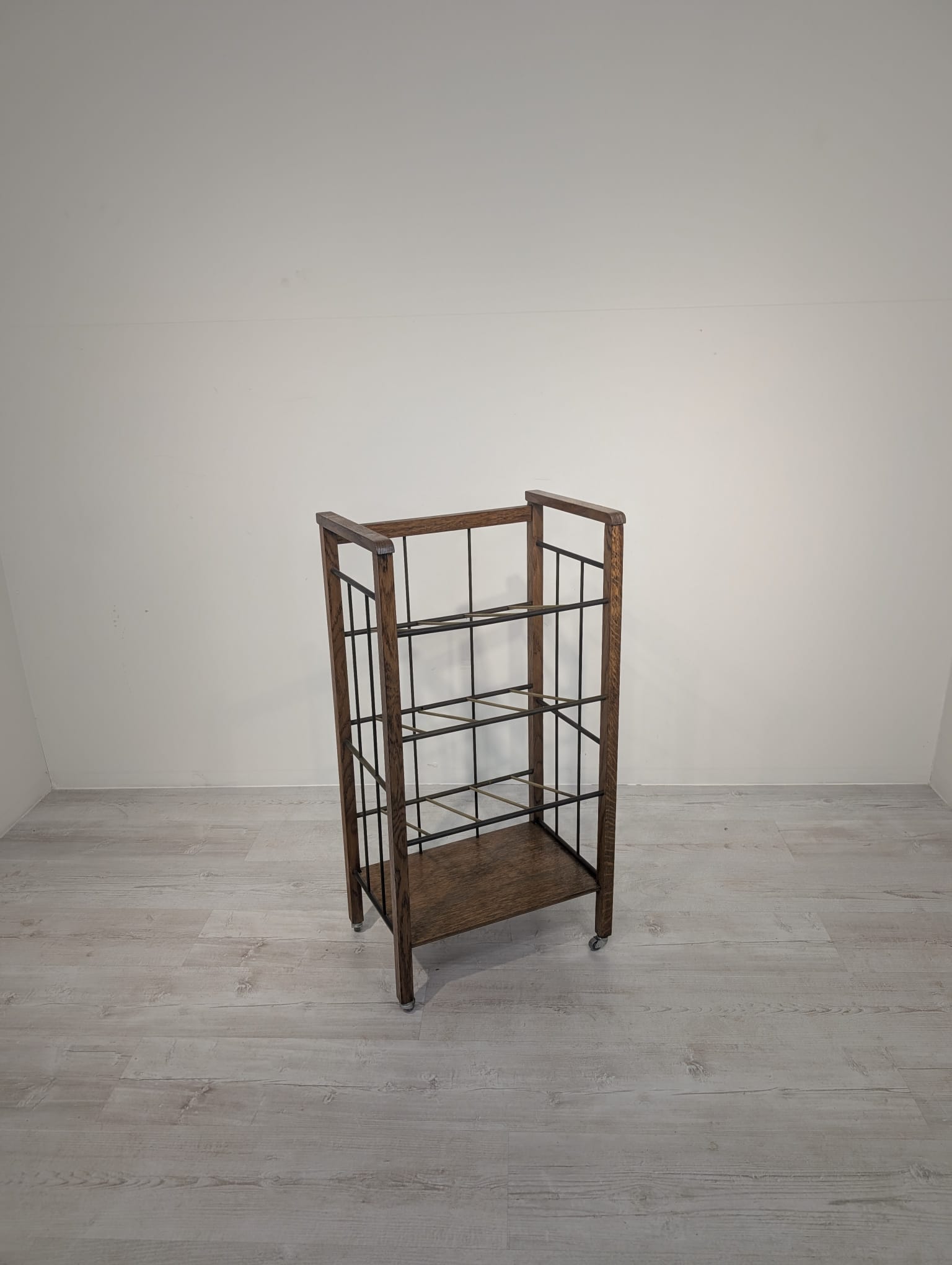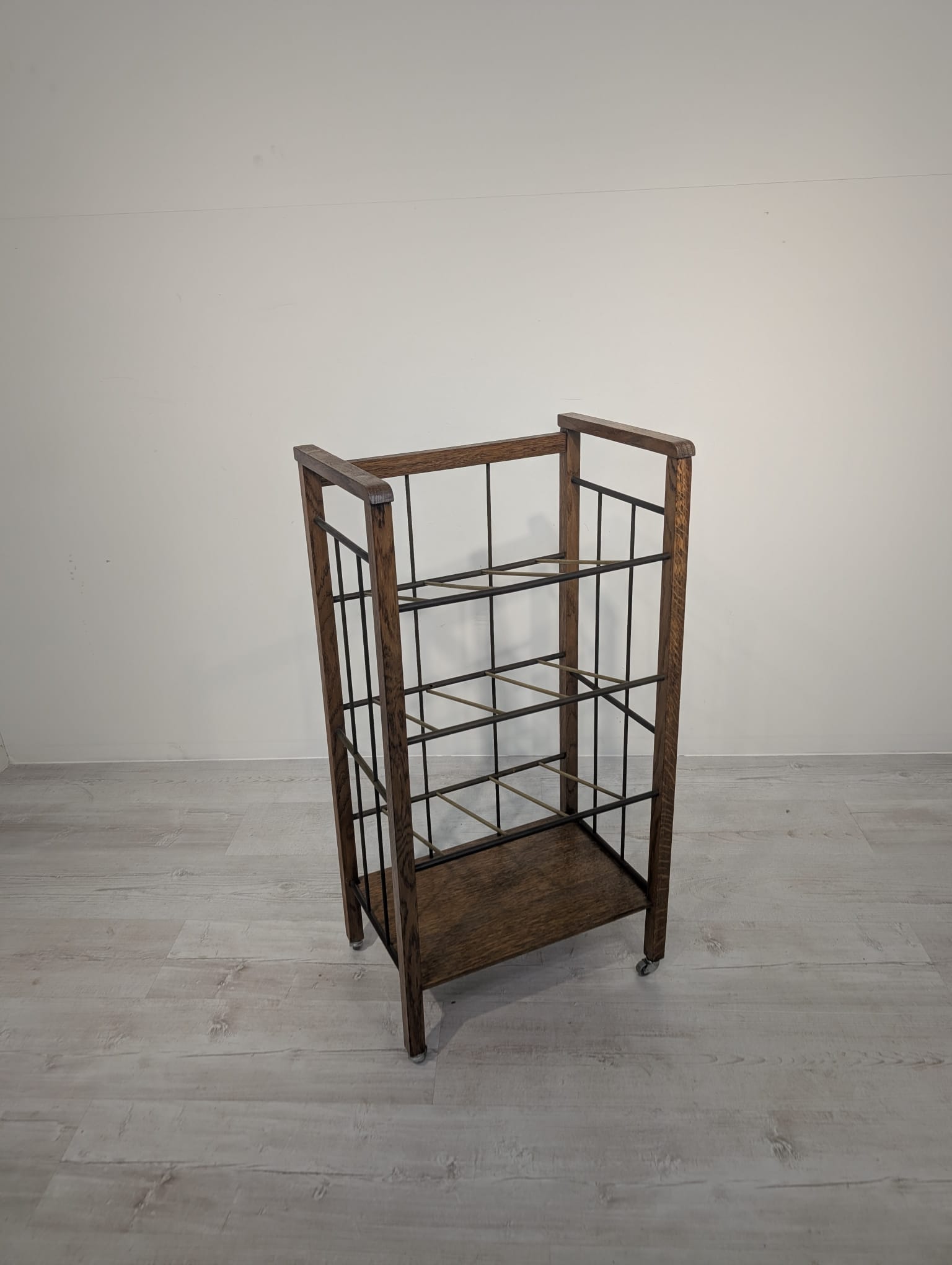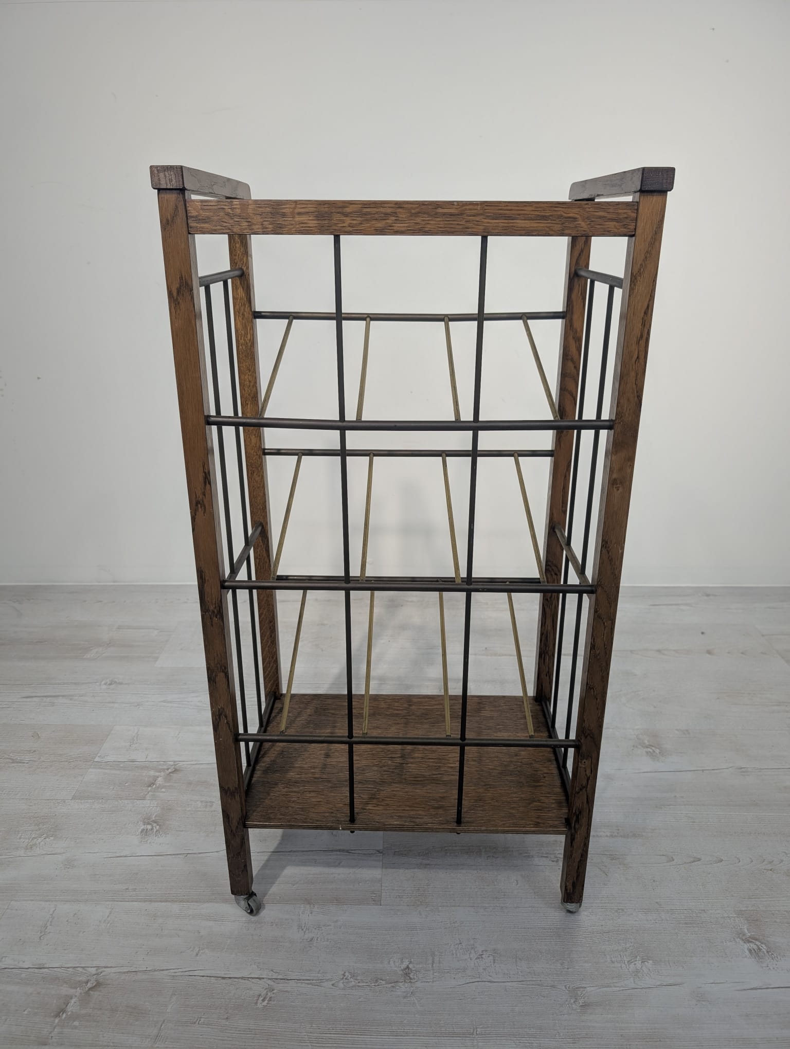 A stylish antique art deco style bookcase for books or magazines. Made of brass and wood, it has several shelves for storage. Ideal for the living room or study, it is suitable for storing books, magazines or decorations.