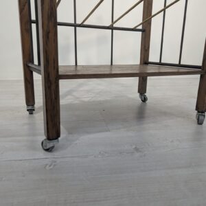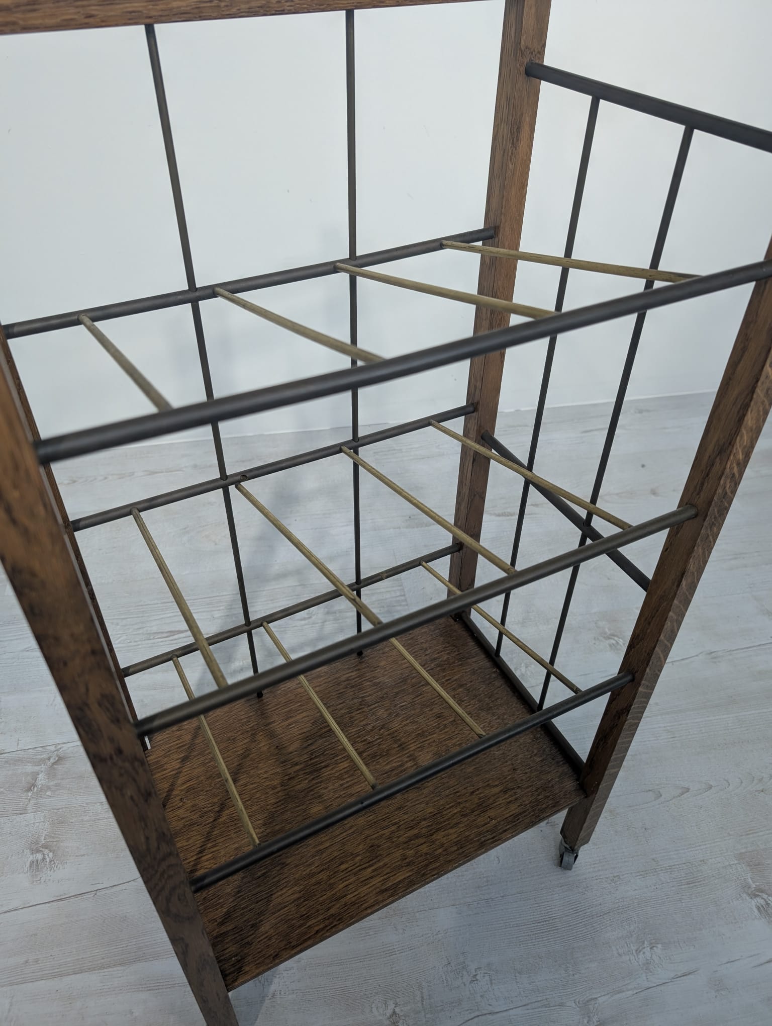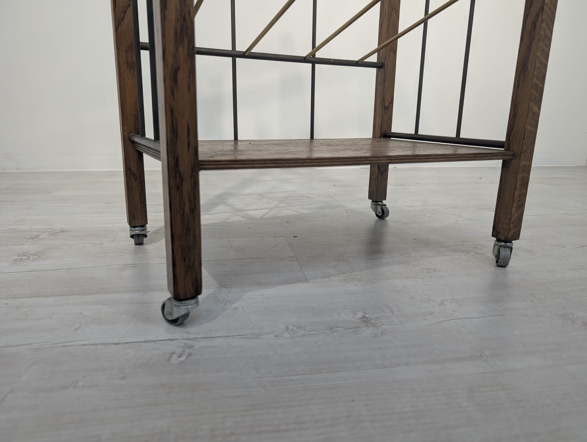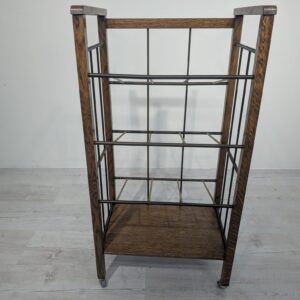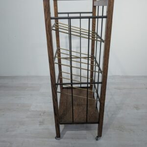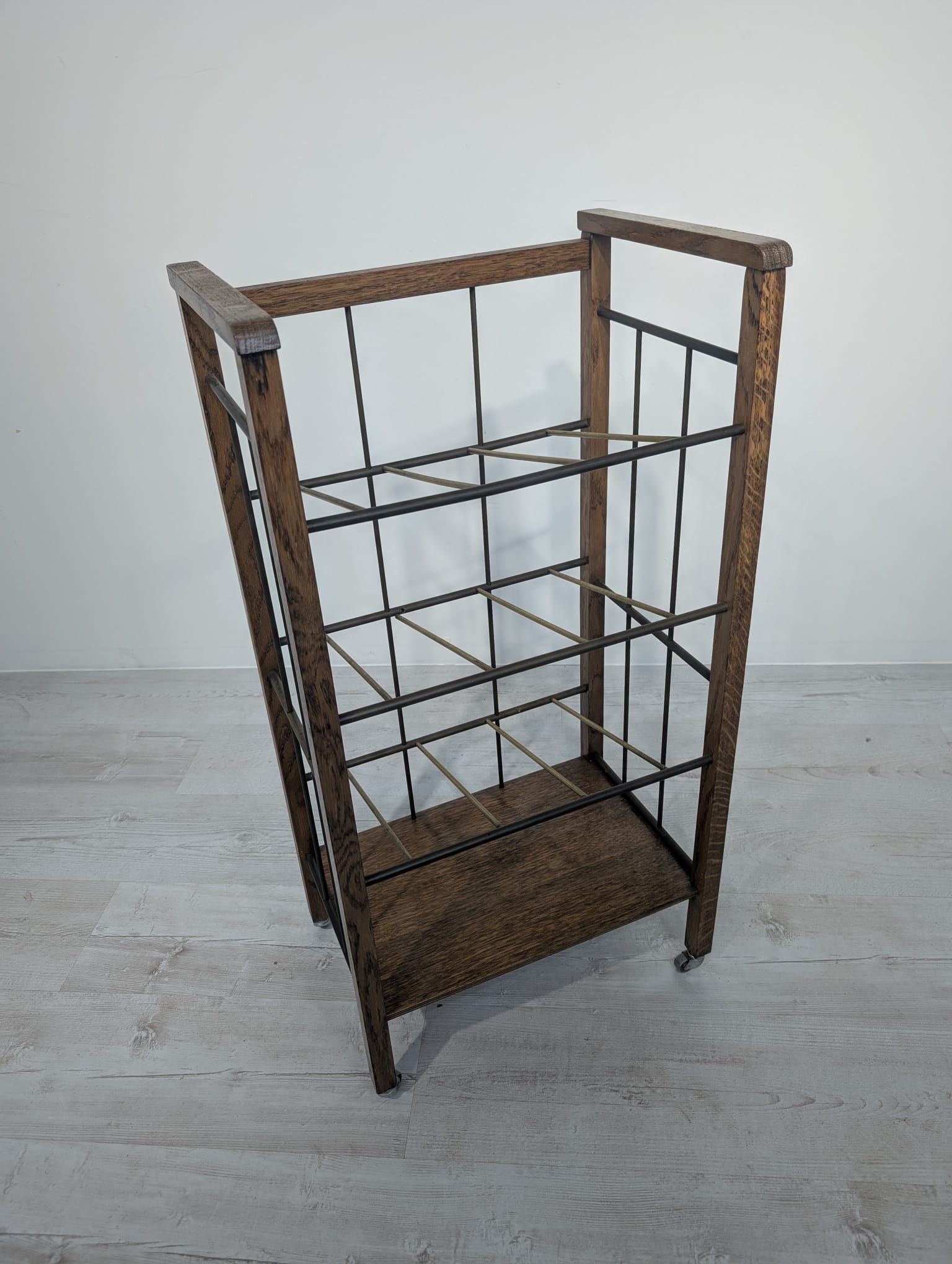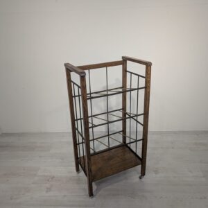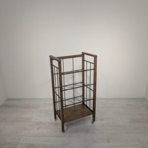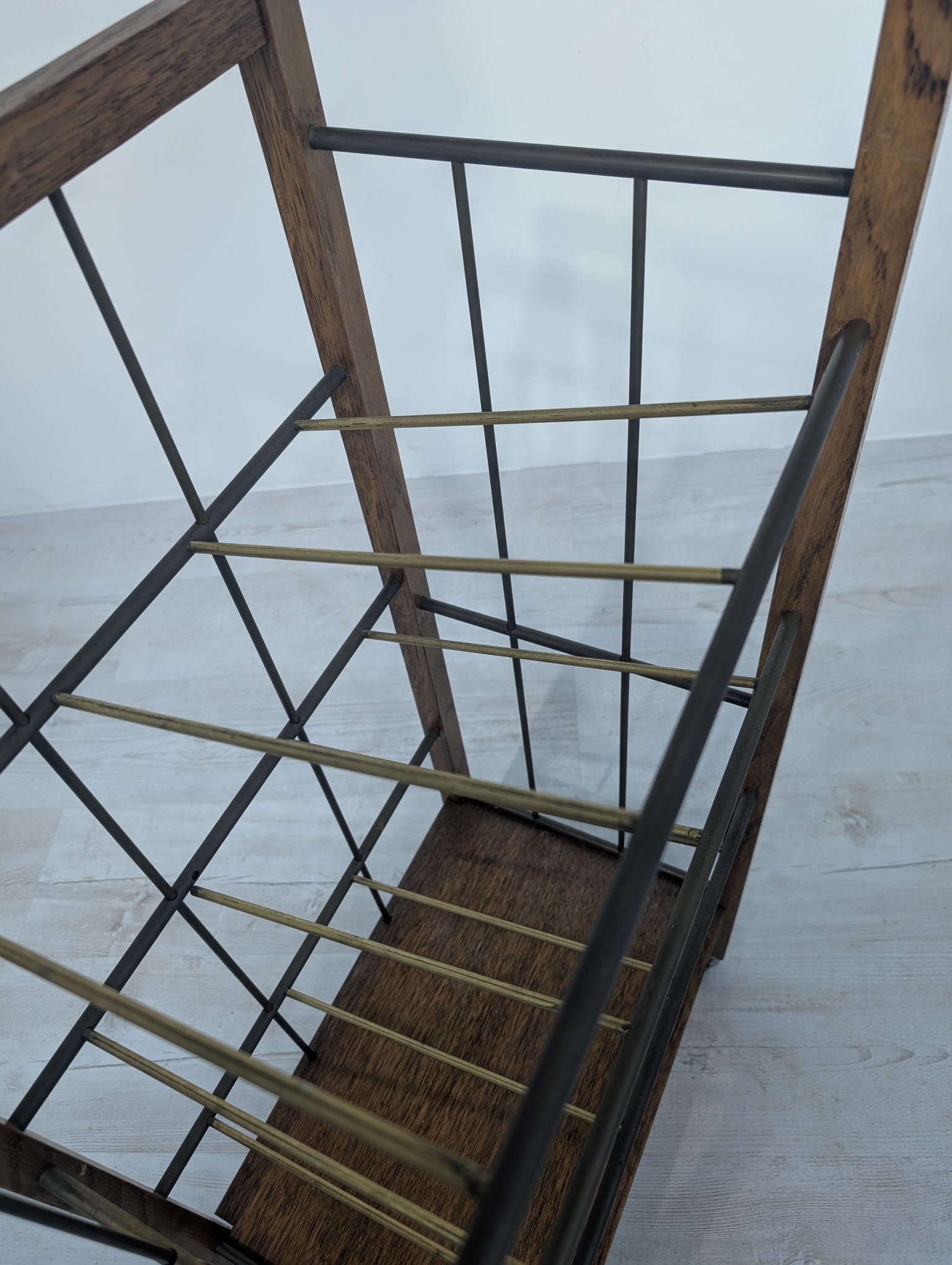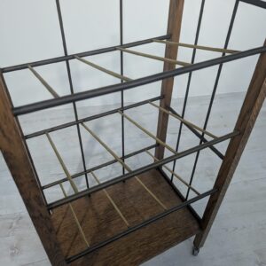 A stylish antique art deco style bookcase for books or magazines. Made of brass and wood, it has several shelves for storage. Ideal for the living room or study, it is suitable for storing books, magazines or decorations.