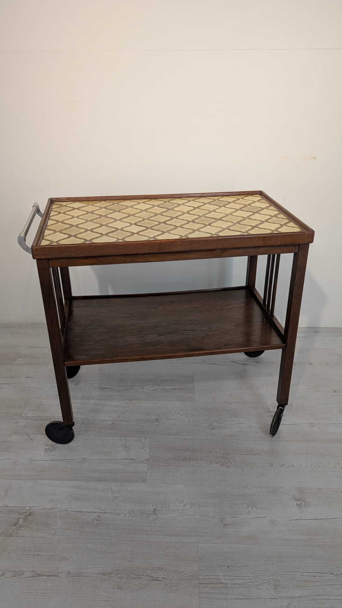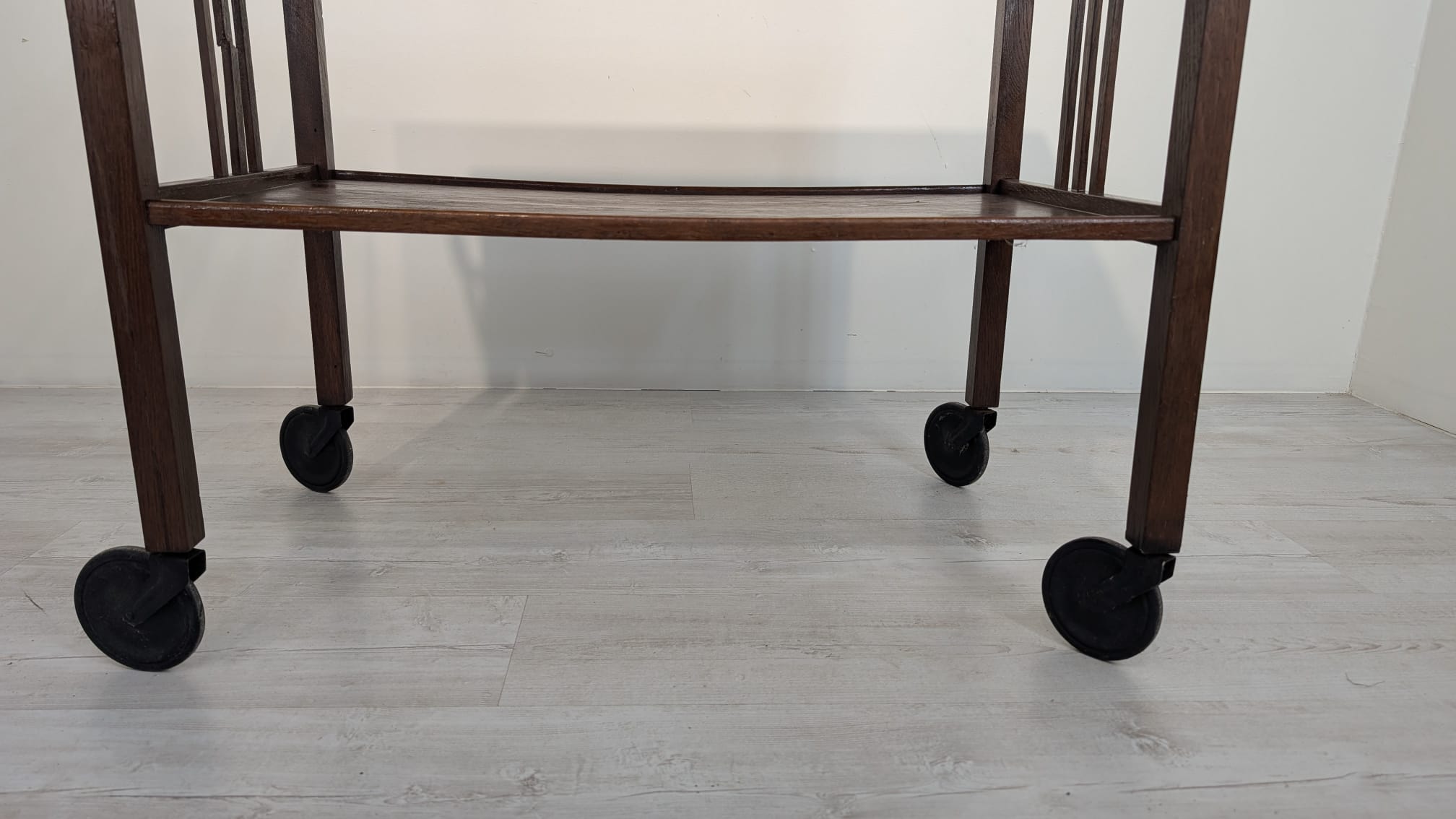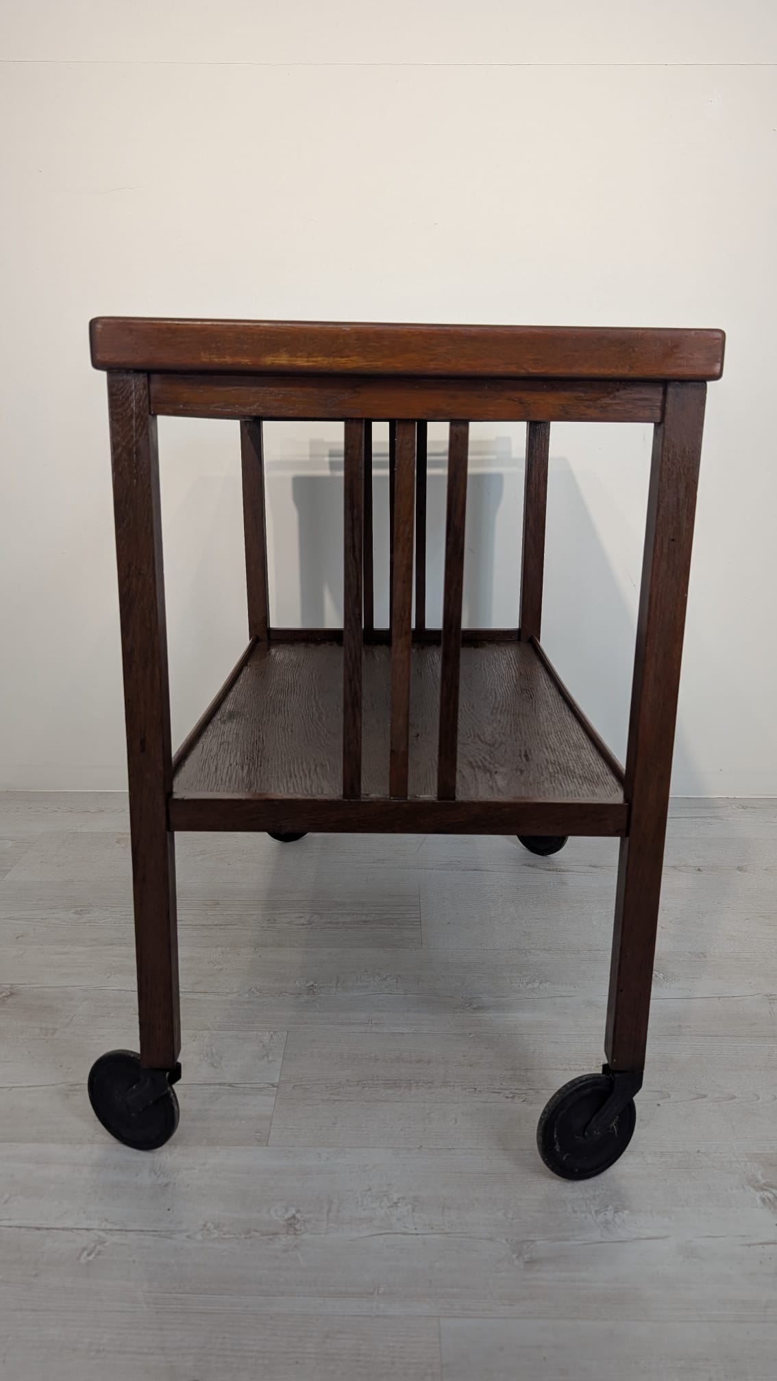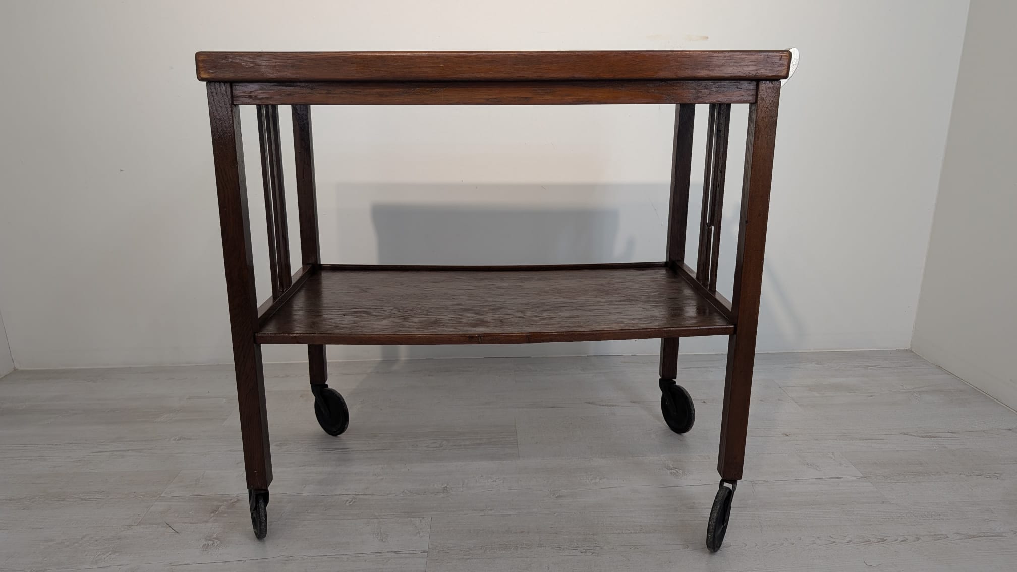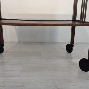 Mobile bar table with service shelves from the 1920s. Made of wood, it has two shelves for service or decoration. The table is on castors, making it easy to move. It presents itself stylishly and will fit into many interiors.