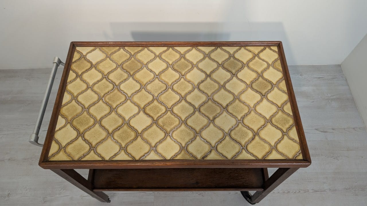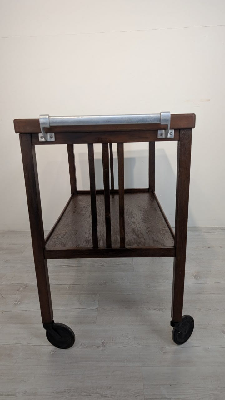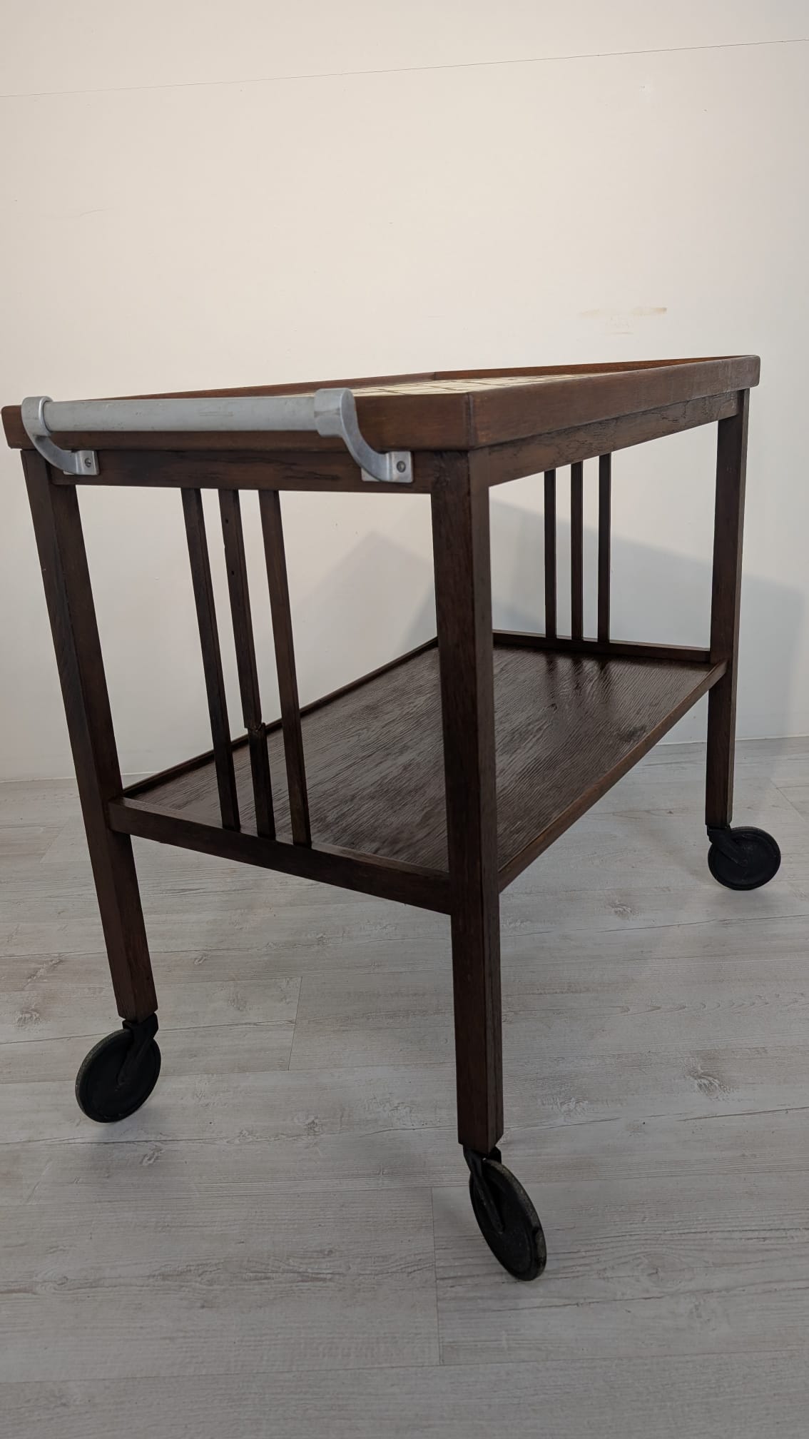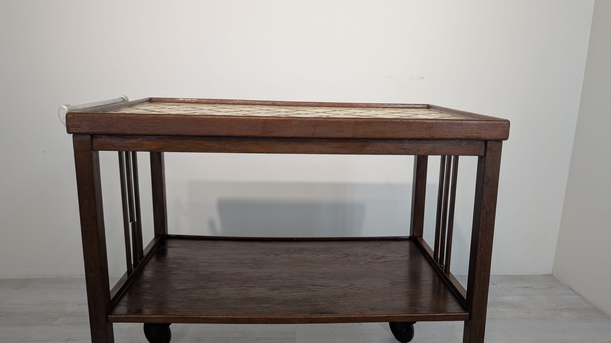 Mobile bar table with service shelves from the 1920s. Made of wood, it has two shelves for service or decoration. The table is on castors, making it easy to move. It presents itself stylishly and will fit into many interiors.