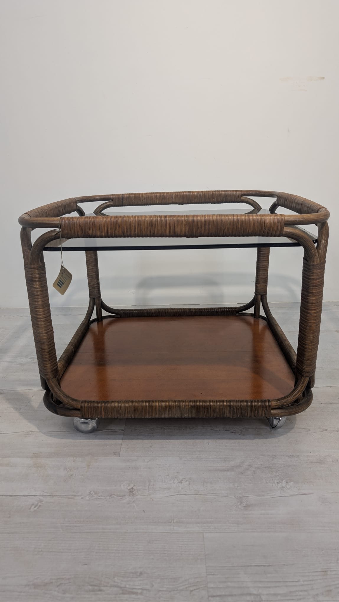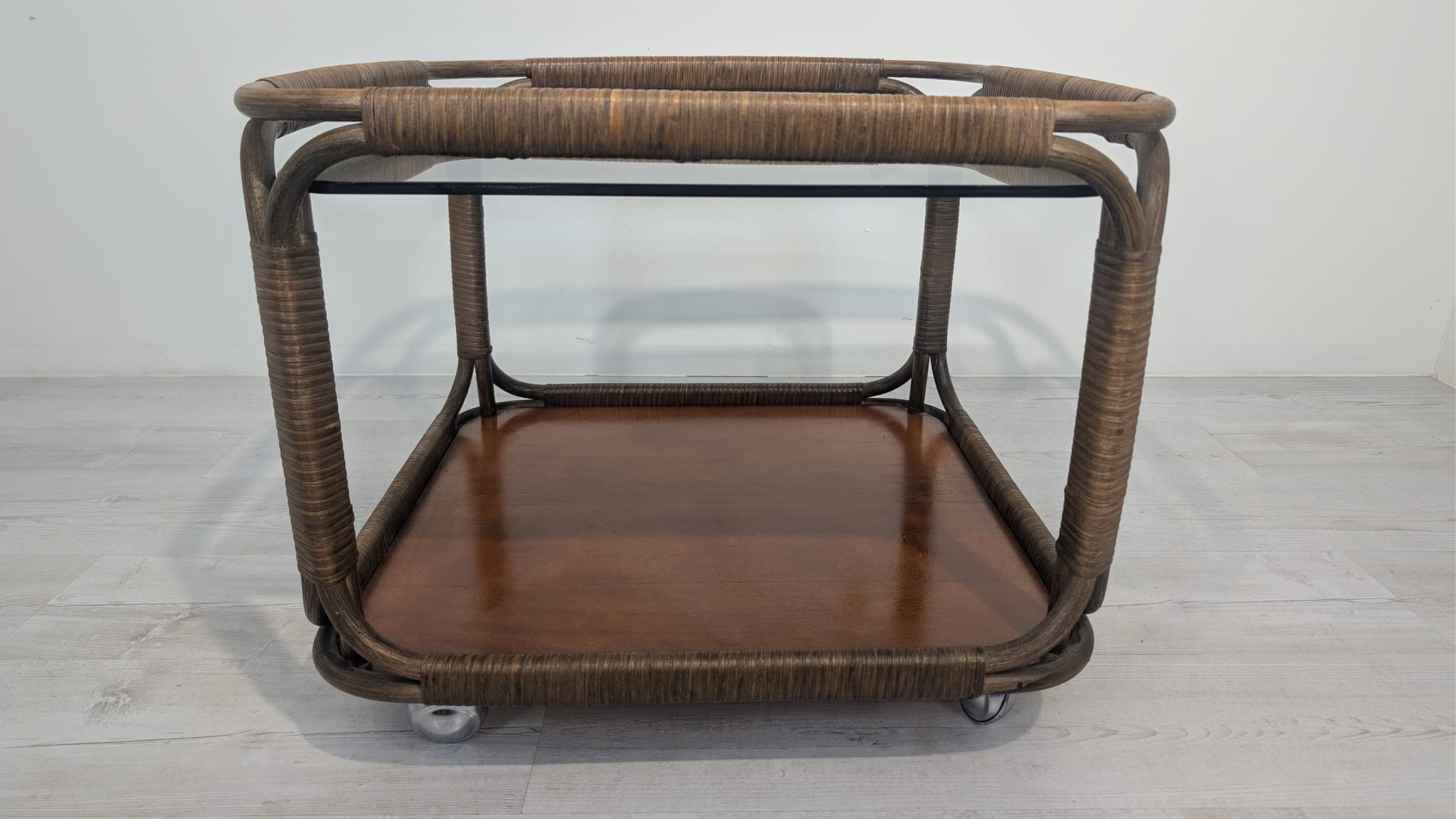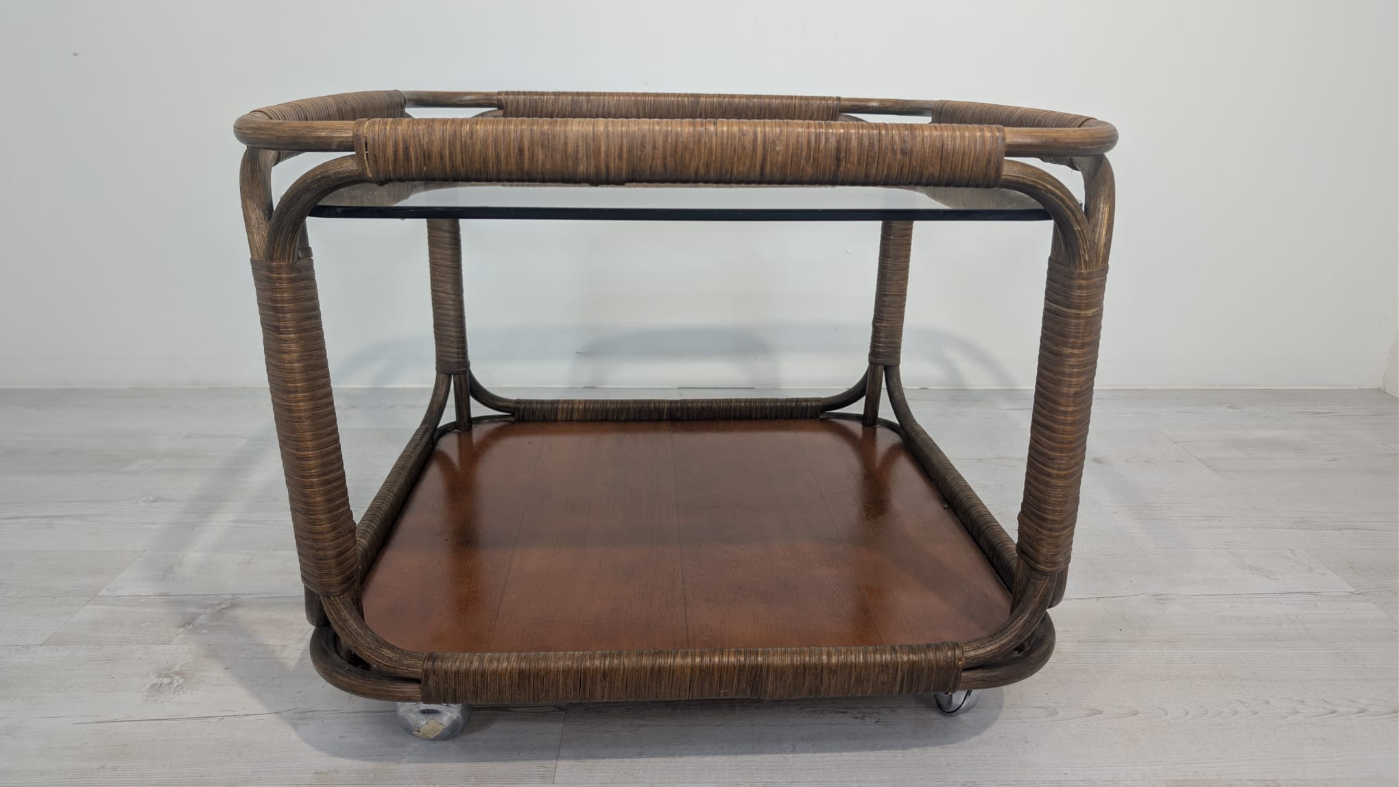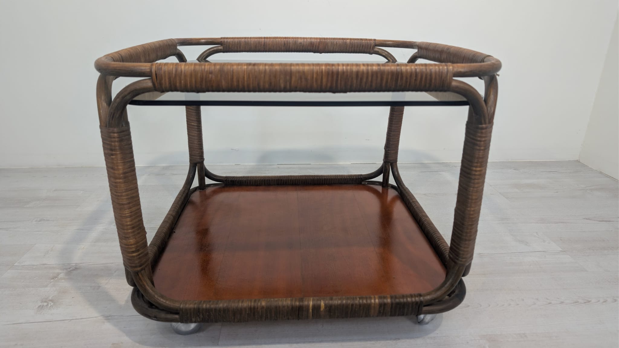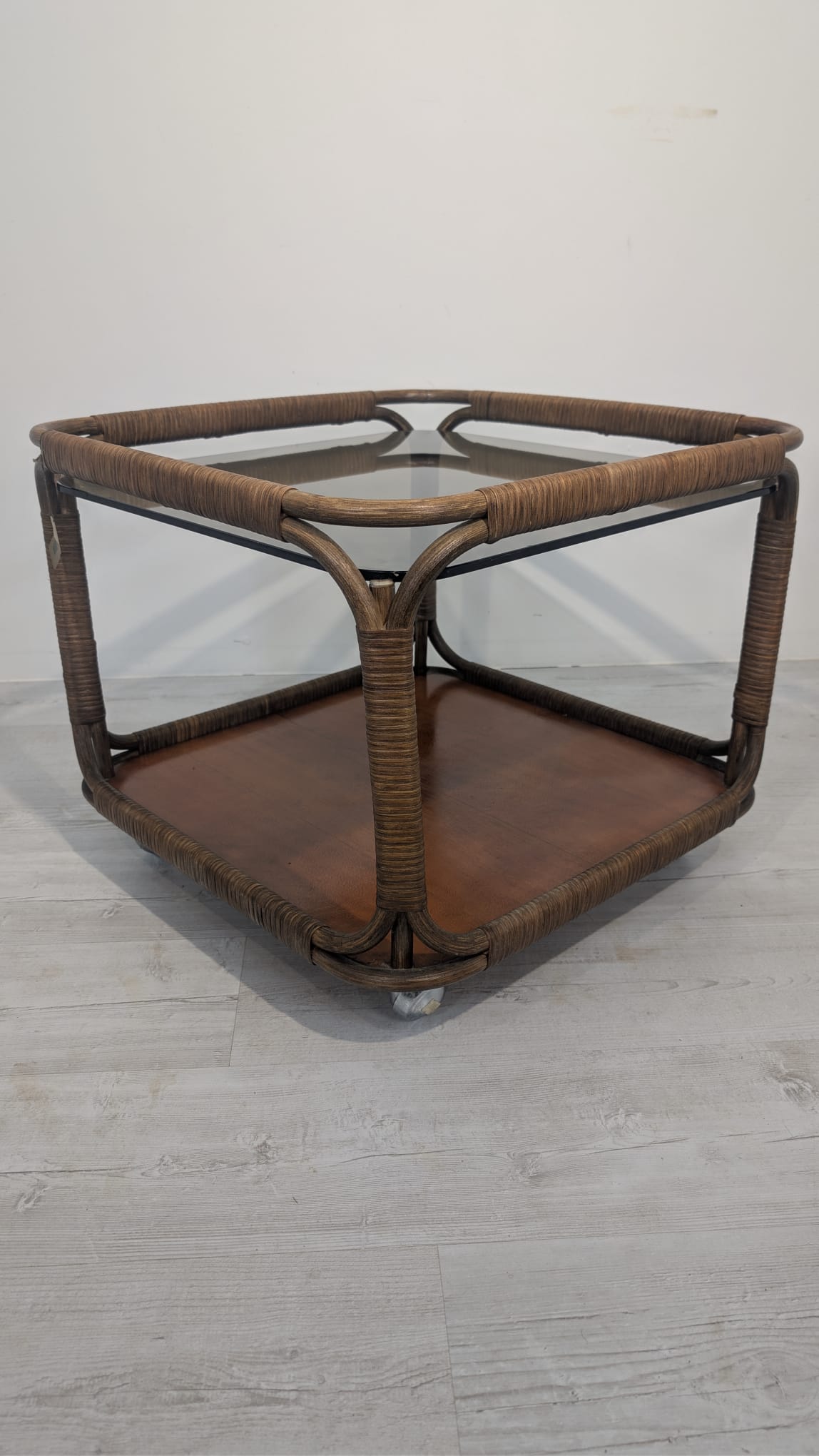 Mobile rattan coffee table, Italy, 1970s