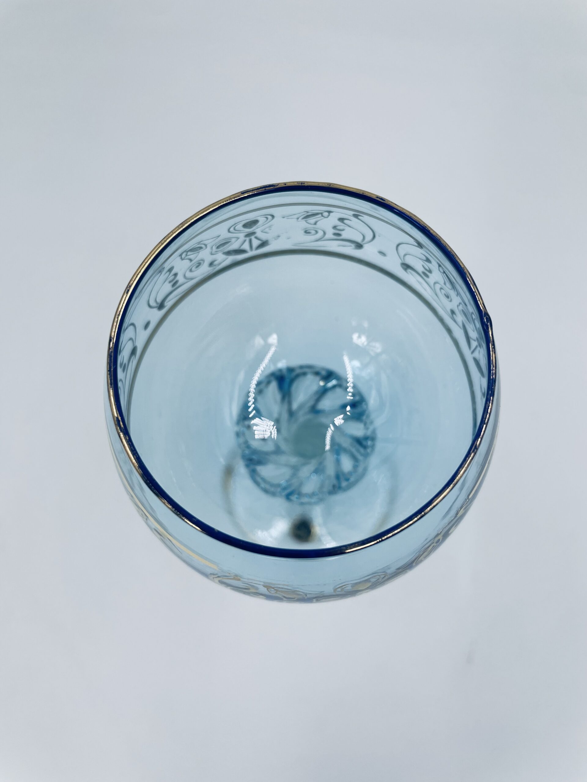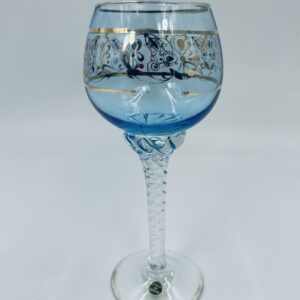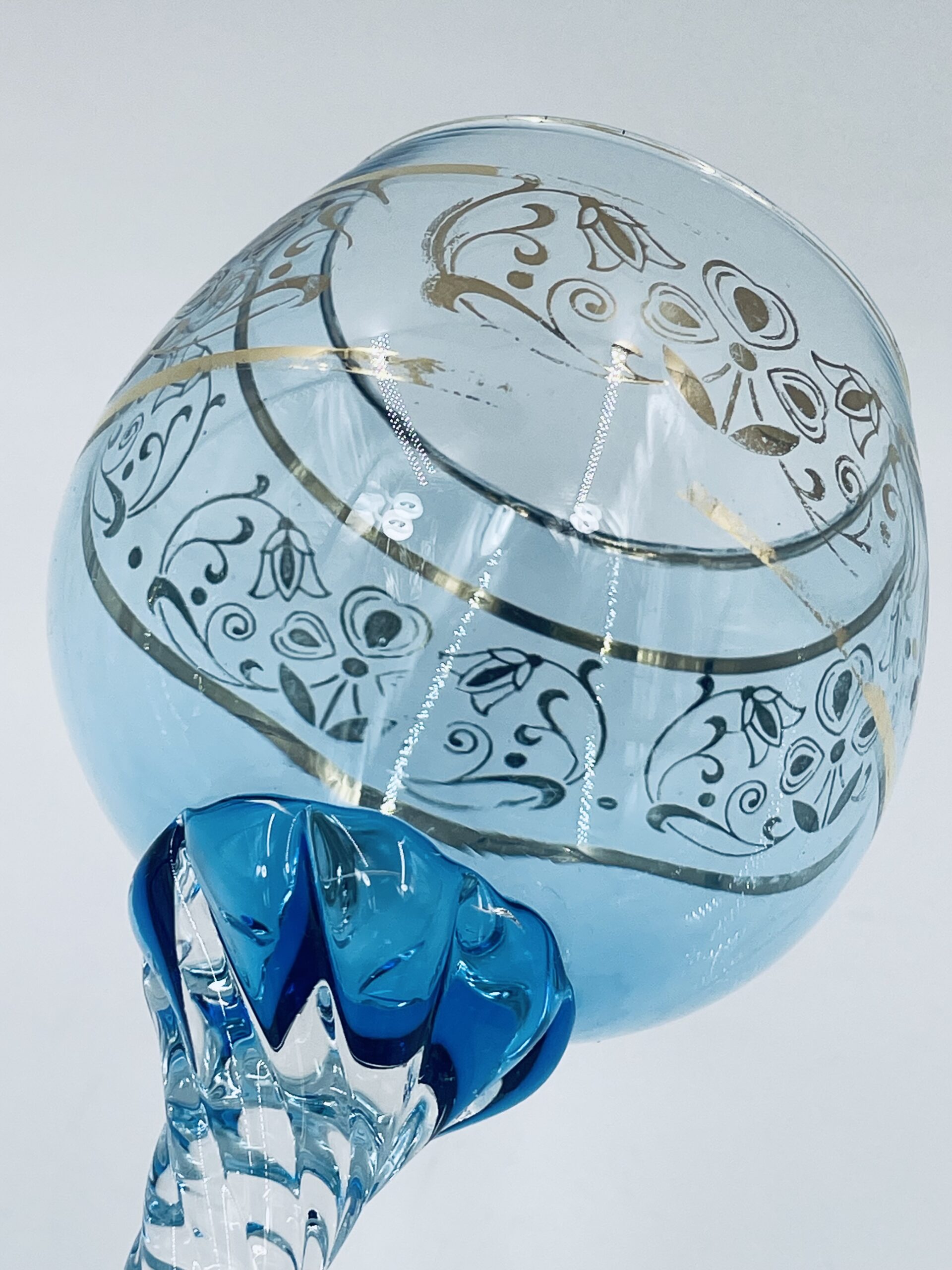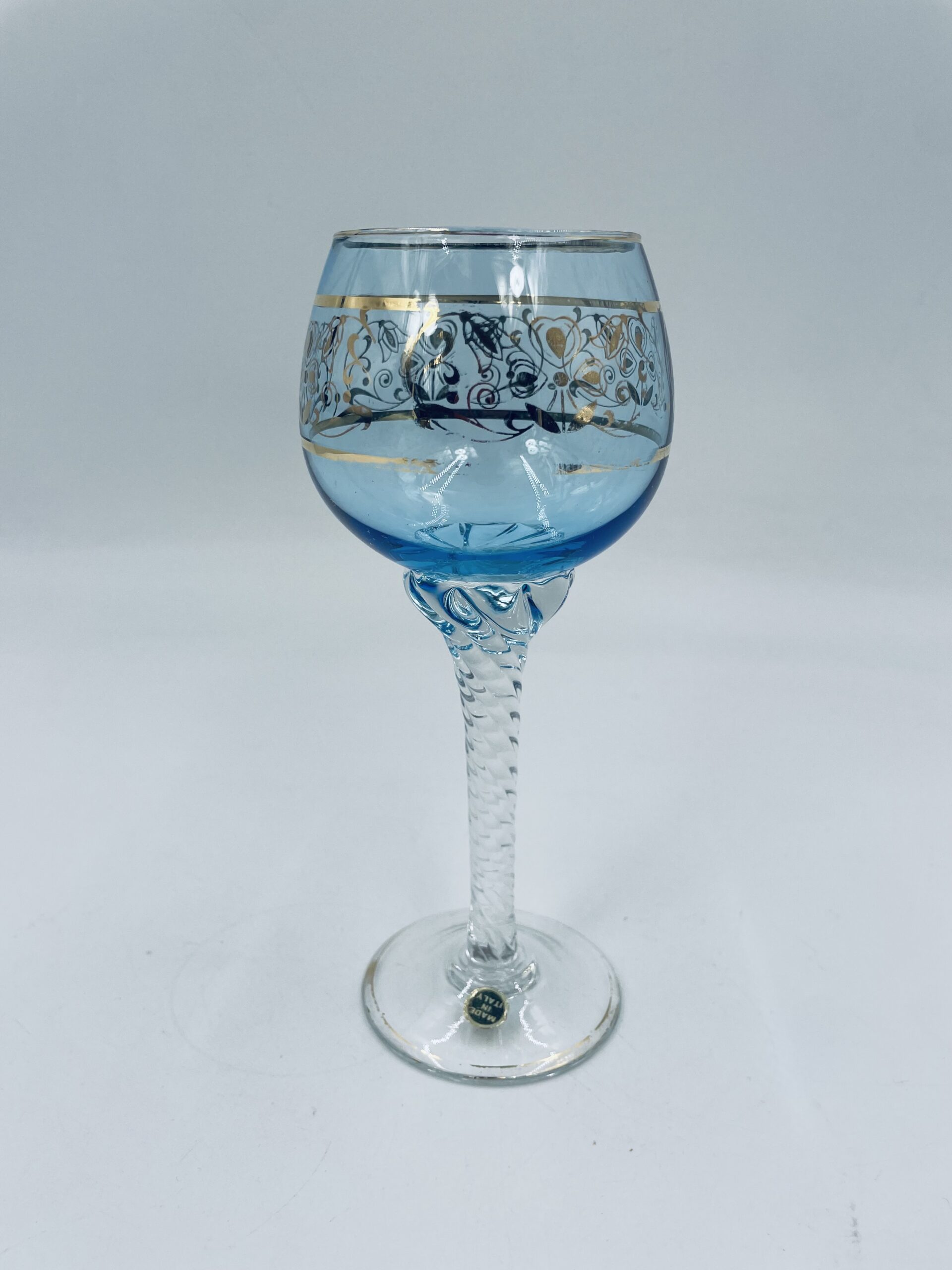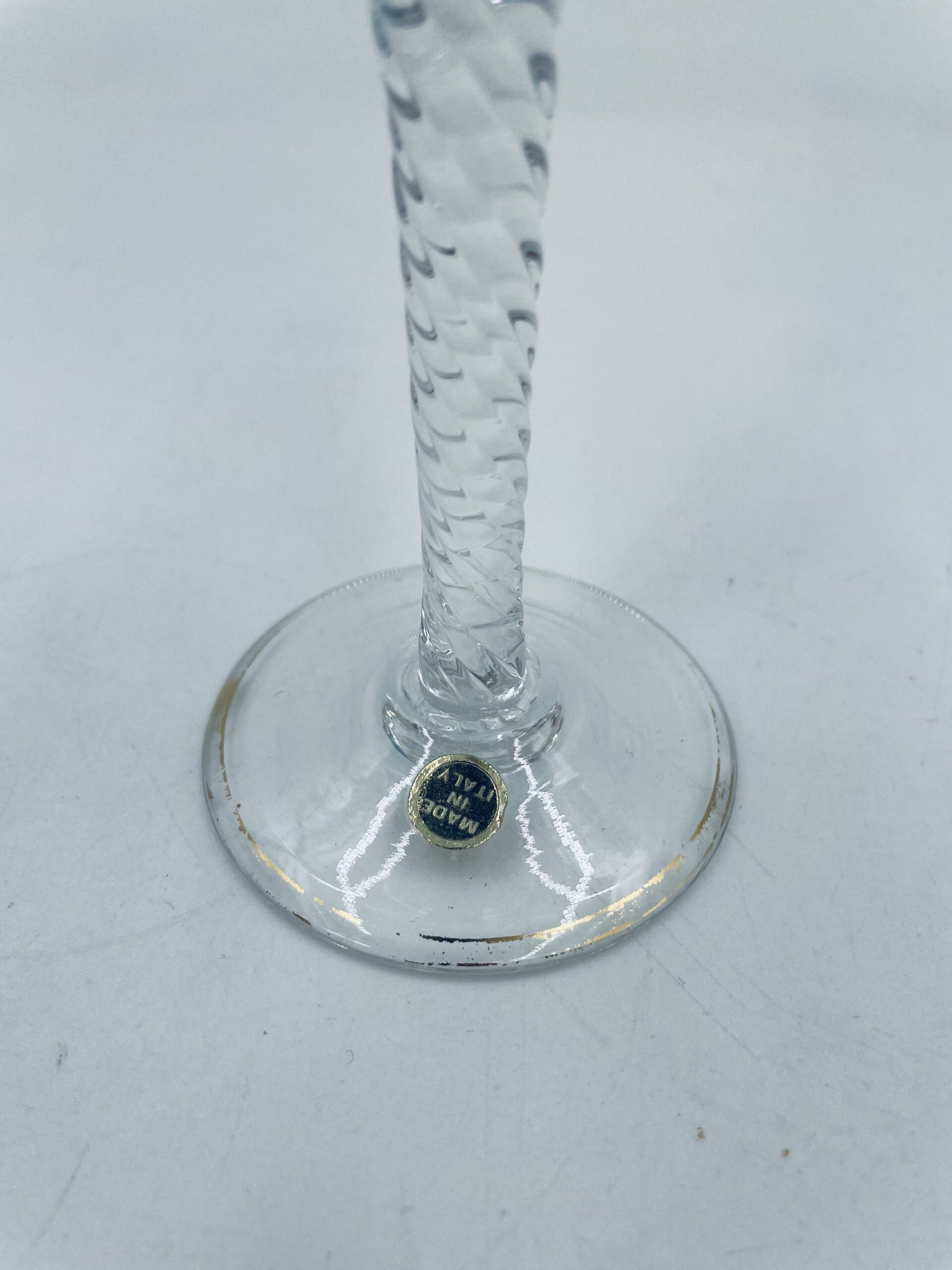 It has delicate gilt decoration on the cup and on the base and a twisted leg.