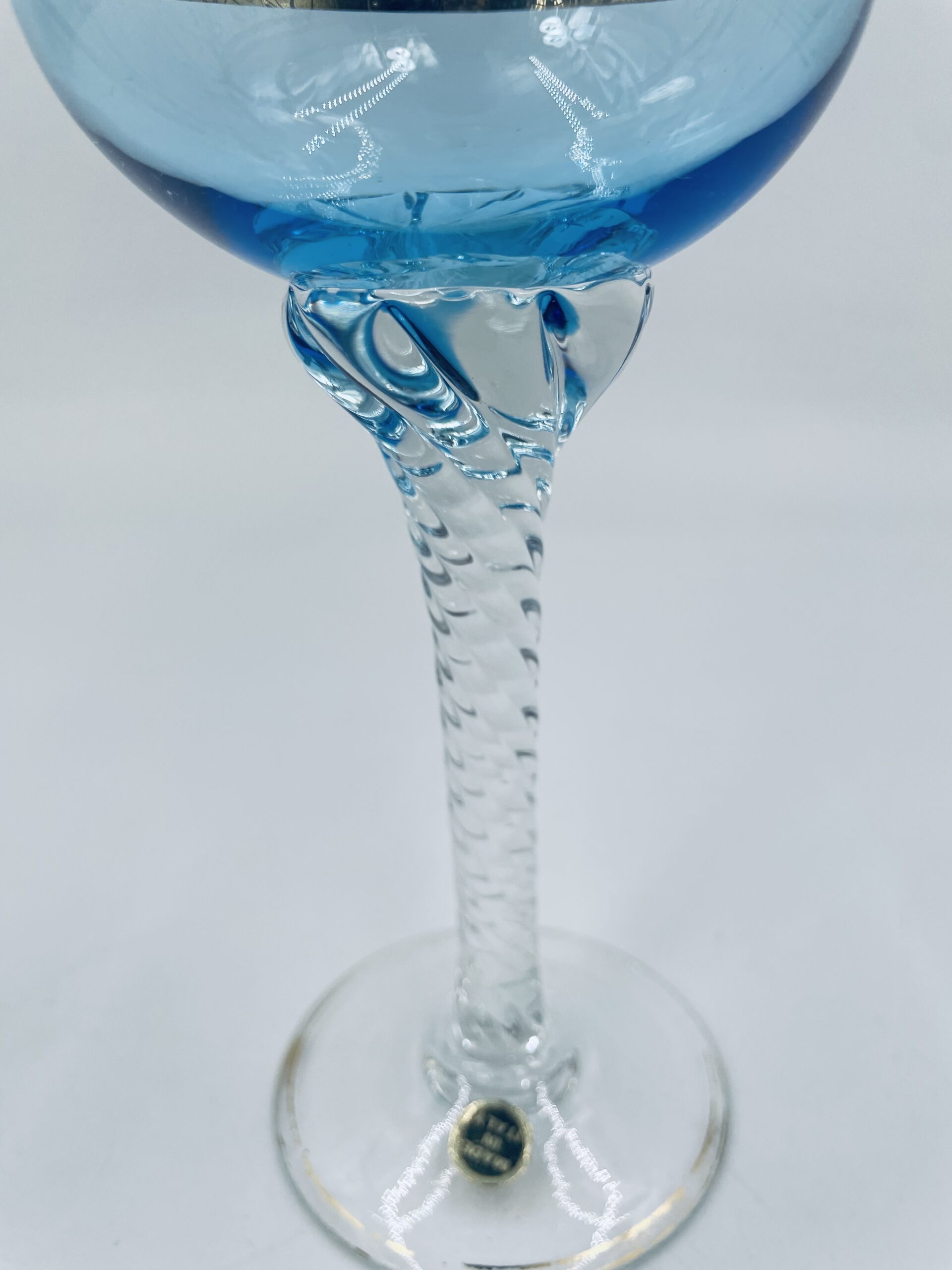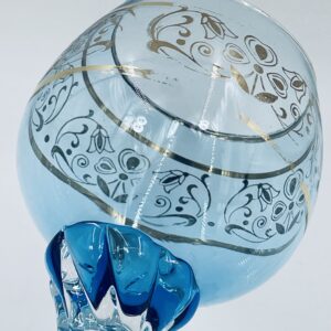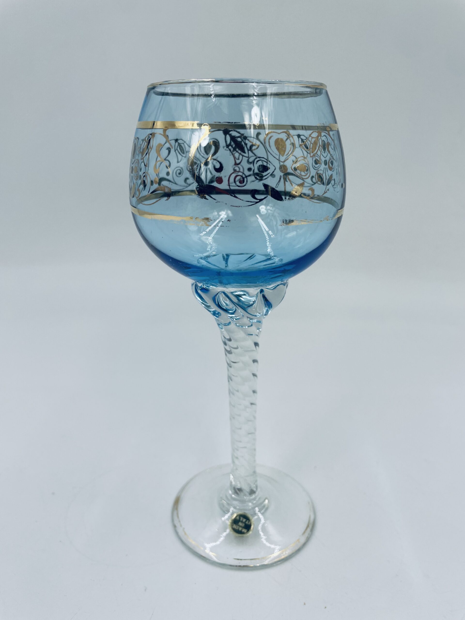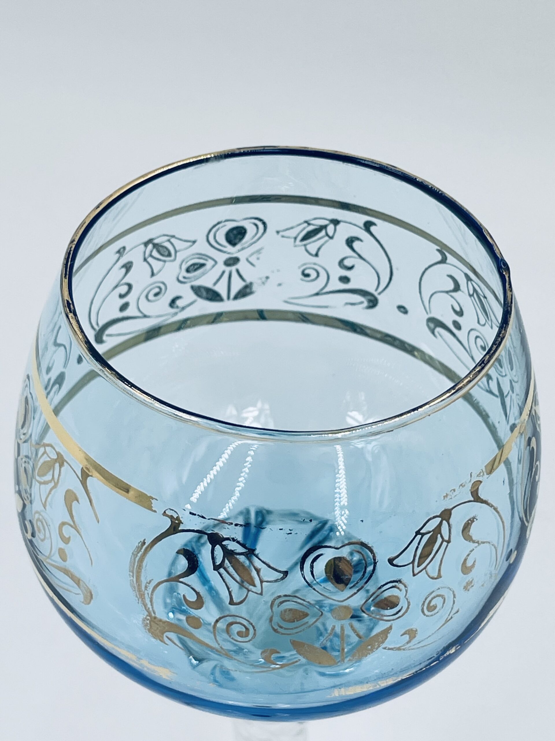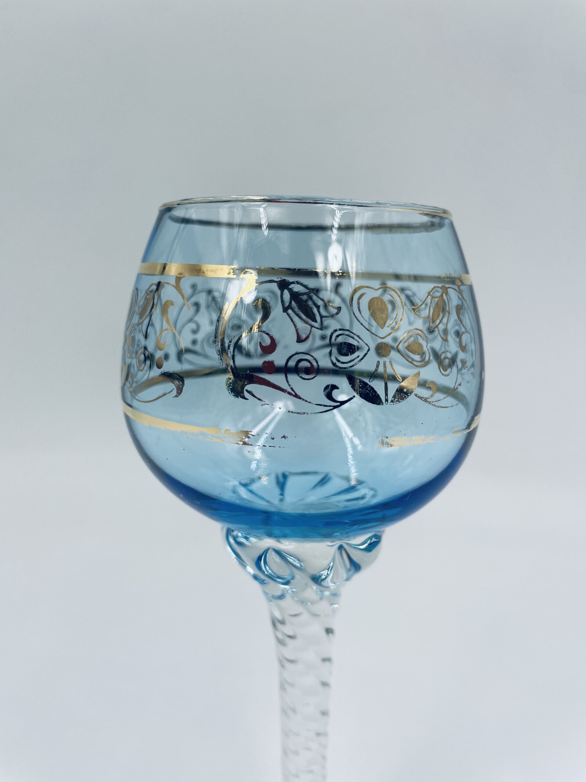 It has delicate gilt decoration on the cup and on the base and a twisted leg.