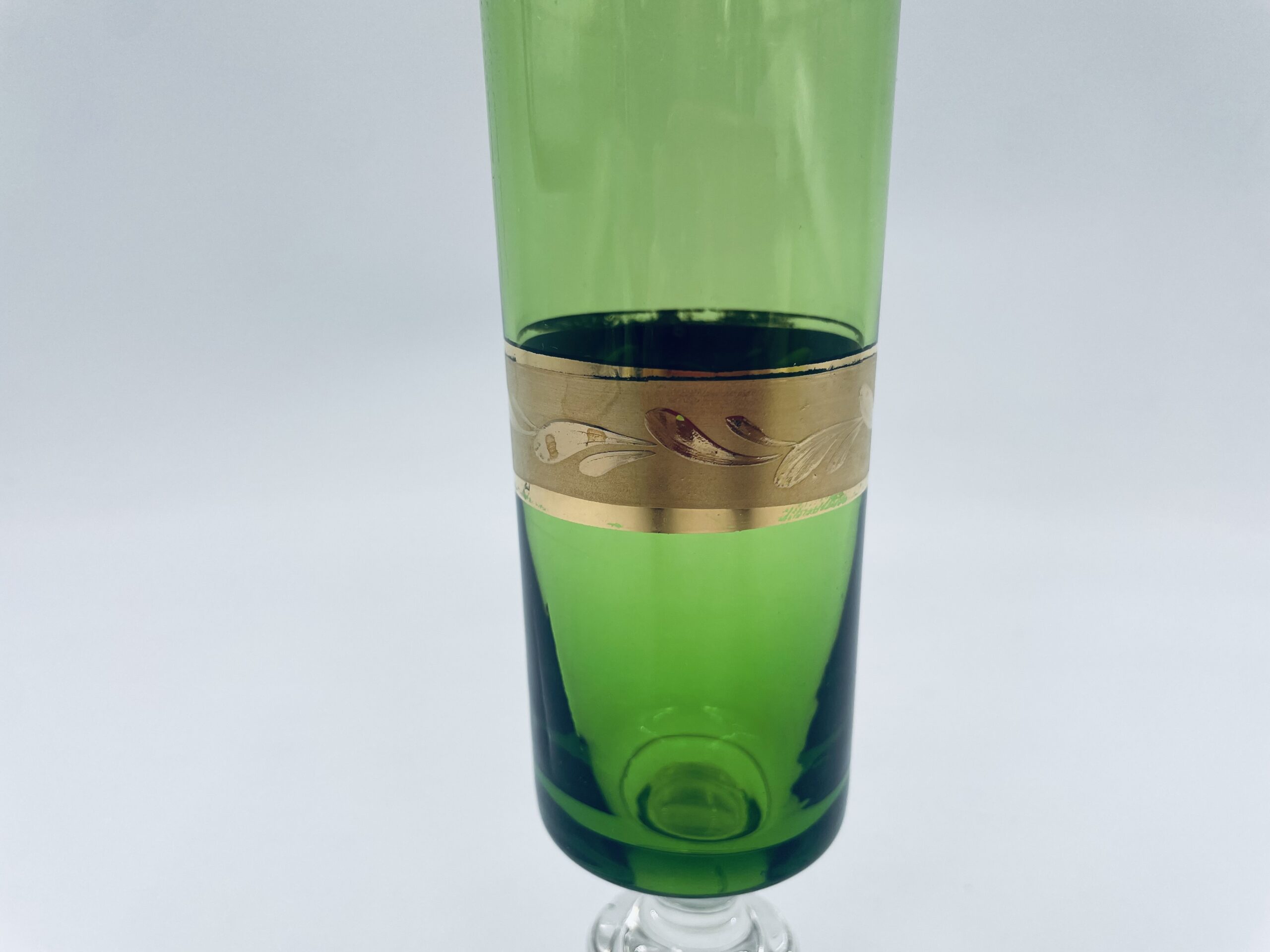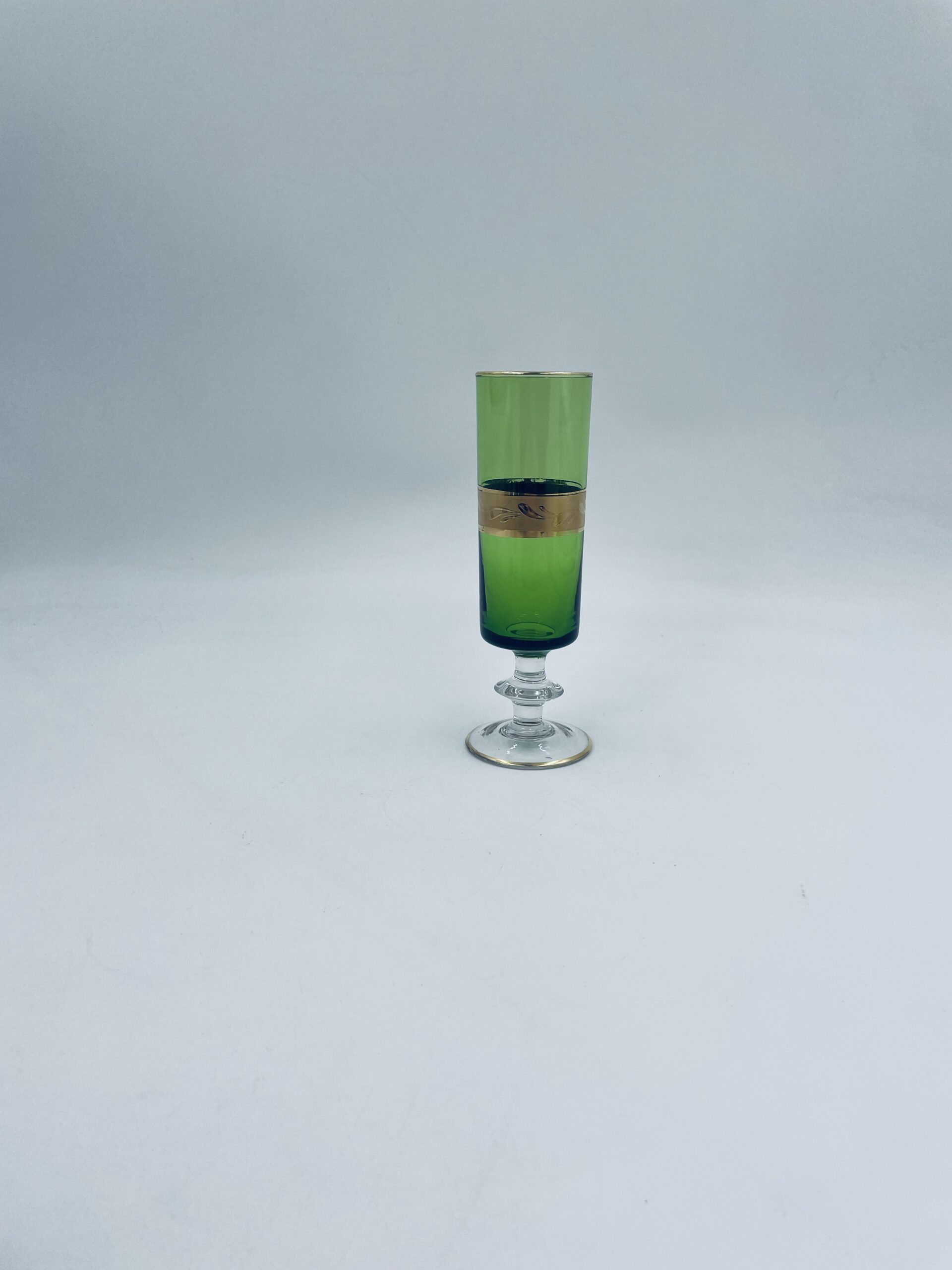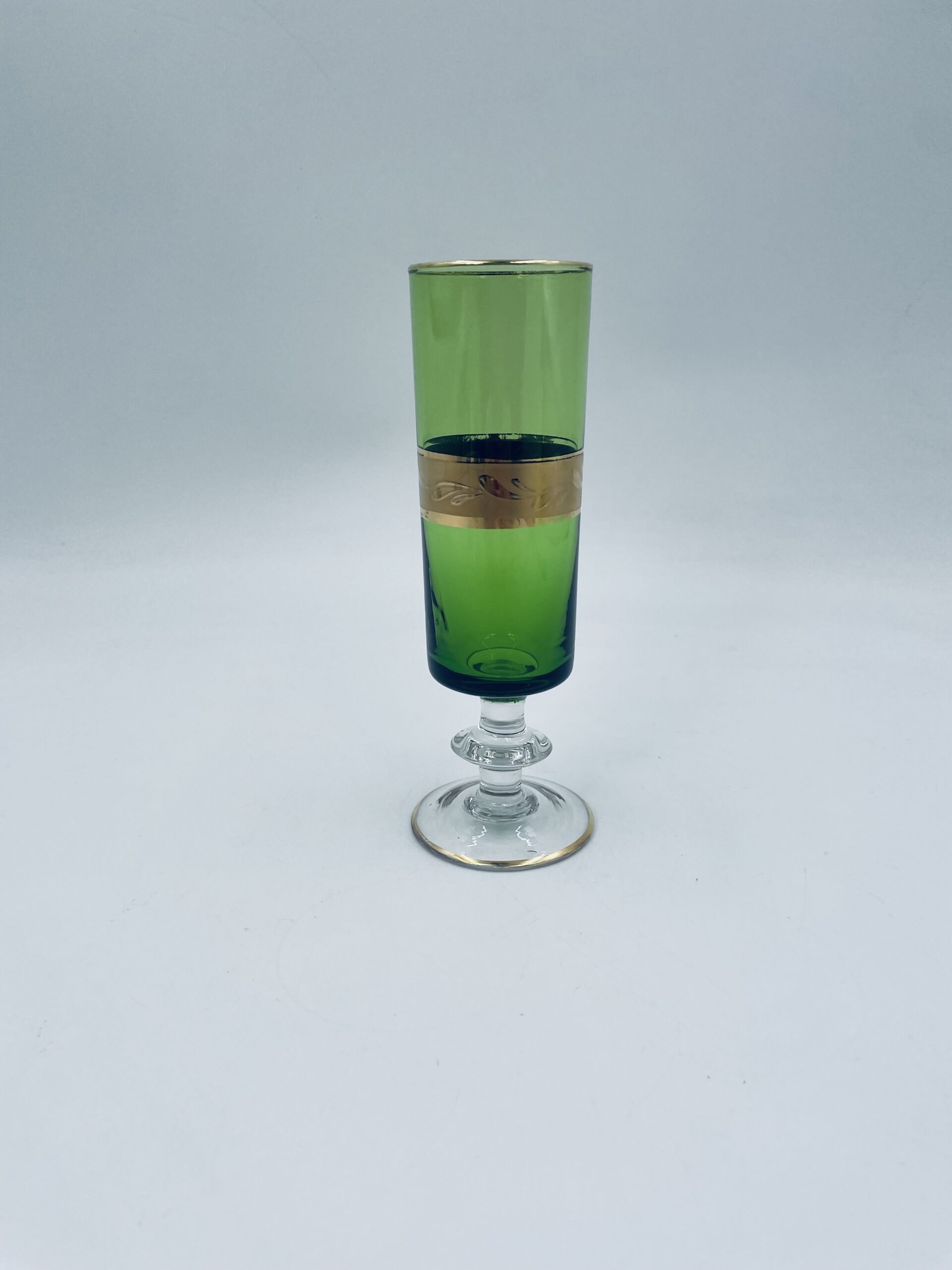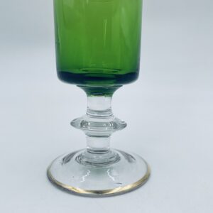 Green champagne glass made of glass in Italy.